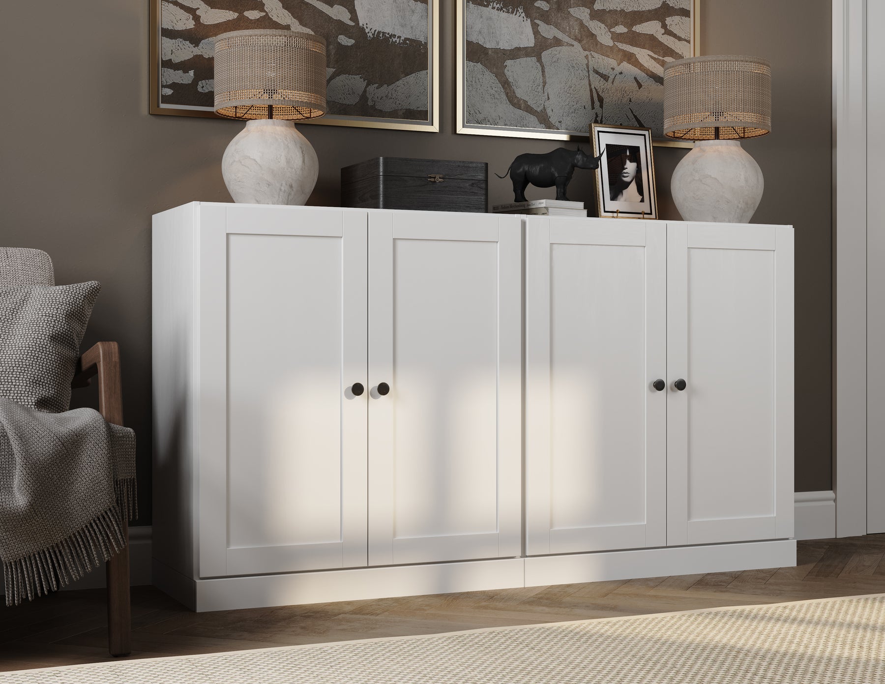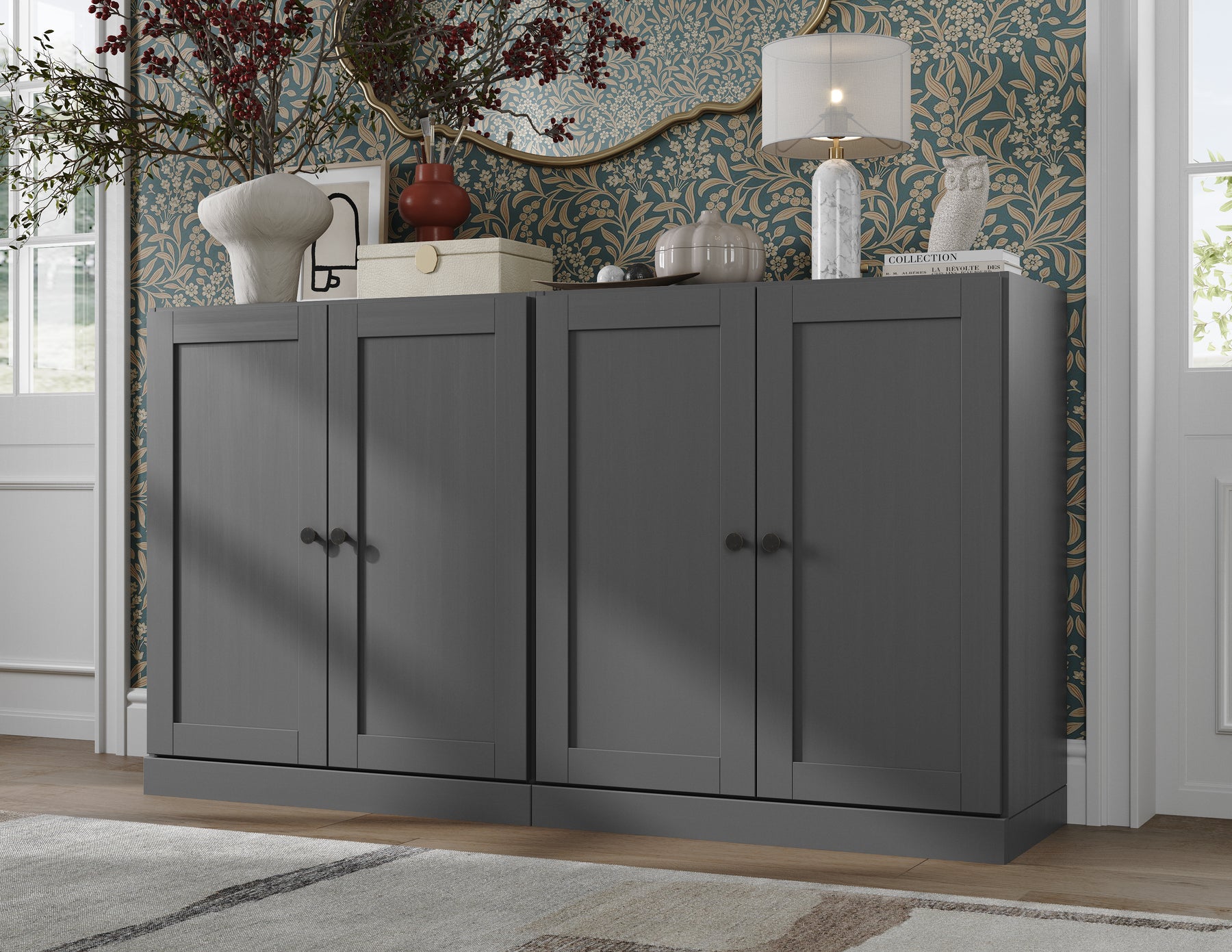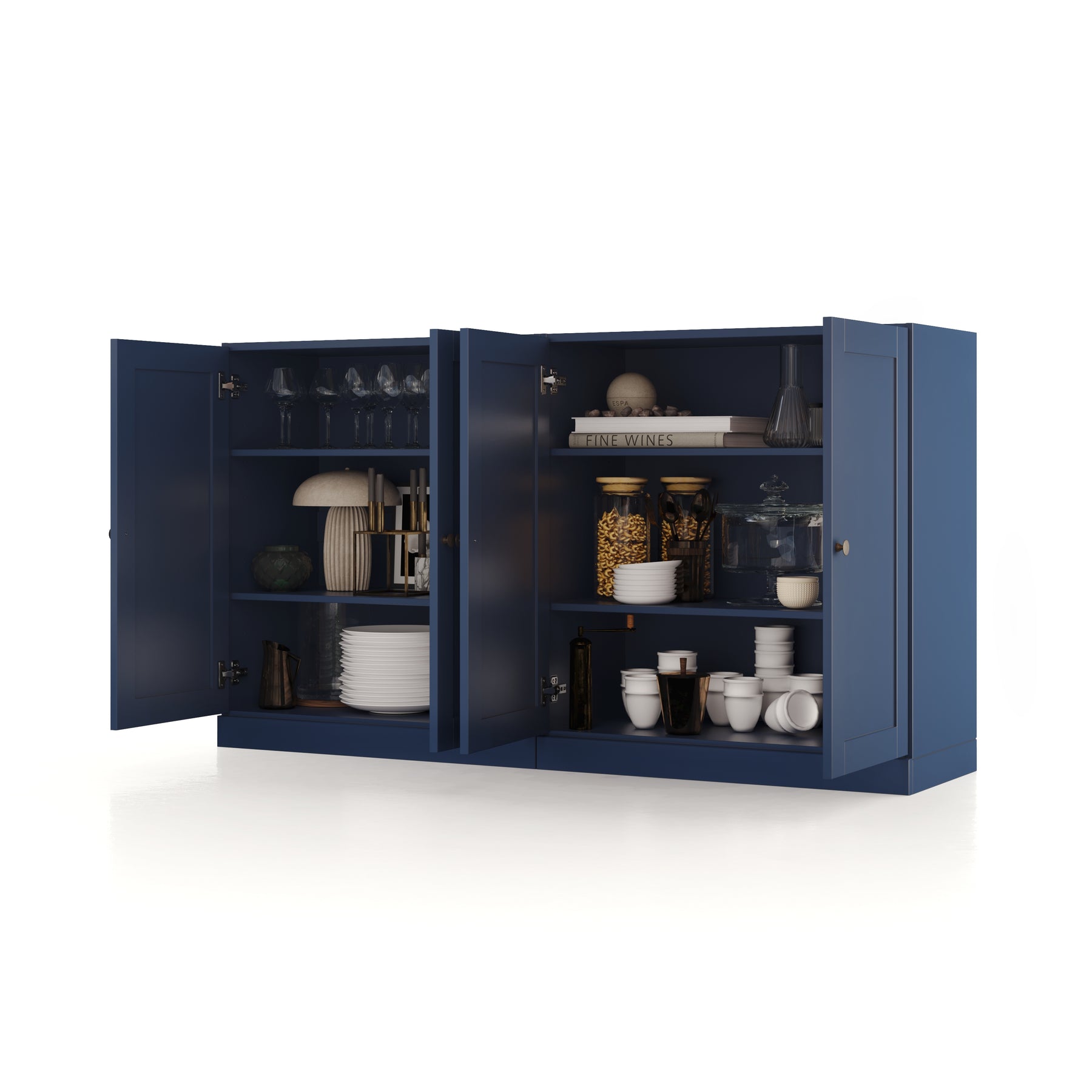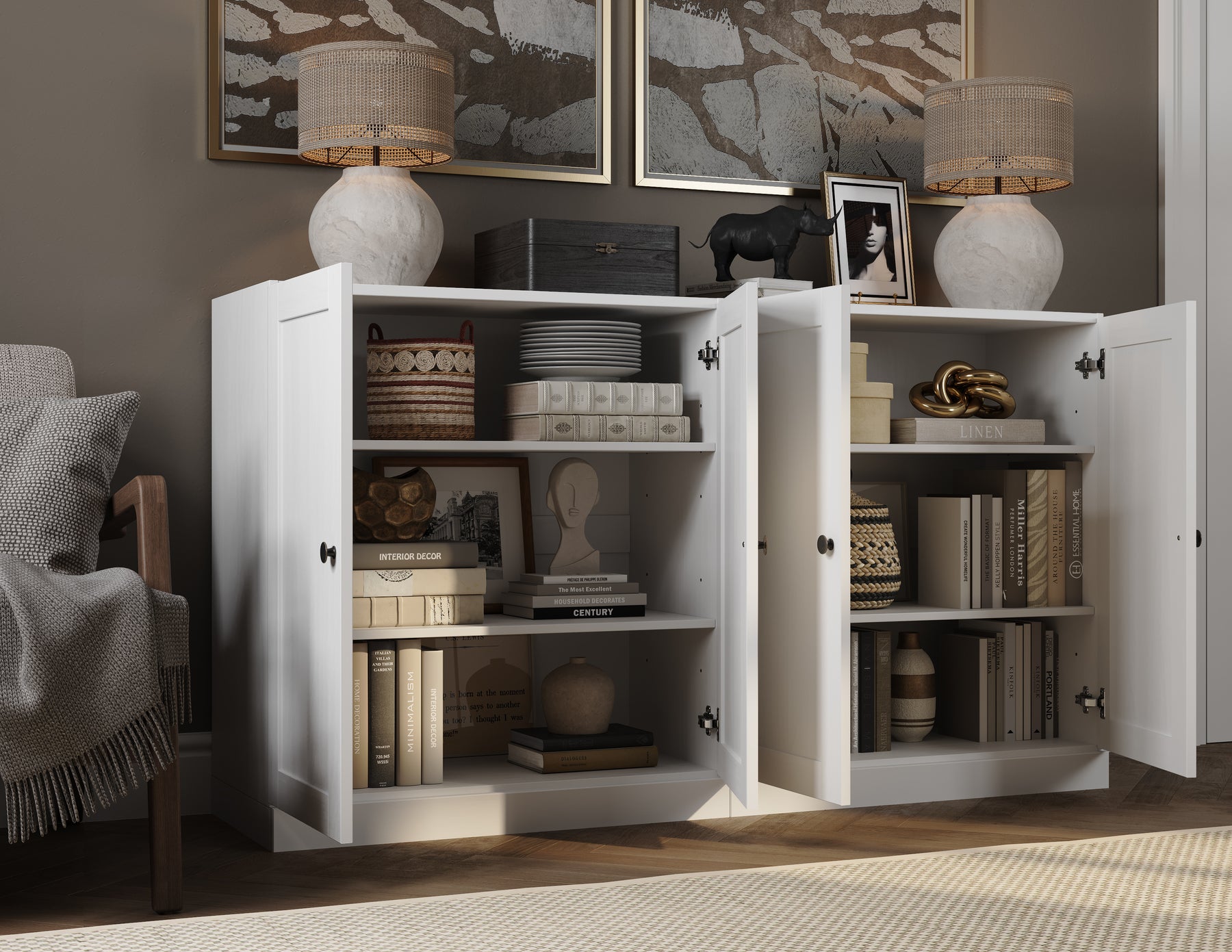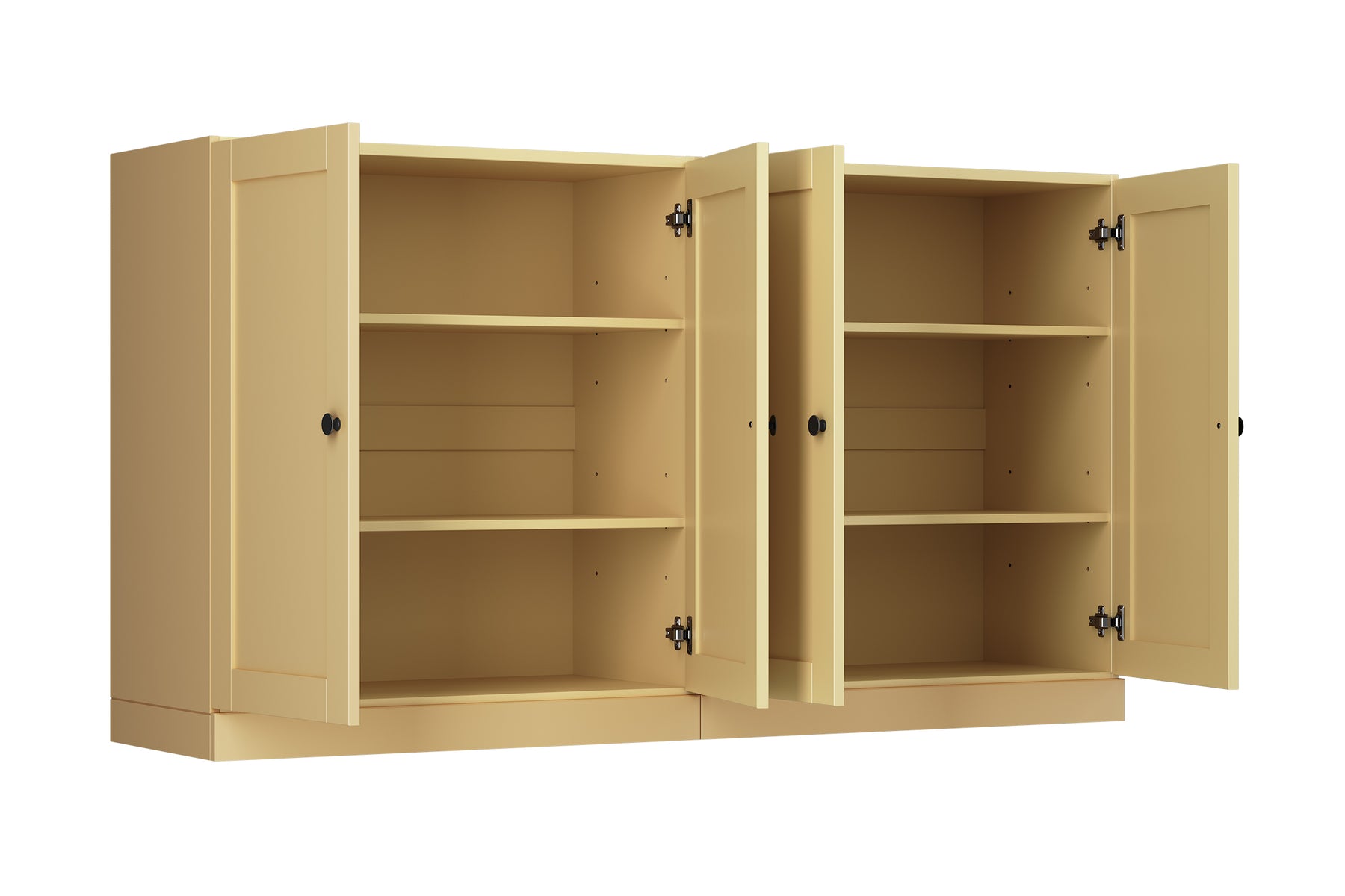 A beautiful 100% Solid Wood Sideboard will be a welcome addition to any room in need of some accent furniture. Cleverly designed as a set of 2 separate units, they can be combined to create a grand 64-inch-wide sideboard or be kept separate for more strategic placement. Fully adjustable and removable 4 shelves inside the voluminous interior make it easy to fit large and small items that can be neatly concealed behind shaker wood doors. Get this Made in Brazil beauty today and enjoy the smell and look of wood for life!