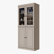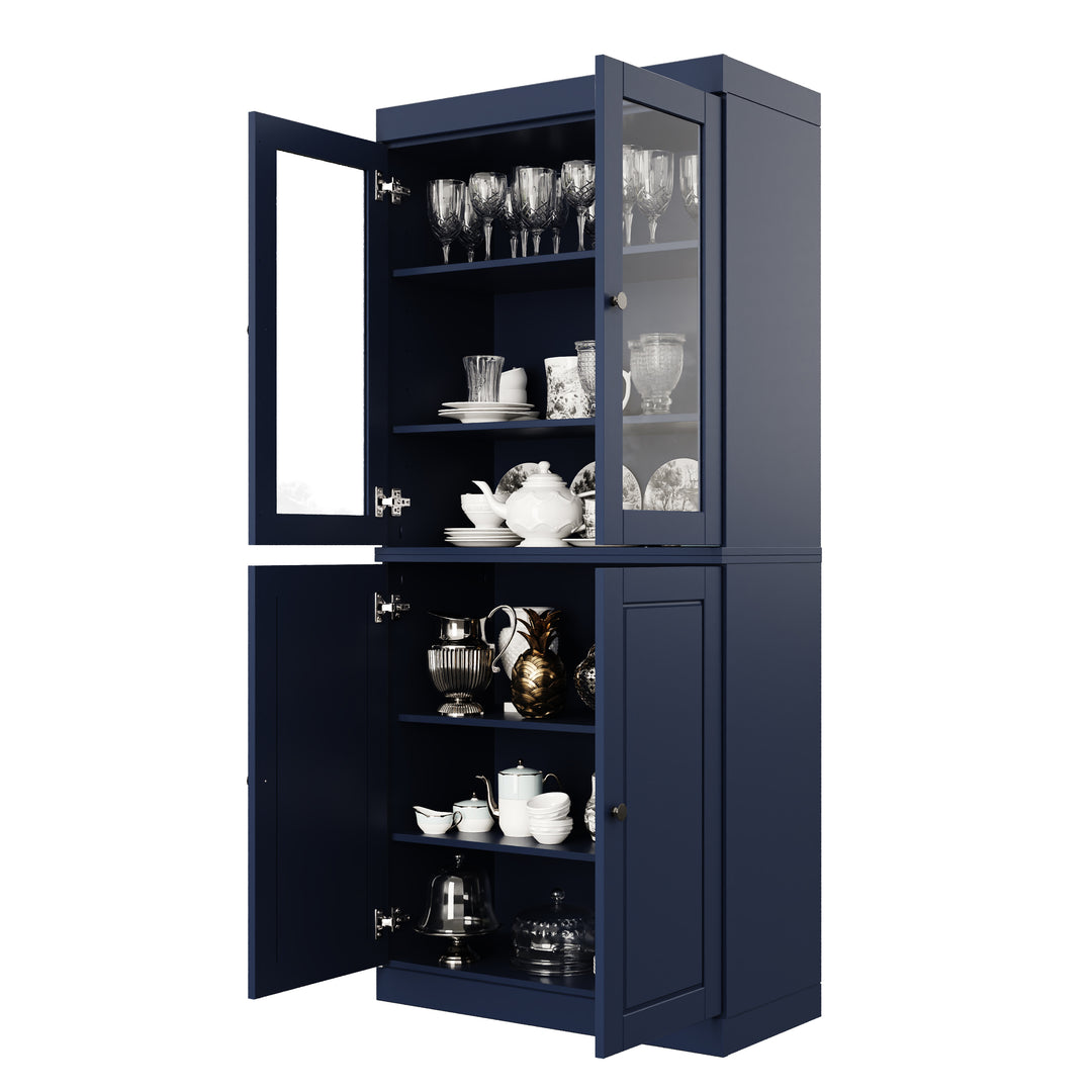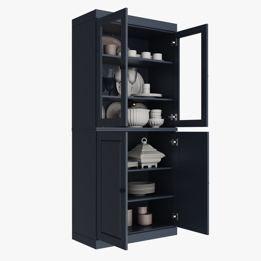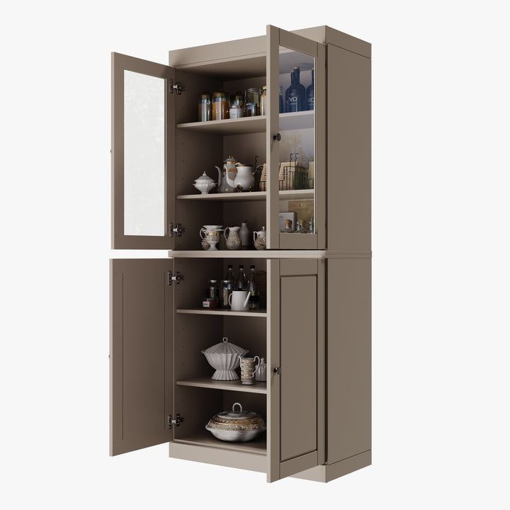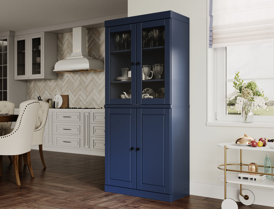 A thoughtful mix of glass and raised panel doors allows you to showcase treasured items while neatly concealing the rest. Inside, four adjustable shelves provide generous, customizable storage—perfect for oversized dry goods, spices, and everything in between.