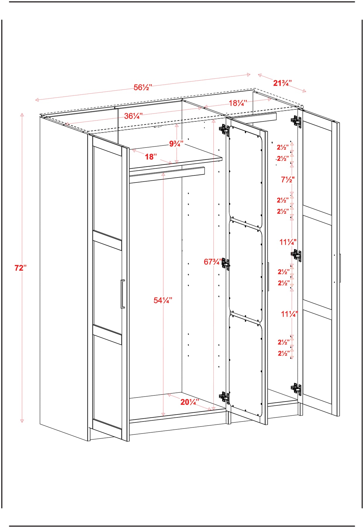 Overall Size: 56.5"w x 72"h x 21.75"d