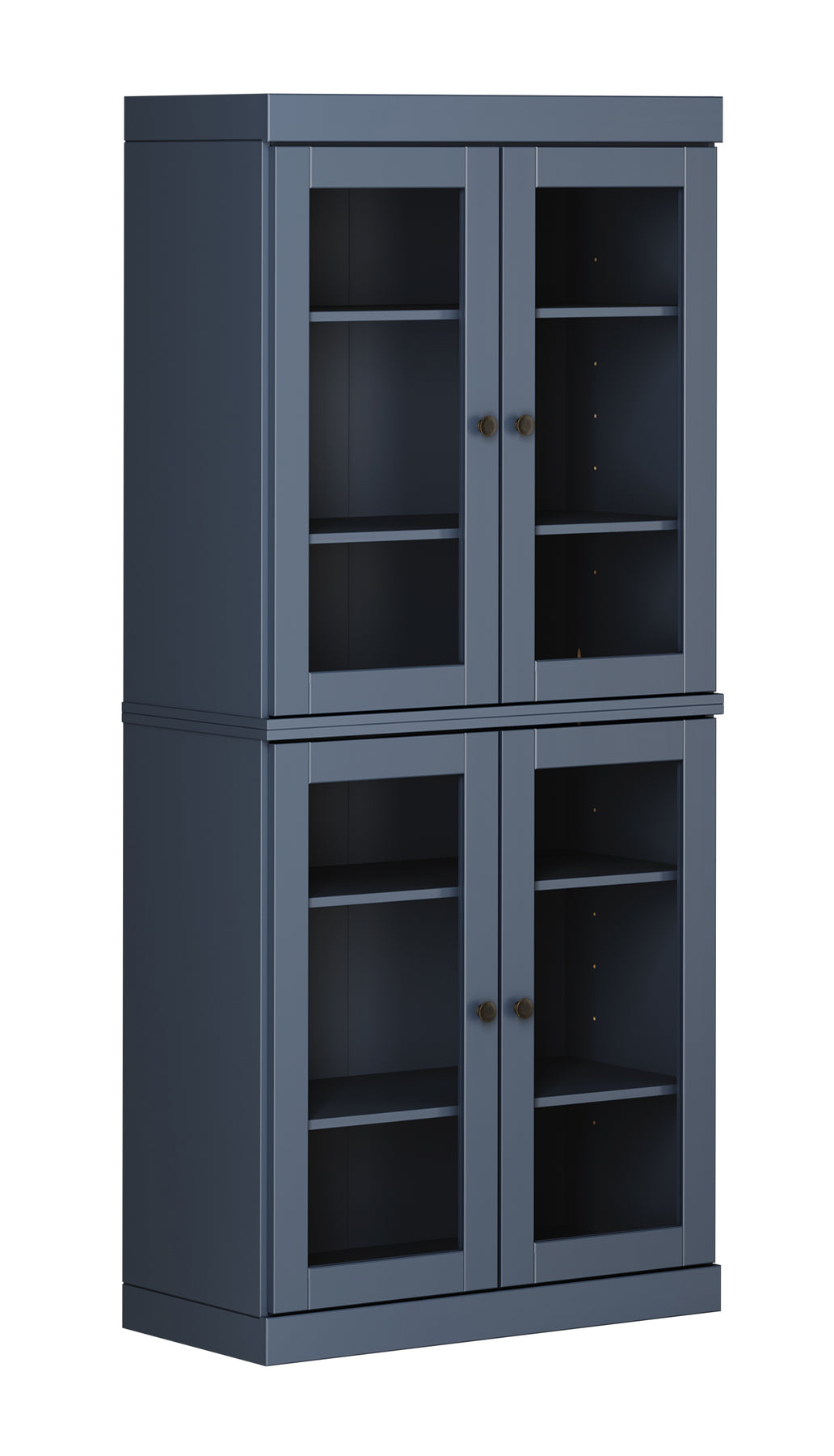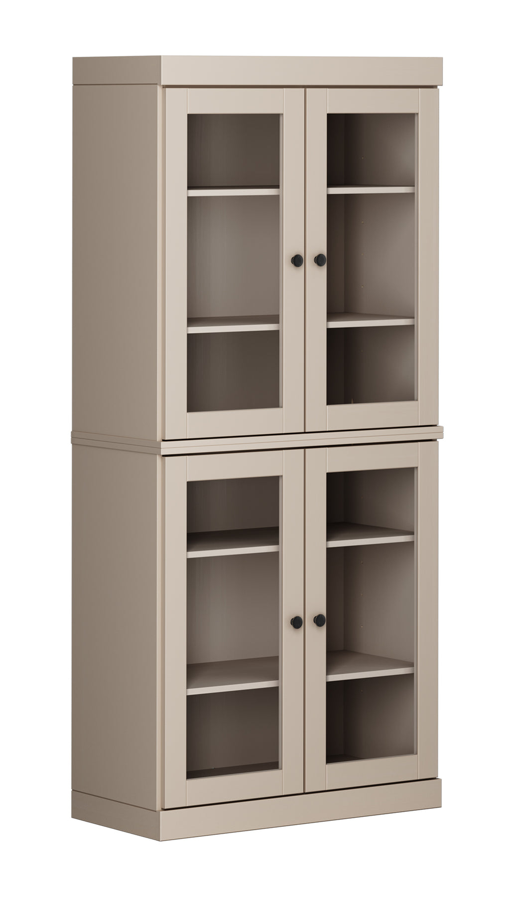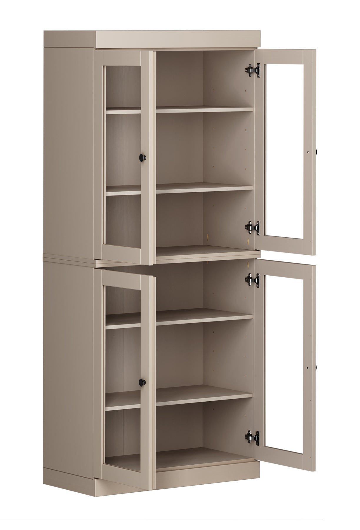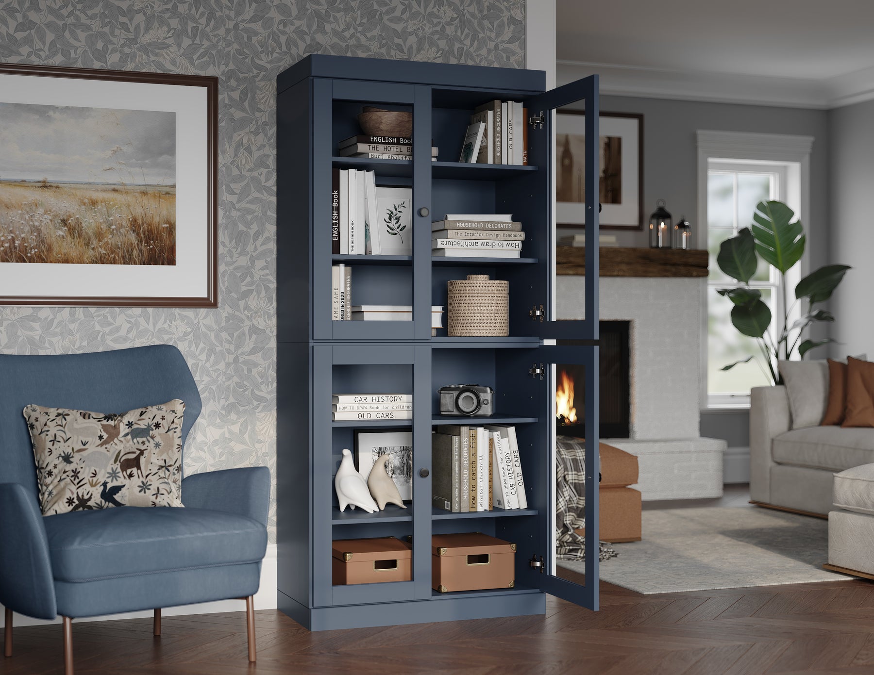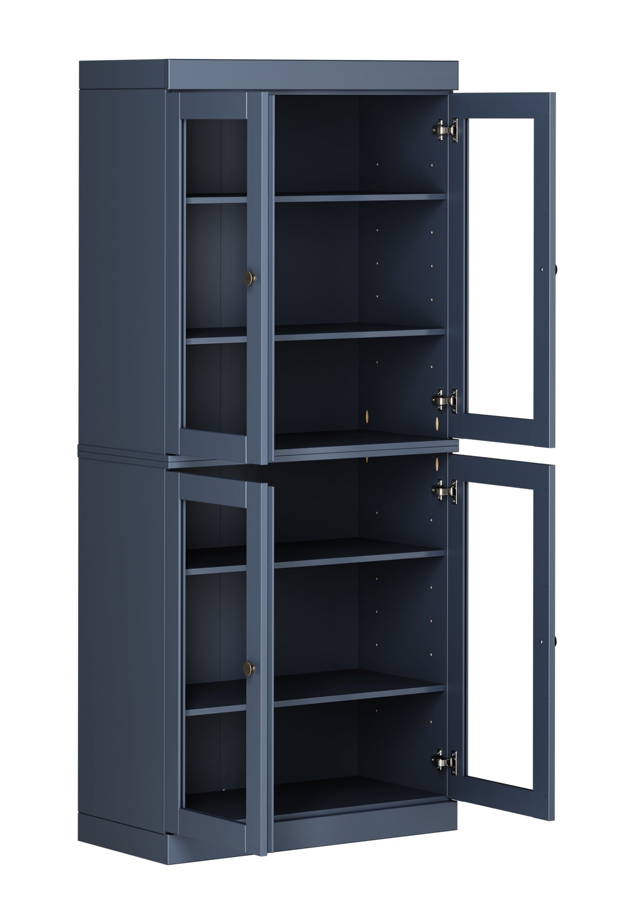 100% Solid Wood 6-Shelf 32" Bookcase, 4 Clear Glass Doors, Adjustable Shelves