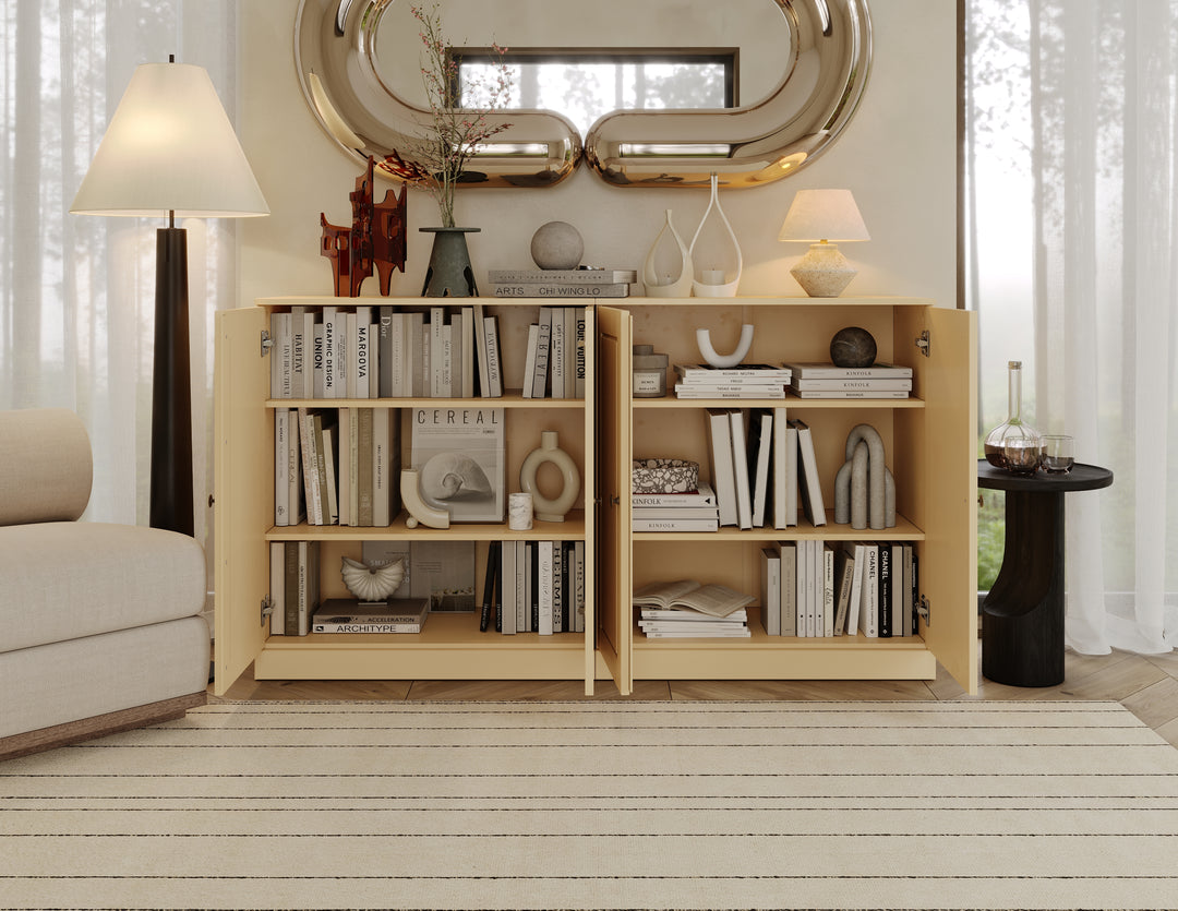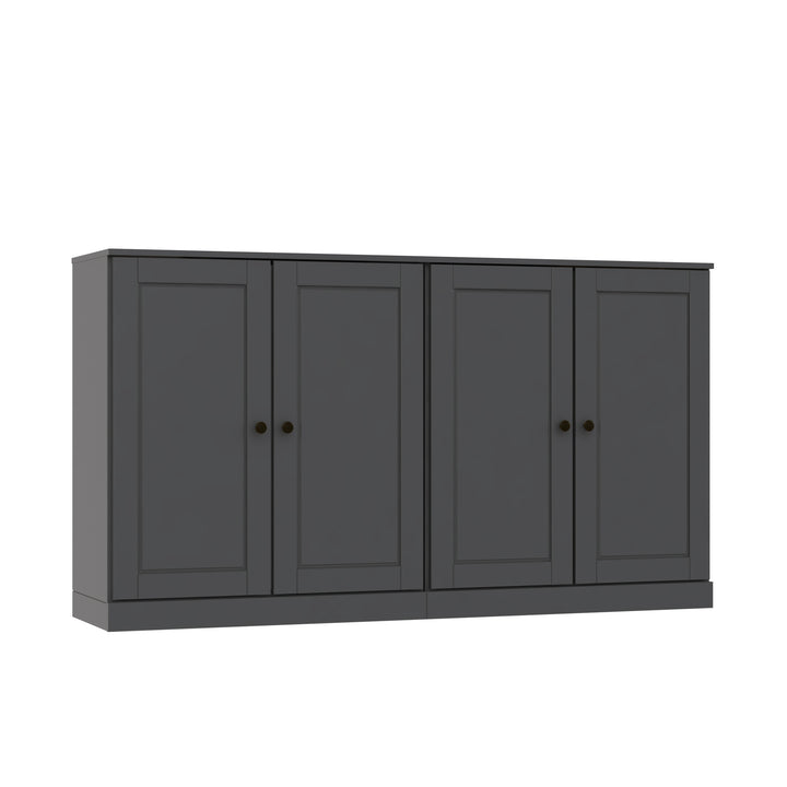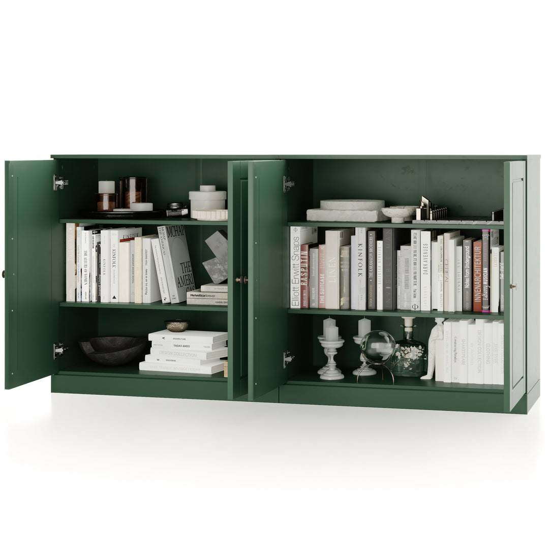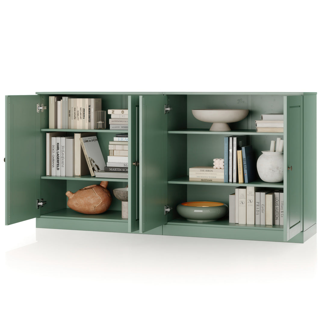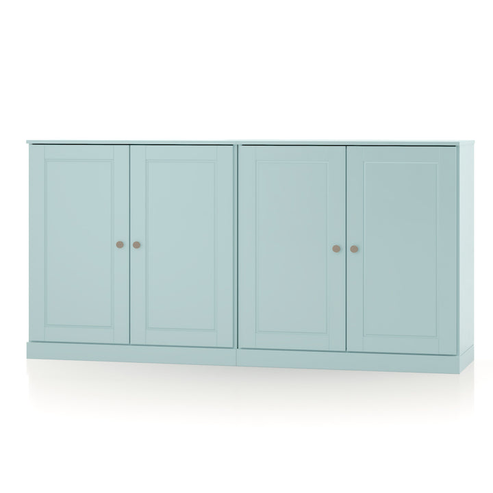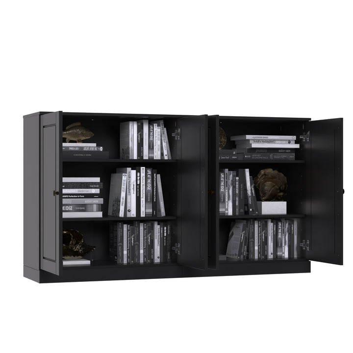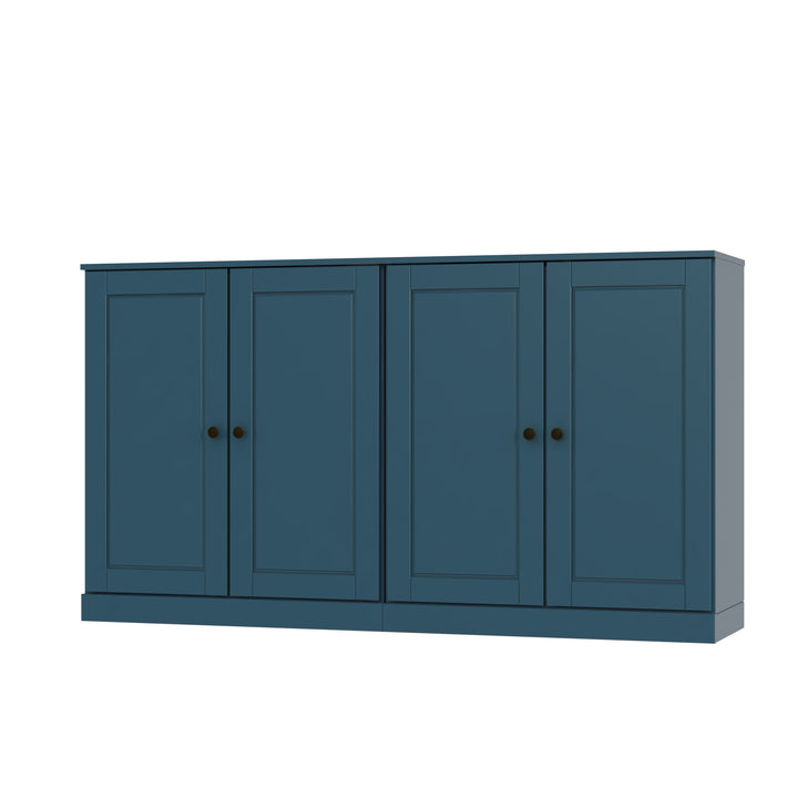 A beautiful 100% Solid Wood Sideboard will be a welcome addition to any room in need of some accent furniture. Cleverly designed as a set of 2 separate units, they can be combined to create a grand 64-inch-wide sideboard or be kept separate for more strategic placement. Fully adjustable and removable 4 shelves inside the voluminous interior make it easy to fit large and small items that can be hidden behind the raised panel doors. Get this Made in Brazil beauty today and enjoy the smell and look of wood for life!