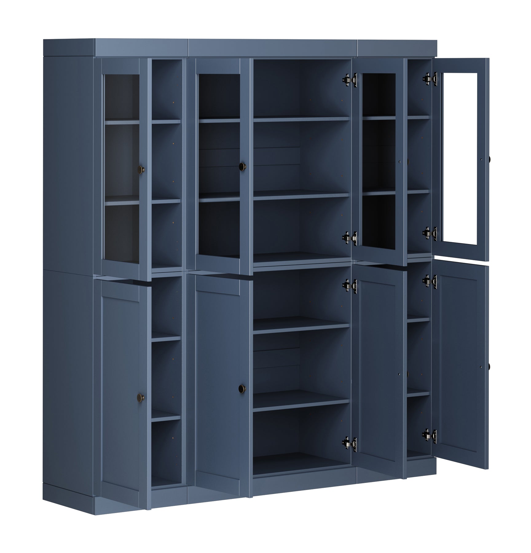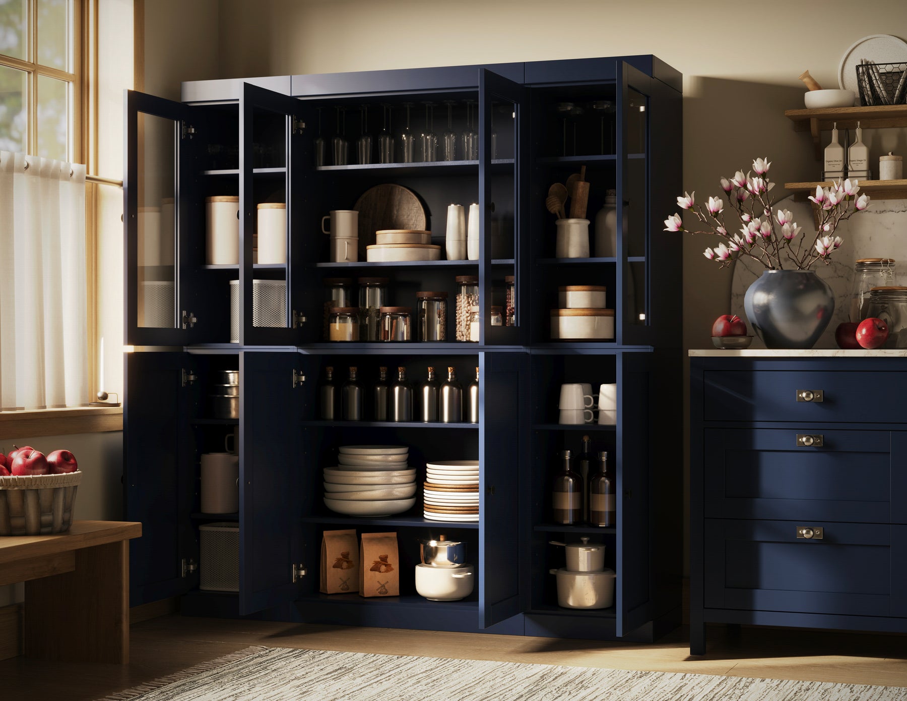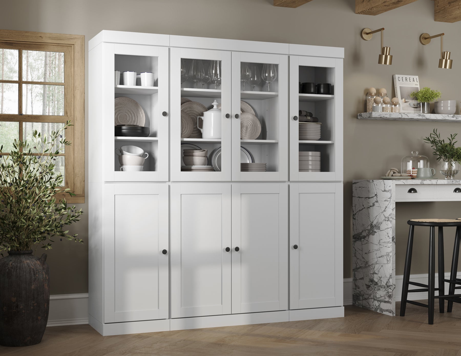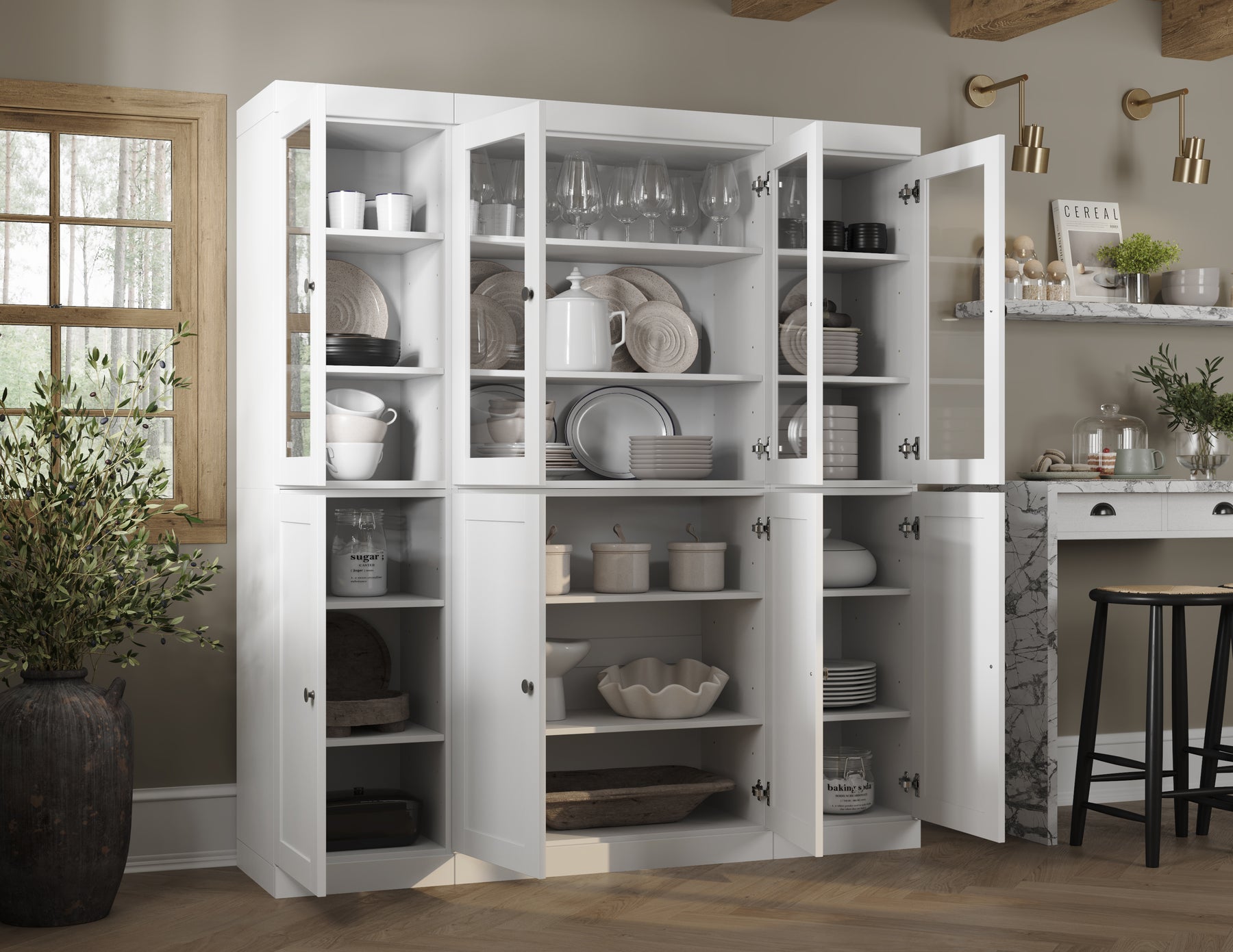 This 100% solid wood 65"‐wide pantry is a perfect solution to your kitchen storage needs! Within easy reach and with 4 large and 8 small adjustable shelves it will allow you to store multiple items regardless of their size. Clear glass doors will showcase your wares while the solid shaker wood doors will make your pantry look stately no matter an occasional clutter. Get this Made in Brazil pantry today to make your kitchen sparkle!