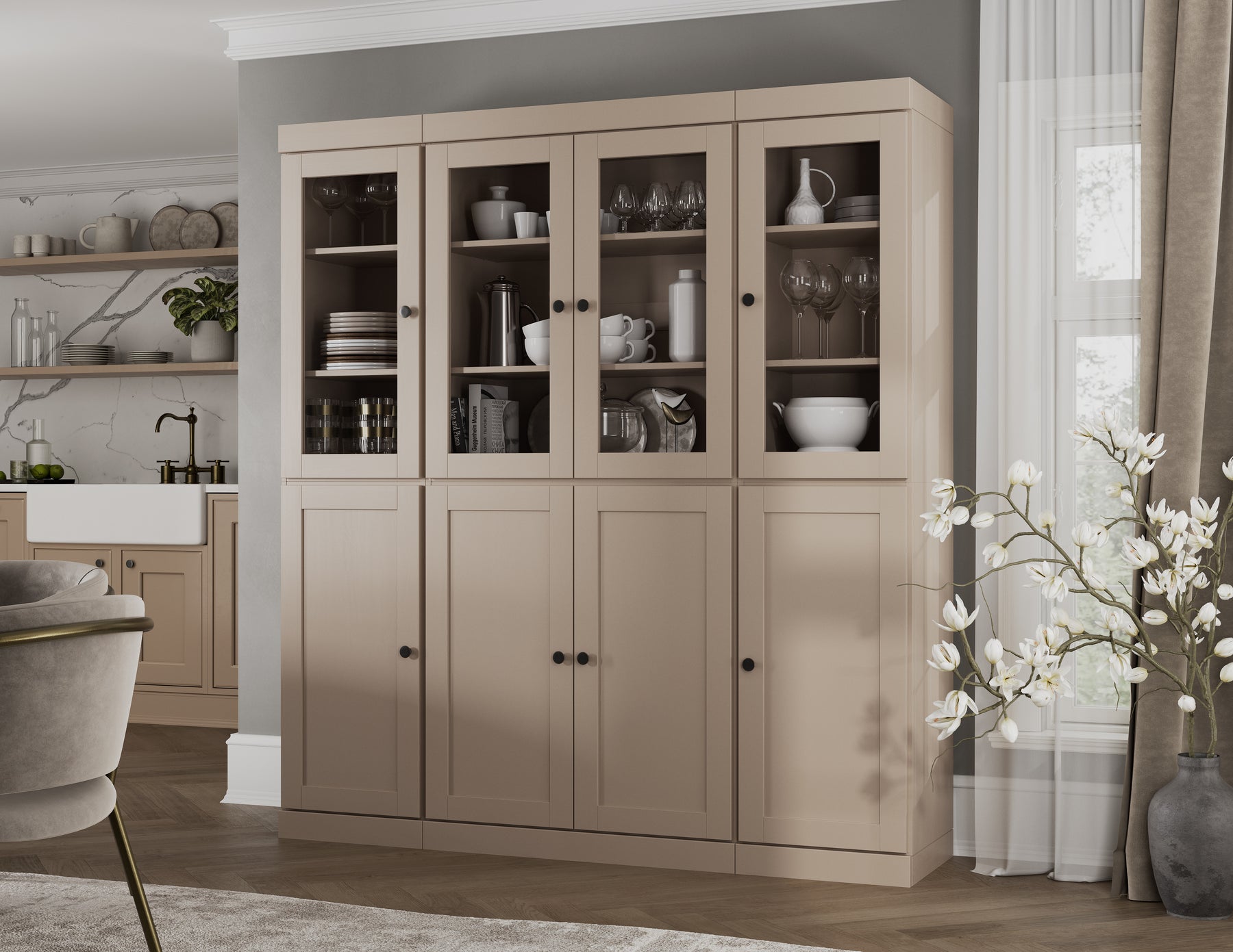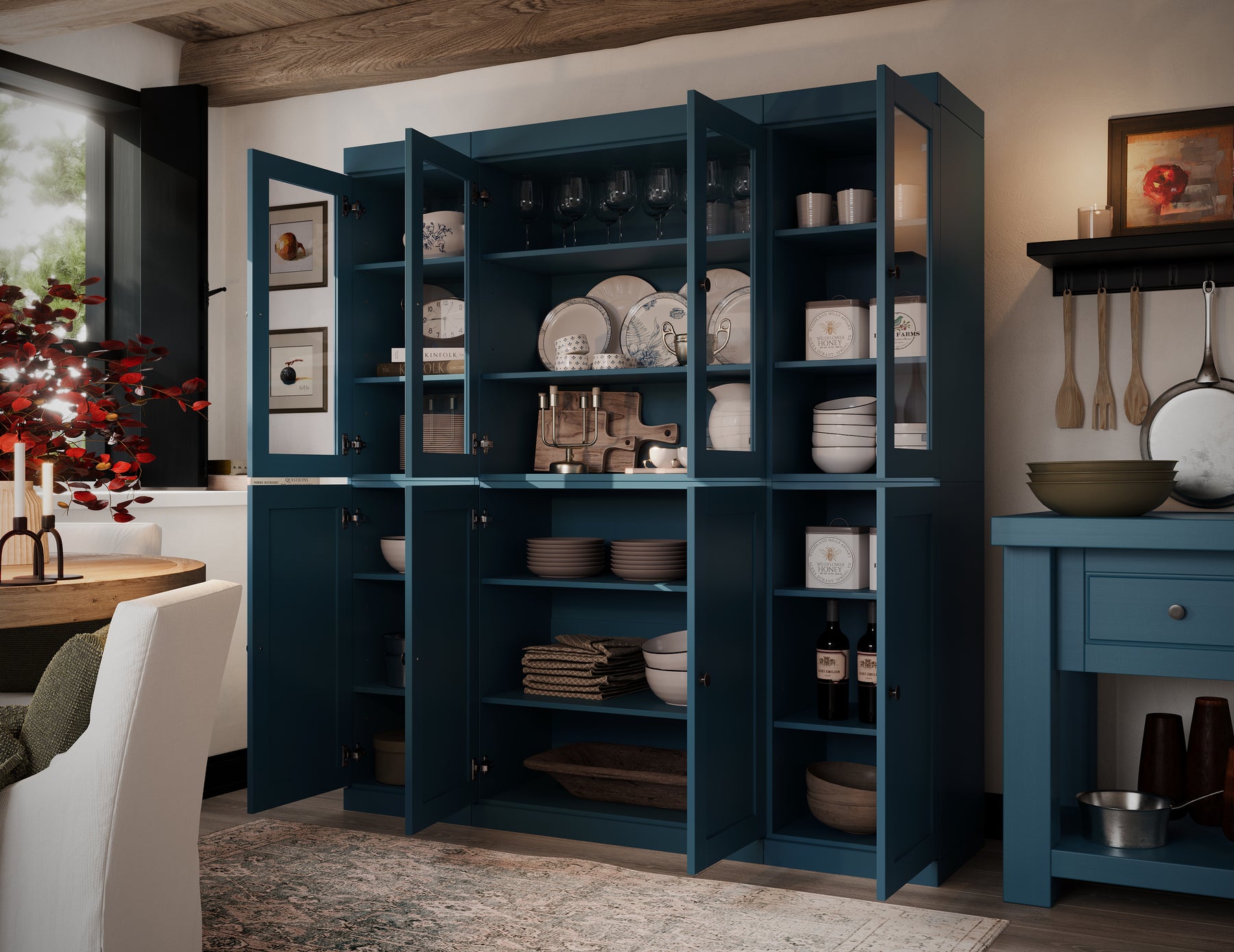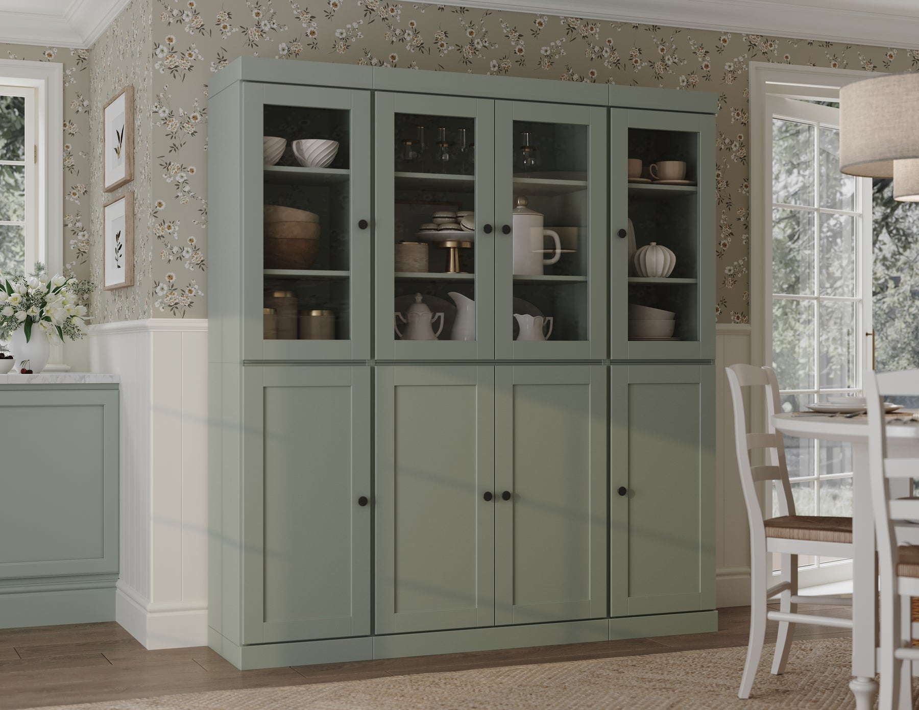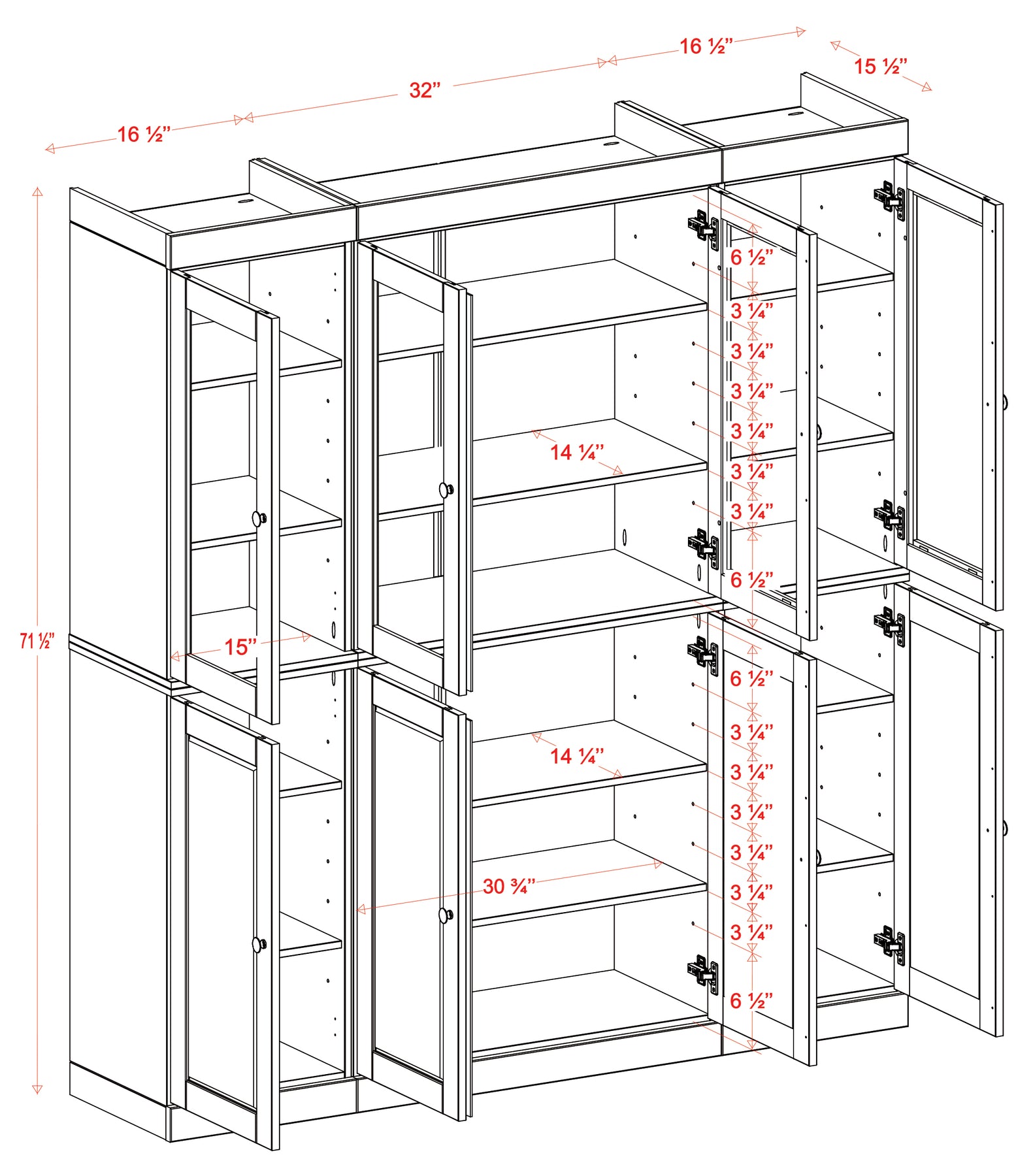 This 100% solid wood 65"‐wide pantry is a perfect solution to your kitchen storage needs! Within easy reach and with 4 large and 8 small adjustable shelves it will allow you to store multiple items regardless of their size. Clear glass doors will showcase your wares while the solid shaker wood doors will make your pantry look stately no matter an occasional clutter. Get this Made in Brazil pantry today to make your kitchen sparkle!