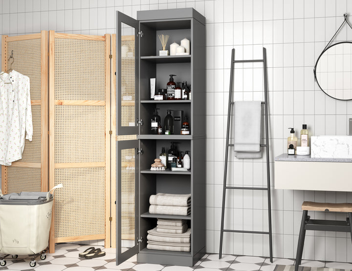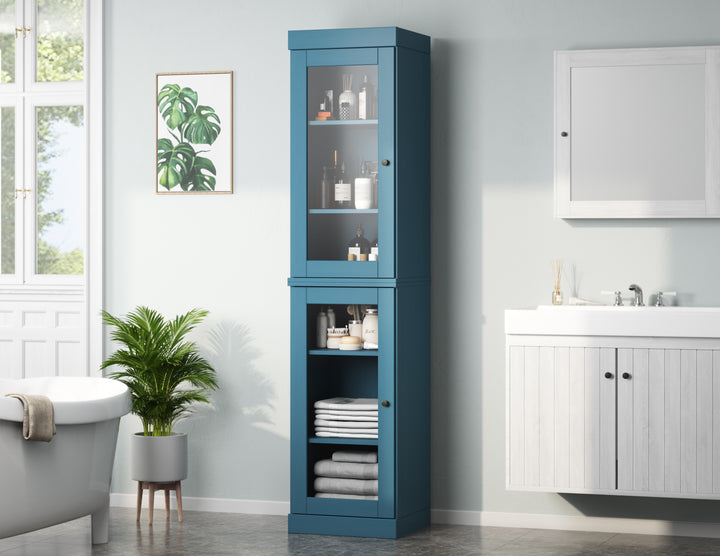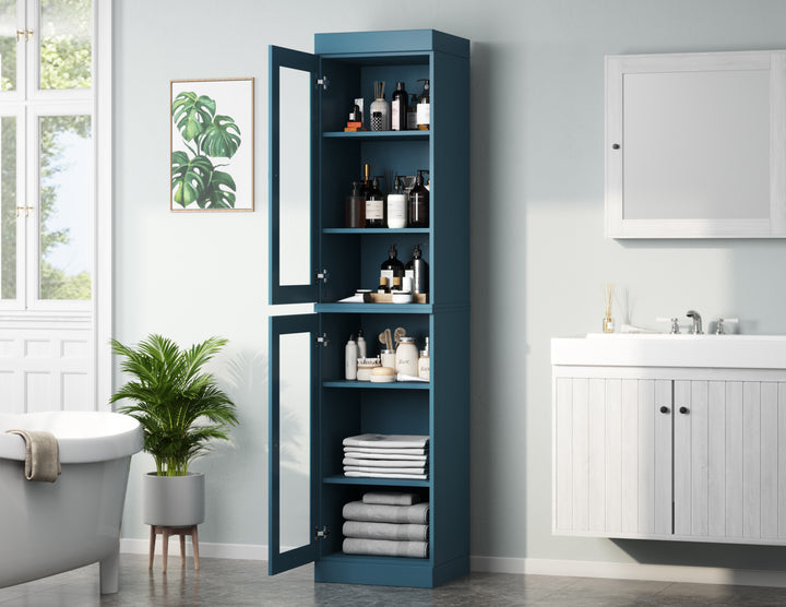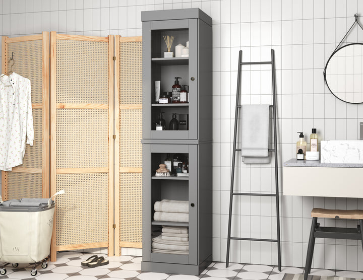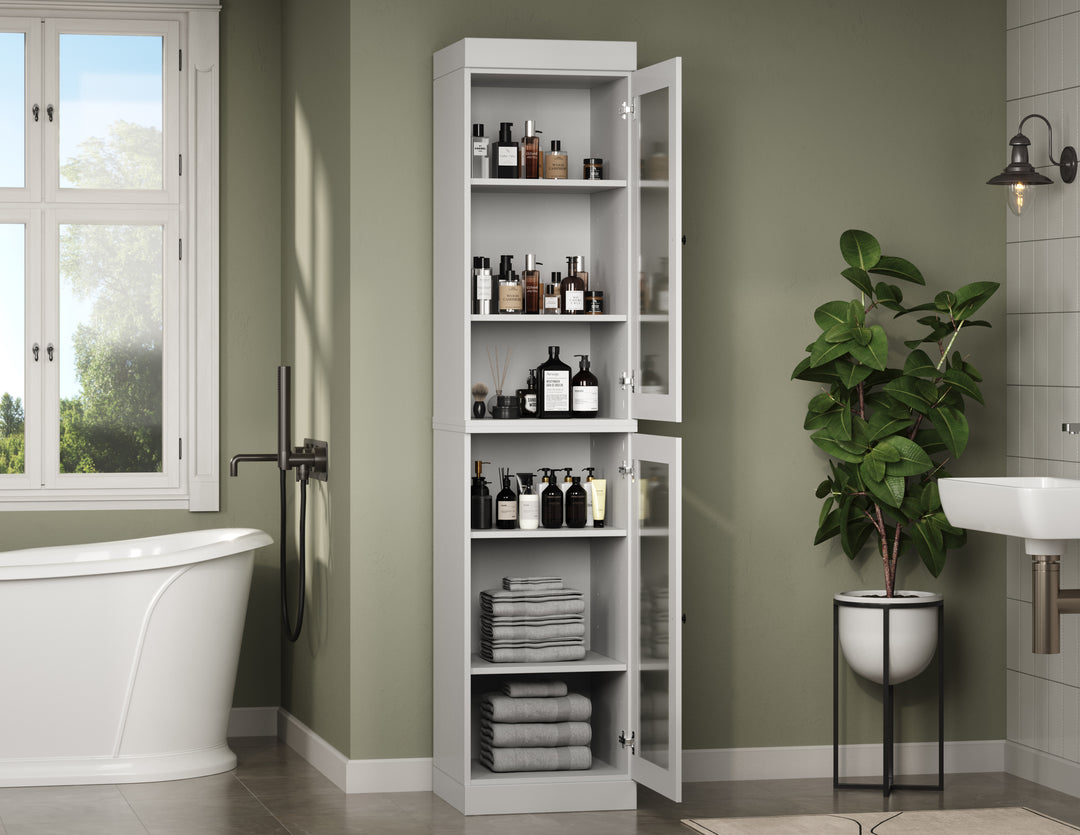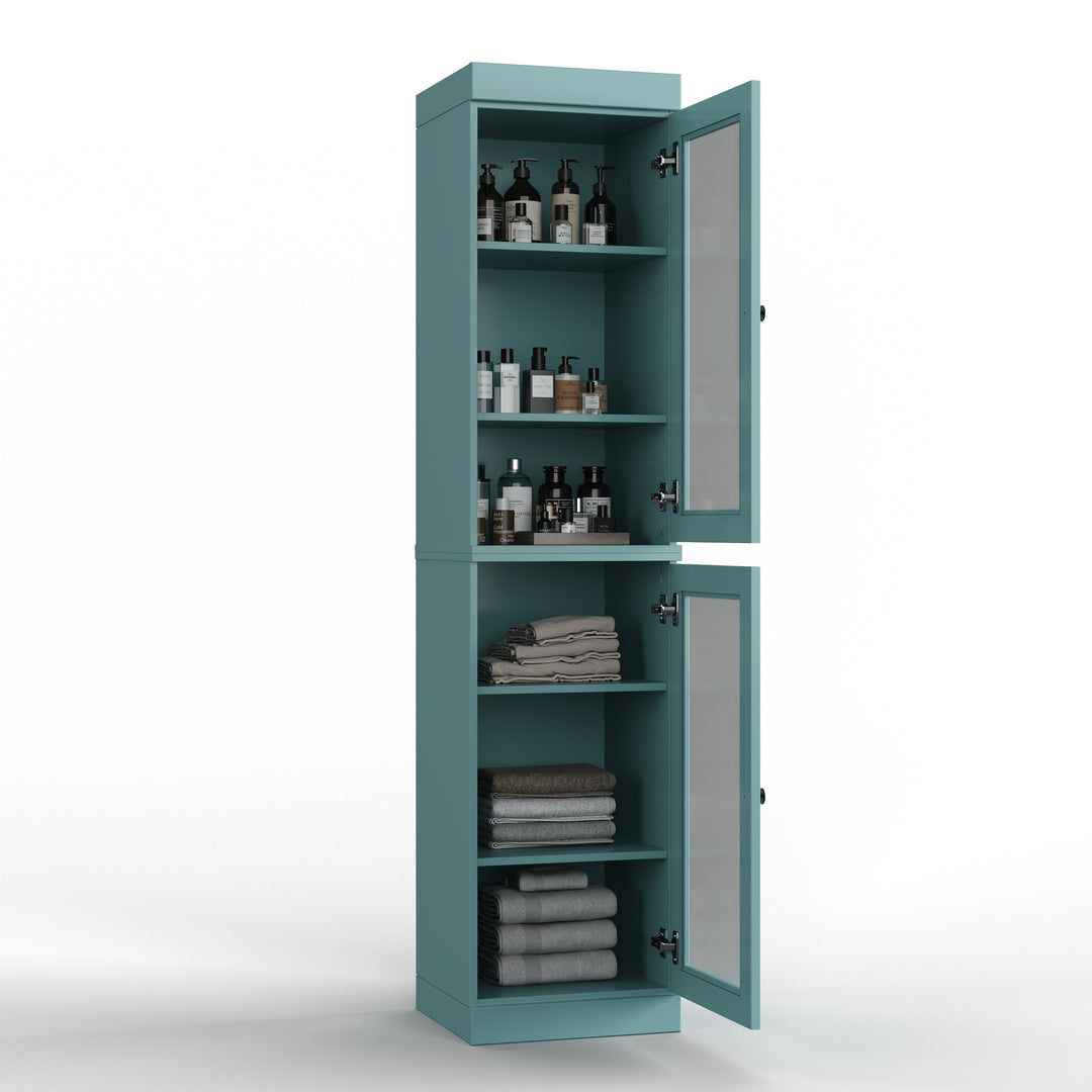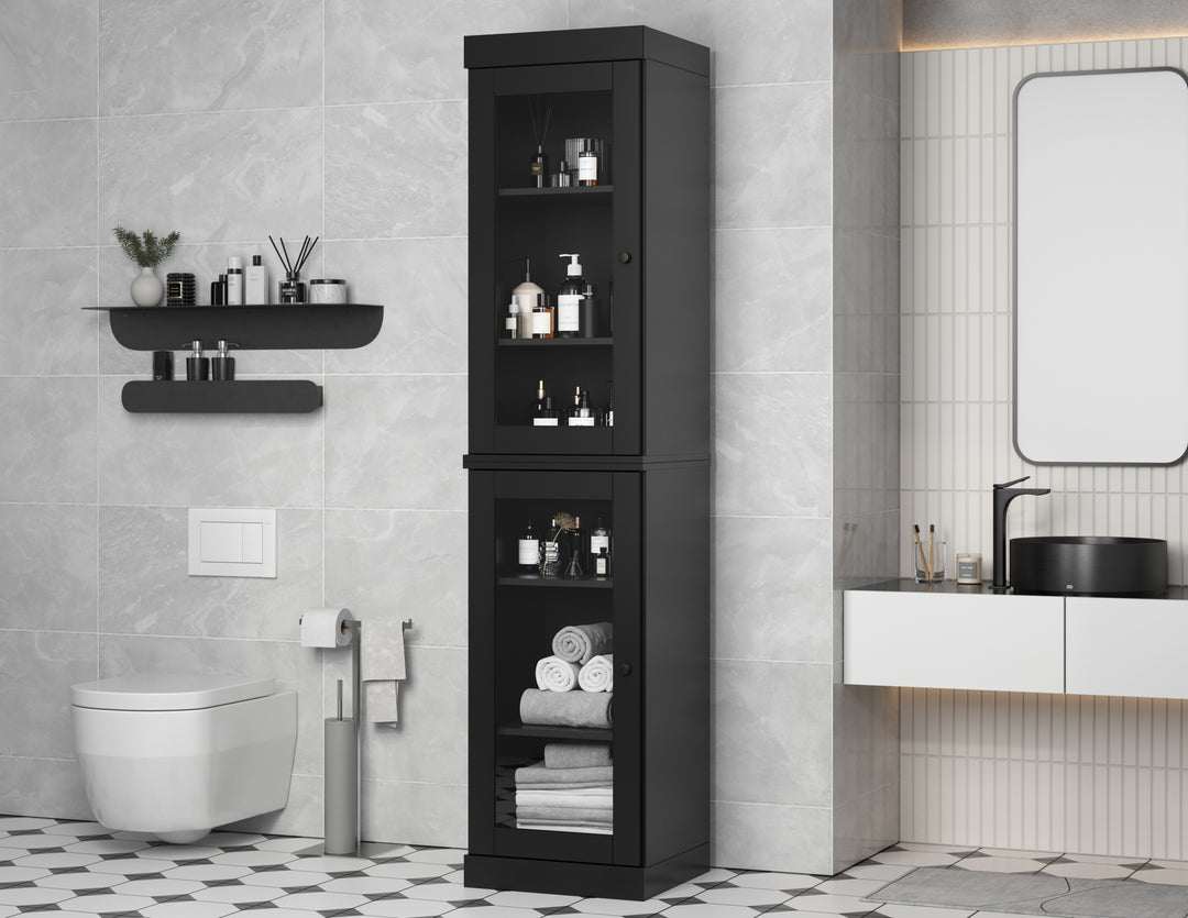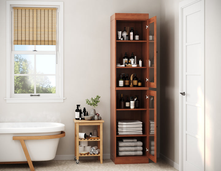 Transform your bathroom with our 16.5" wide cabinet, made from 100% solid wood and expertly crafted in Brazil. This stylish and practical piece offers adjustable shelves to store items of various sizes and provides flexible display options. Choose clear glass doors to highlight your collection, frosted glass for a modern touch, or solid wood doors for hidden storage. Elevate your bathroom’s look with this blend of elegance and durability.