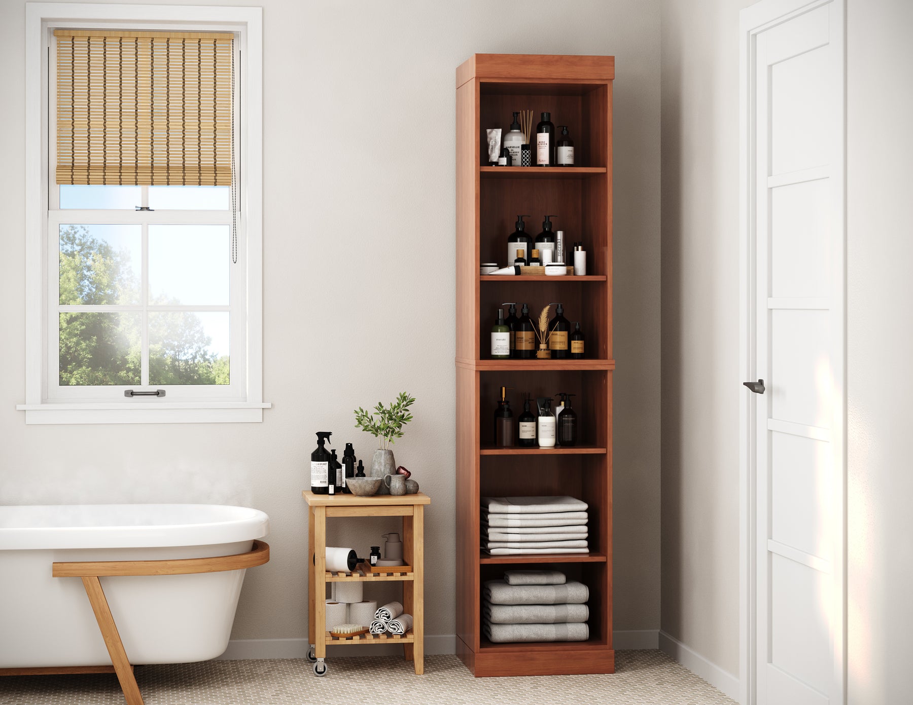 Enhance your bathroom with our 16.5" wide cabinet, expertly crafted from 100% solid wood in Brazil. This versatile cabinet offers adjustable shelves, providing ample space for items of varying sizes while allowing you to personalize your storage. For added customization, optional doors are available separately in frosted glass, clear glass, or solid wood—perfect for those who prefer to keep their items out of sight. With its perfect balance of elegance and durability, this cabinet is designed to elevate both the style and functionality of your space.