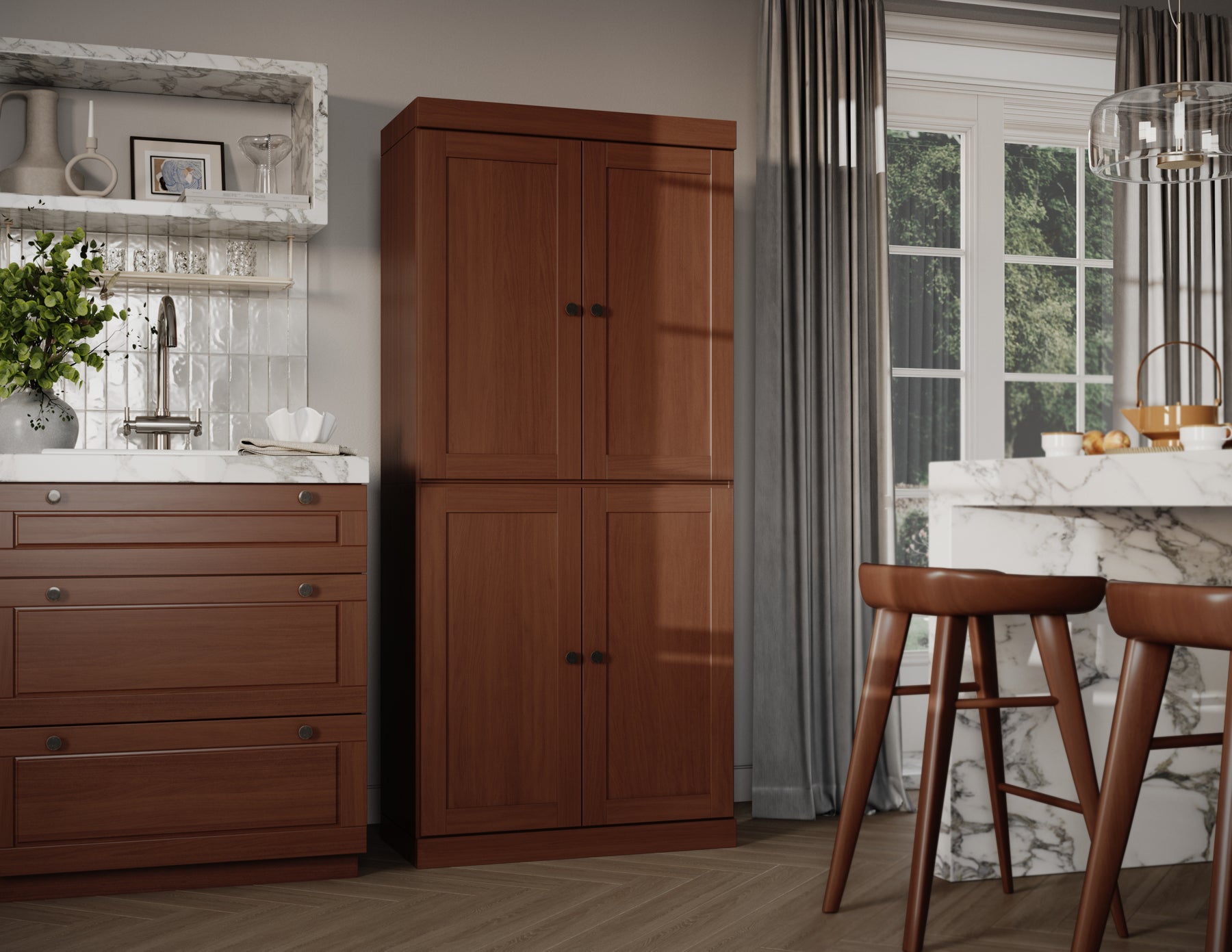 With its solid construction and refined silhouette, this pantry brings lasting charm and functionality to any kitchen space.