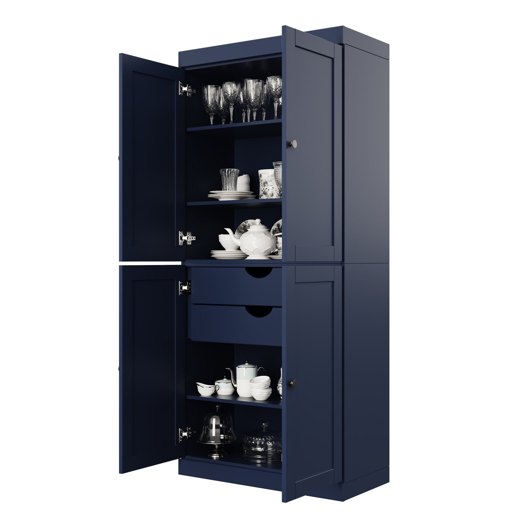 - Door Options: Clear, frosted glass, shaker, or solid wood raised panel doors with European soft-closing stainless steel hinges.