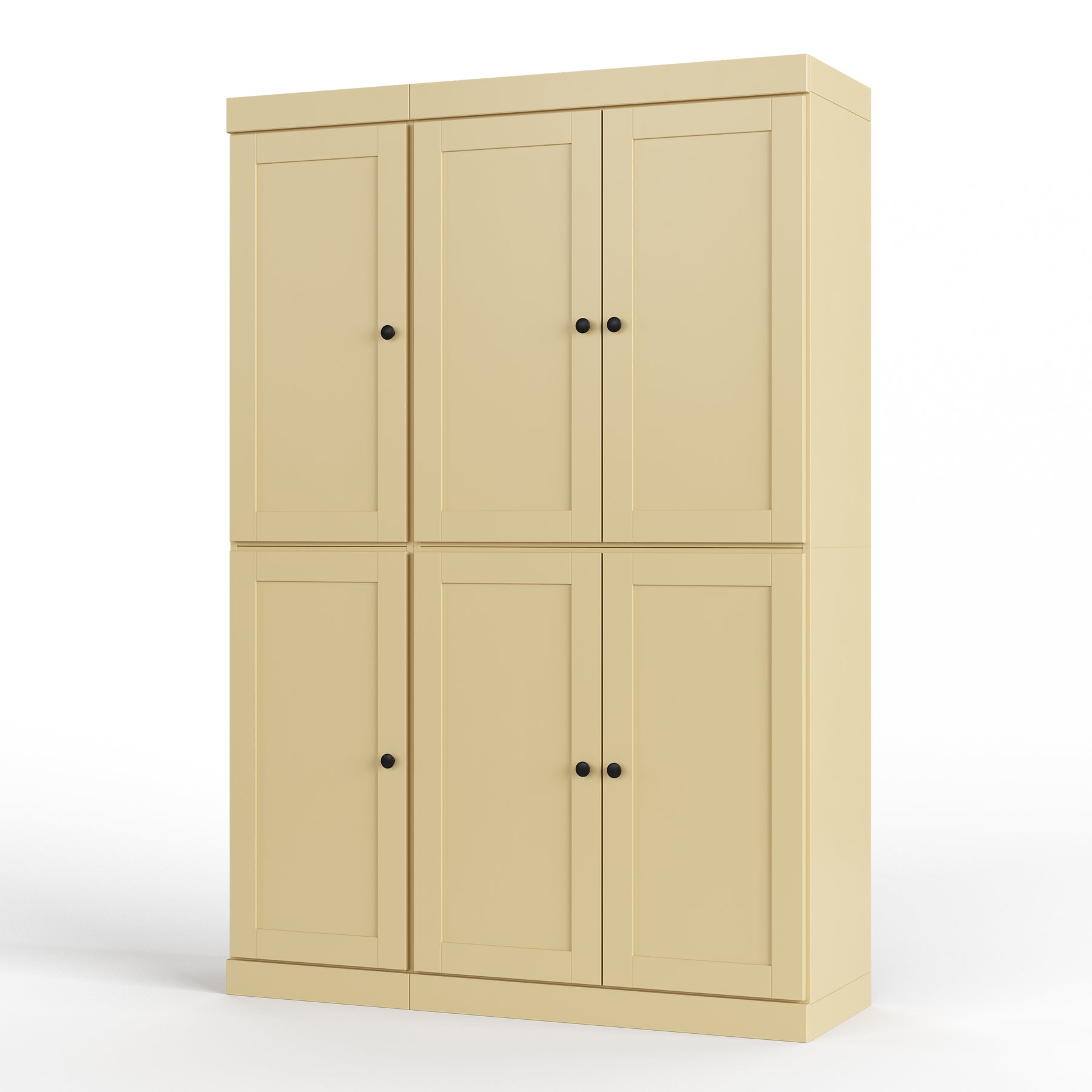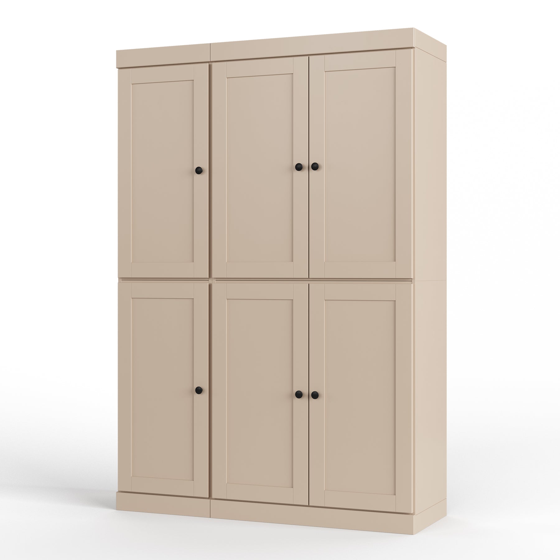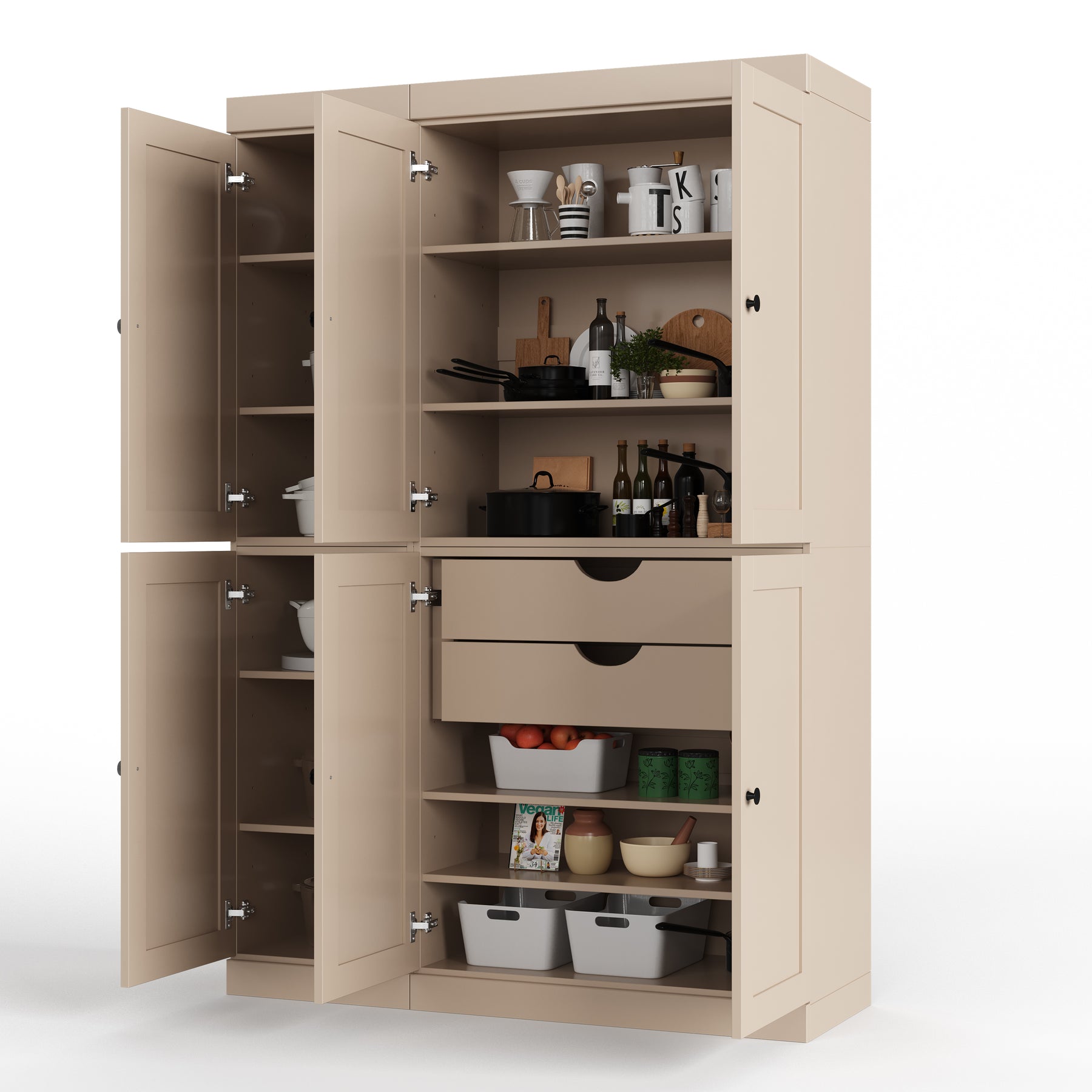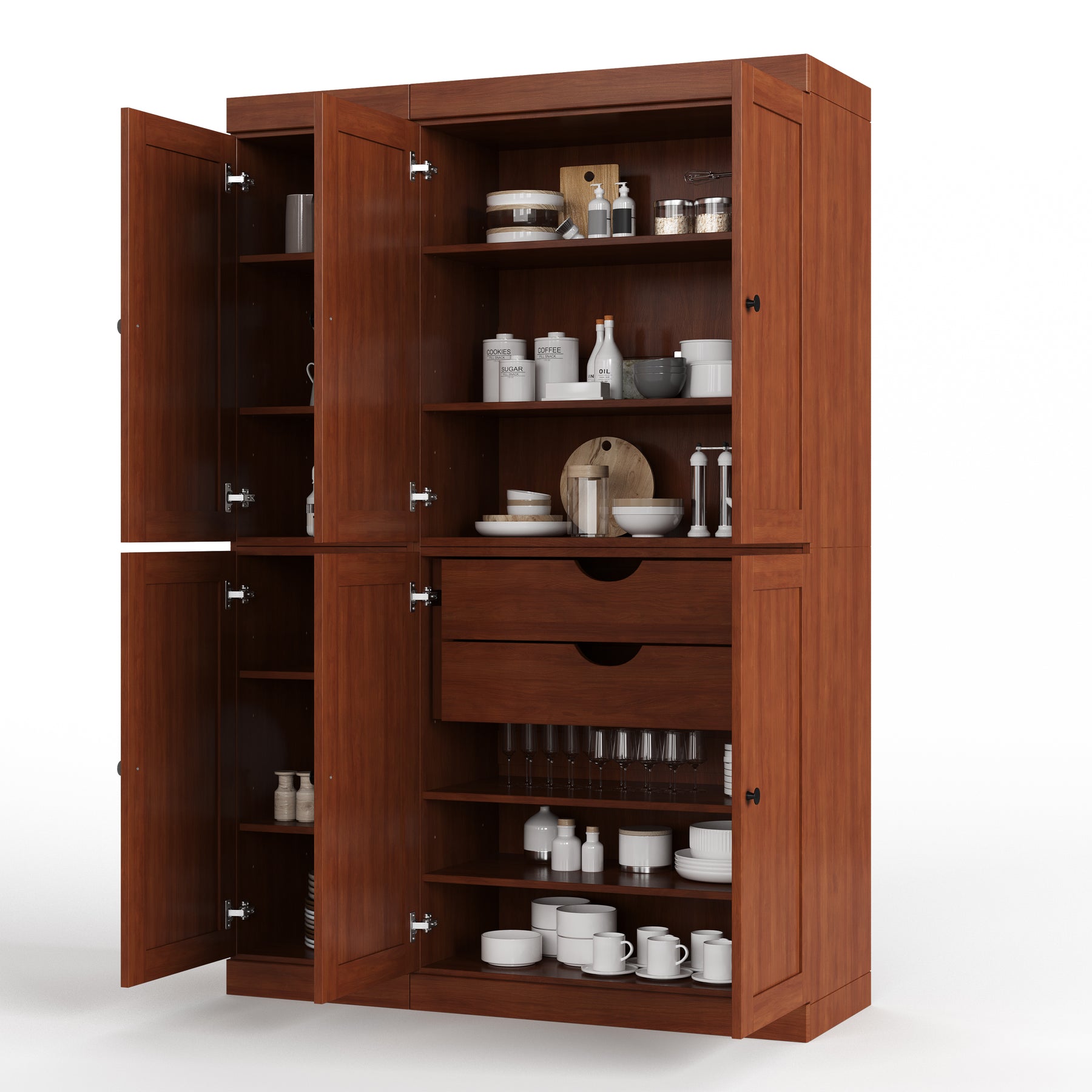 This 100% solid wood 48.5"‐wide pantry China cabinet is a perfect solution to your kitchen storage and display needs! Within easy reach and with all adjustable shelves, it will store various items regardless of their size. The shaker solid wood doors will hide an occasional clutter. One 2-drawer organizer, which is perfect for smaller loose item, is included, but the unique design of this "create your own pantry" allows you to add multiple 2-drawer kits. You can even turn it into 2 sideboards completely redesign it with 7 basic modules. Get this Made in Brazil solid wood pantry today and make your kitchen sparkle!