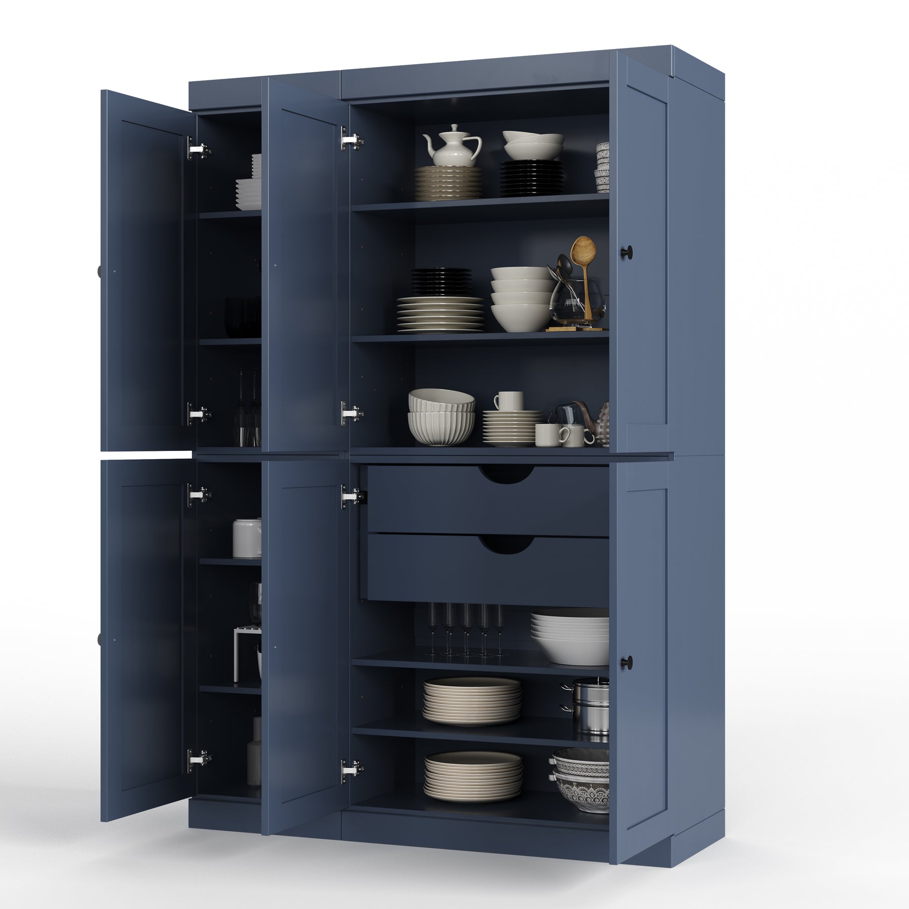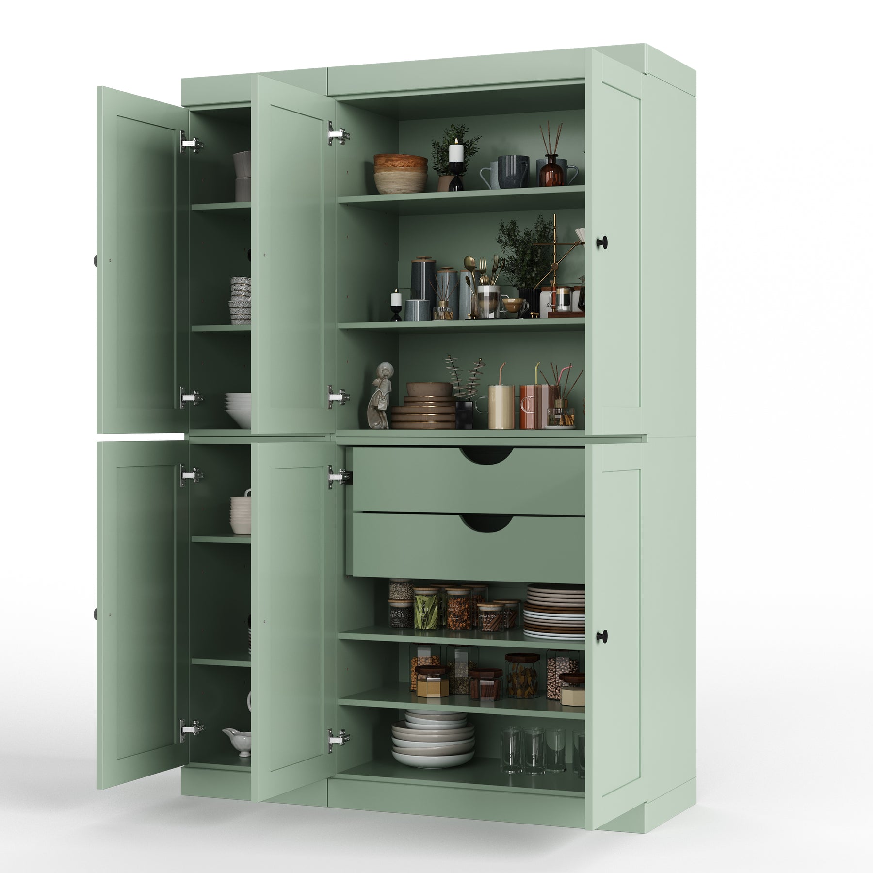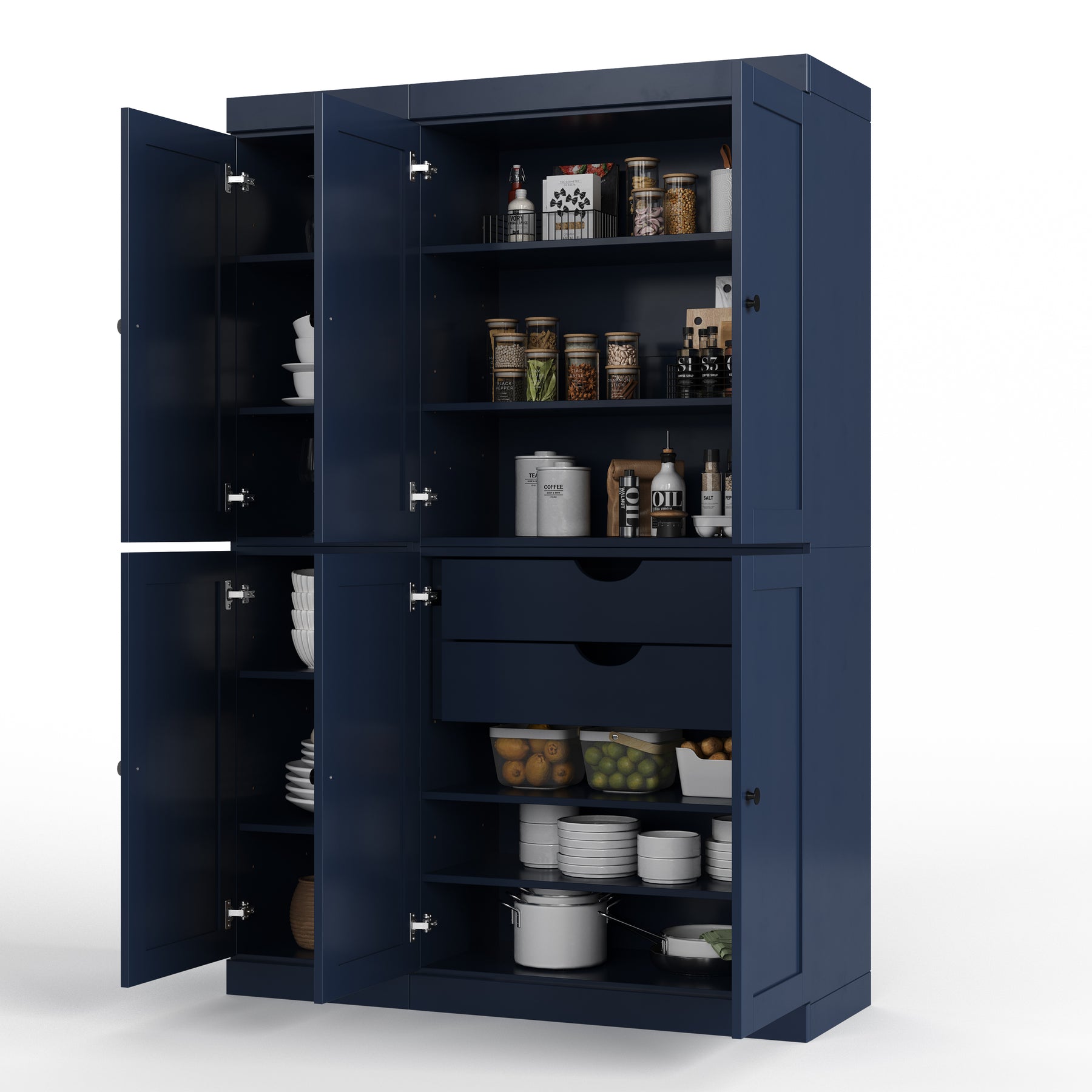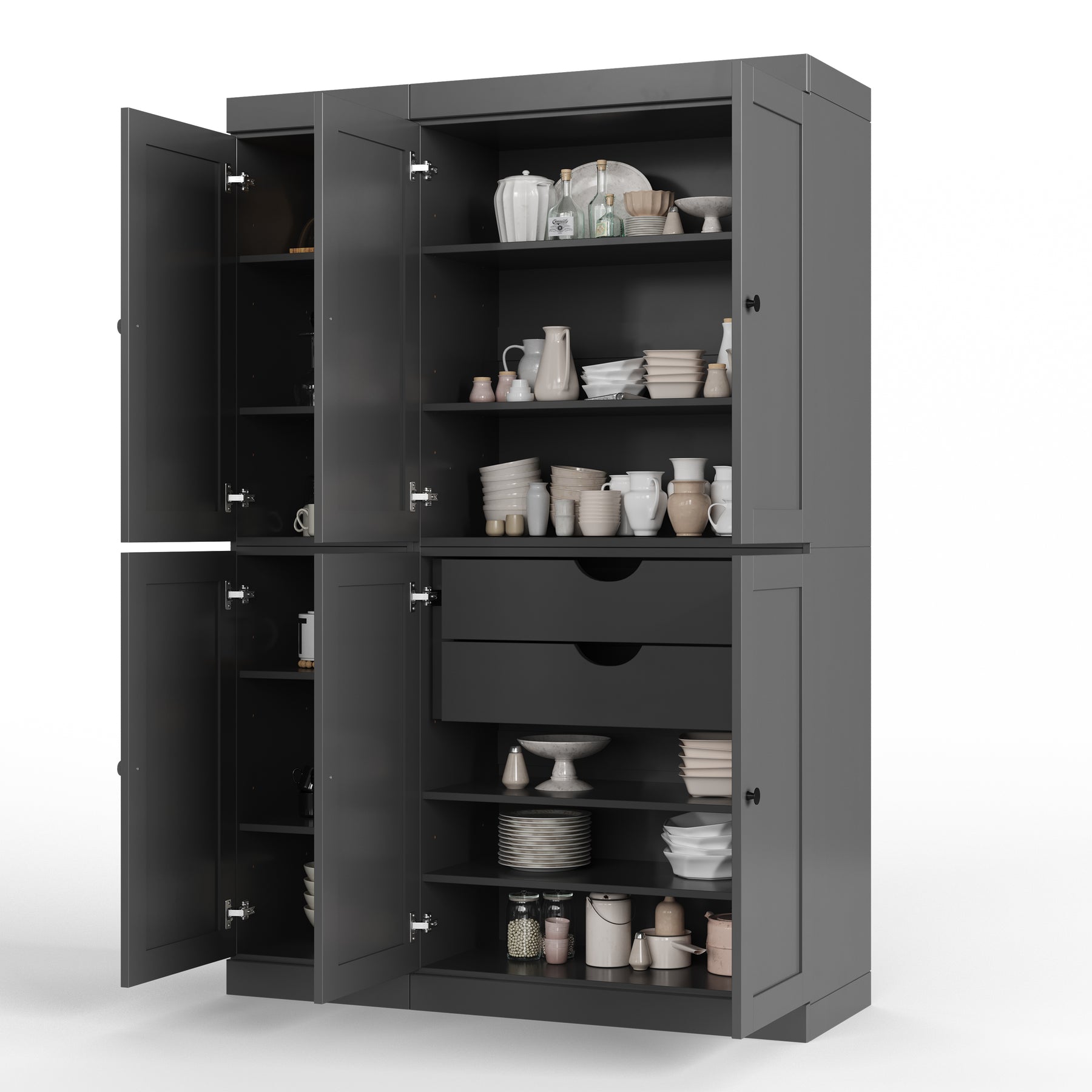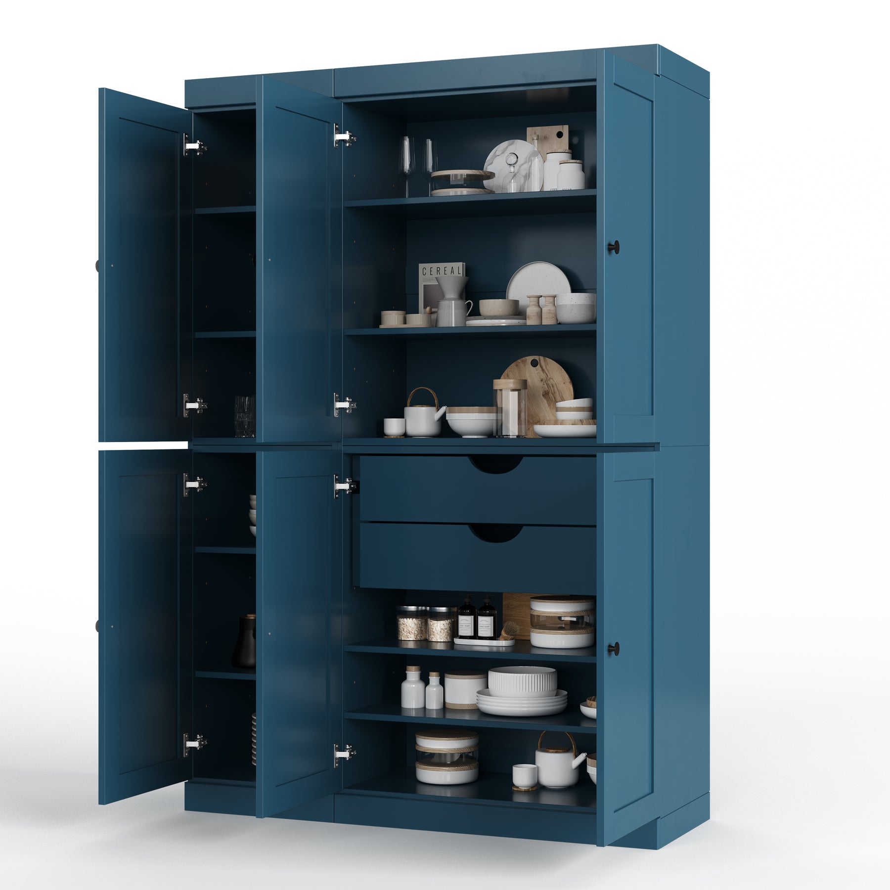 This 100% solid wood 48.5"‐wide pantry China cabinet is a perfect solution to your kitchen storage and display needs! Within easy reach and with all adjustable shelves, it will store various items regardless of their size. The shaker solid wood doors will hide an occasional clutter. One 2-drawer organizer, which is perfect for smaller loose item, is included, but the unique design of this "create your own pantry" allows you to add multiple 2-drawer kits. You can even turn it into 2 sideboards completely redesign it with 7 basic modules. Get this Made in Brazil solid wood pantry today and make your kitchen sparkle!