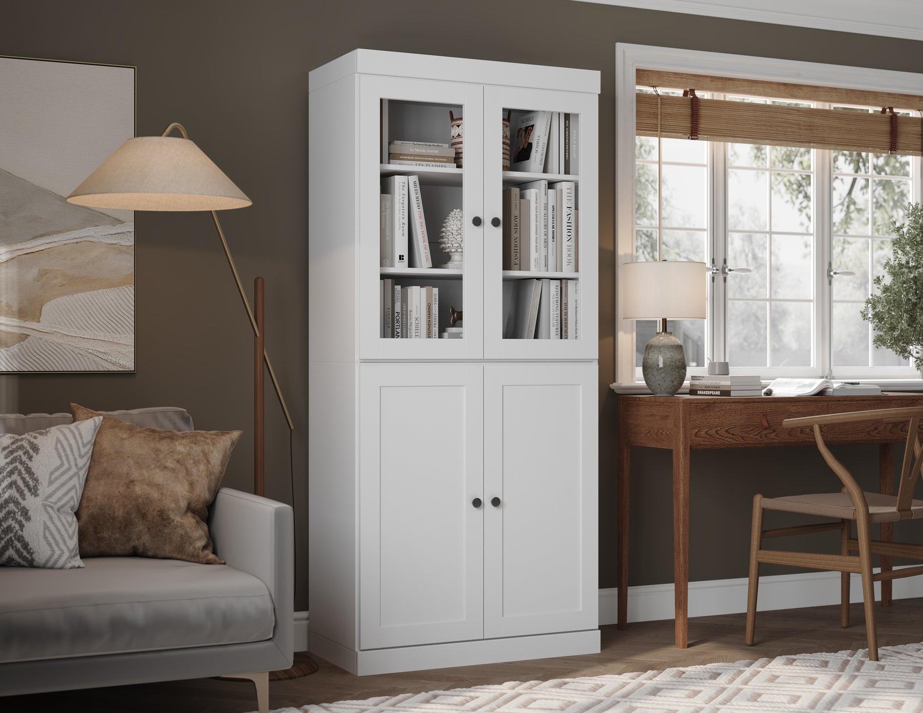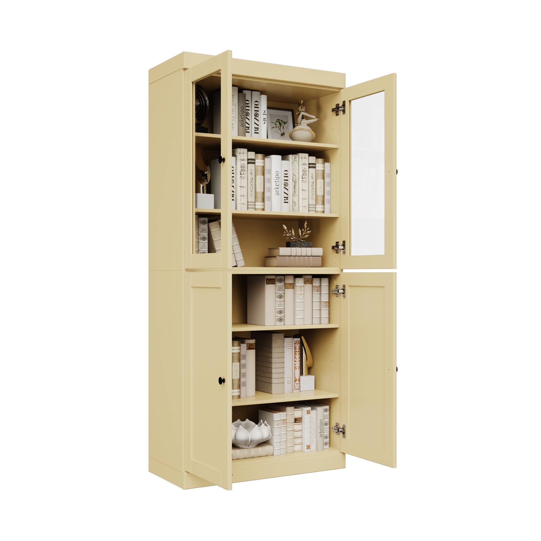Introducing our 100% Solid Pine Wood 6-Shelf Bookcase, expertly crafted in Brazil with a strong commitment to eco-friendly practices. This versatile piece merges sustainable materials with exceptional craftsmanship, offering both style and practicality for your home or office. It features four adjustable shelves to accommodate items of various heights and a sleek closed-back design, making it an ideal addition to any room—whether it’s your home office, living room, or bedroom. The clear glass and shaker doors provide concealed storage, allowing you to use it as a bookcase, storage cabinet, display unit, or even a shoe rack.