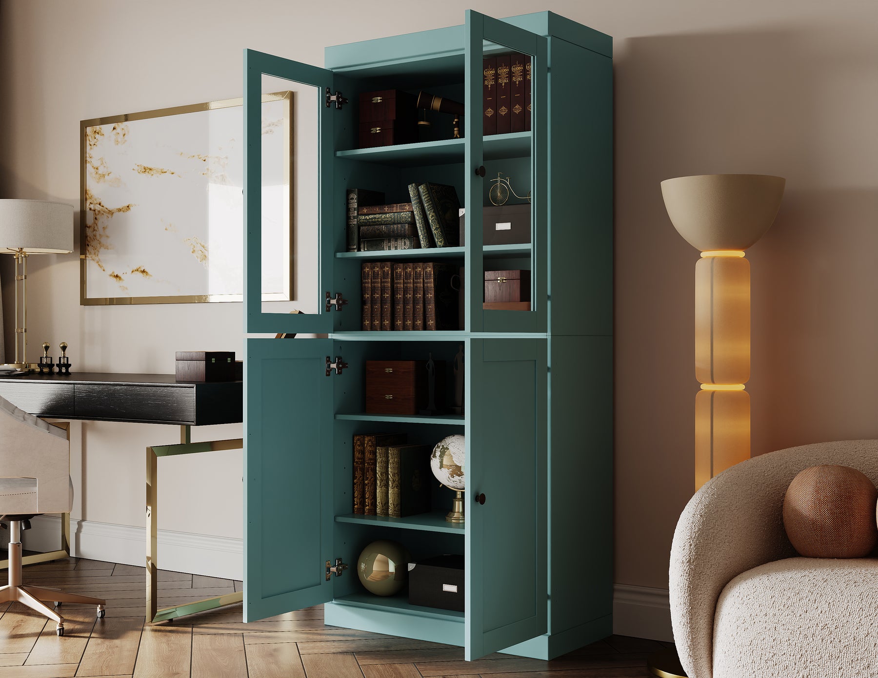 - Stylish Hardware: Bronze metal door knobs, replaceable for customization.