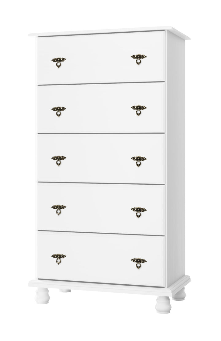Kyle collection's timeless design will never go out of fashion! This giant 100% solid wood 5‐jumbo drawer chest will look like an heirloom in any room thanks to its elegant intricately carved edges, turned bun feet and solid wood construction. The enormous storage capacity of 5 deep jumbo drawers will allow you to tuck a heap of items away. This chest can be purchased separately or as a Kyle collection bedroom set.