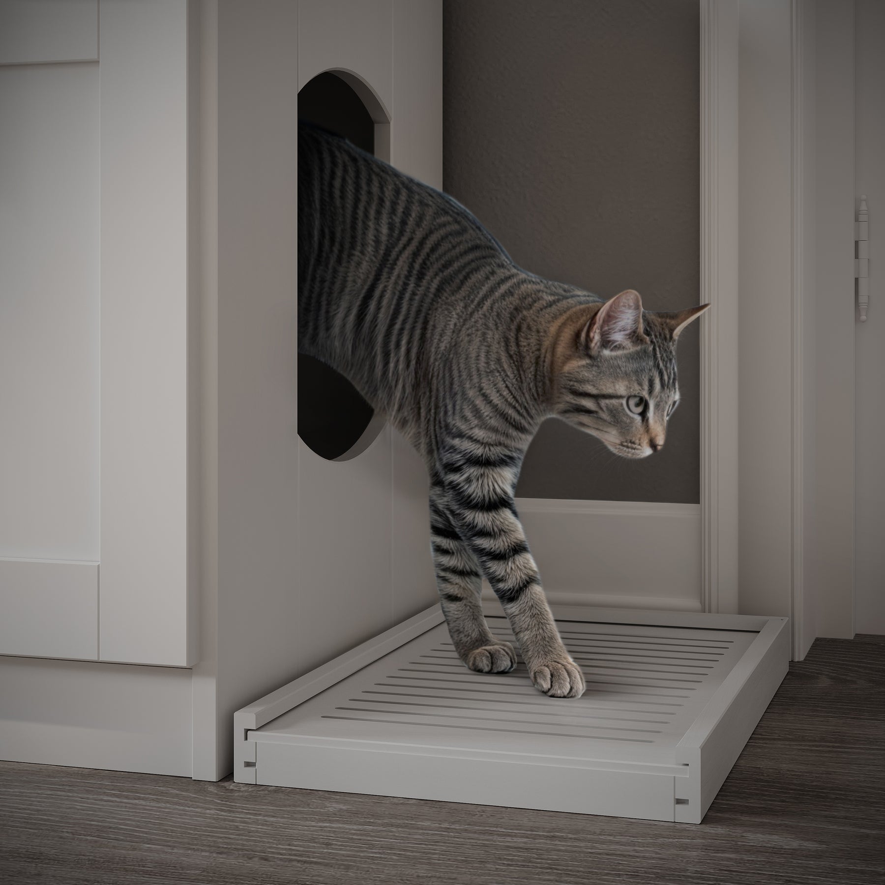 Ziva’s thoughtful, reversible design allows you to position the cat entry on either the left or right side, seamlessly fitting into any room layout. Beyond containing litter mess, the included litter catch traps debris, keeping your floors clean and pawprint-free.