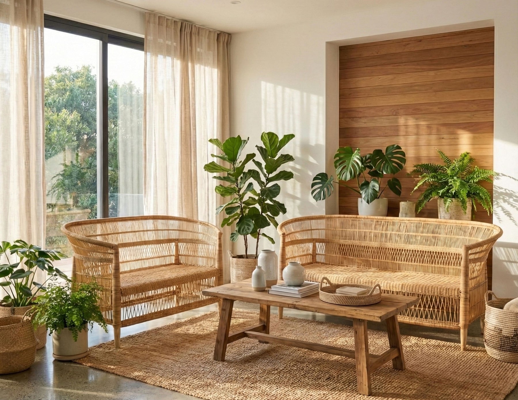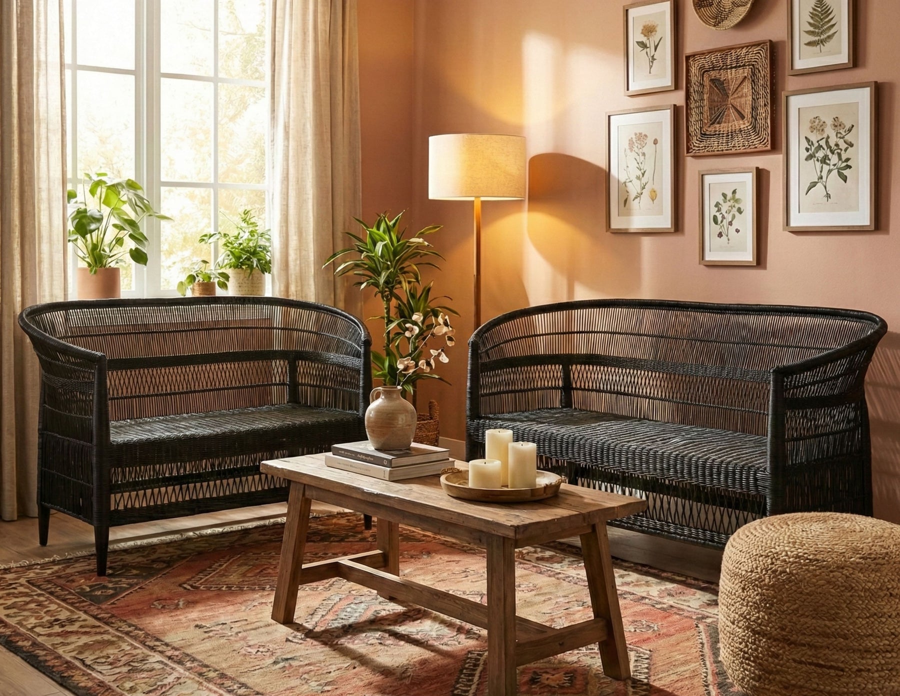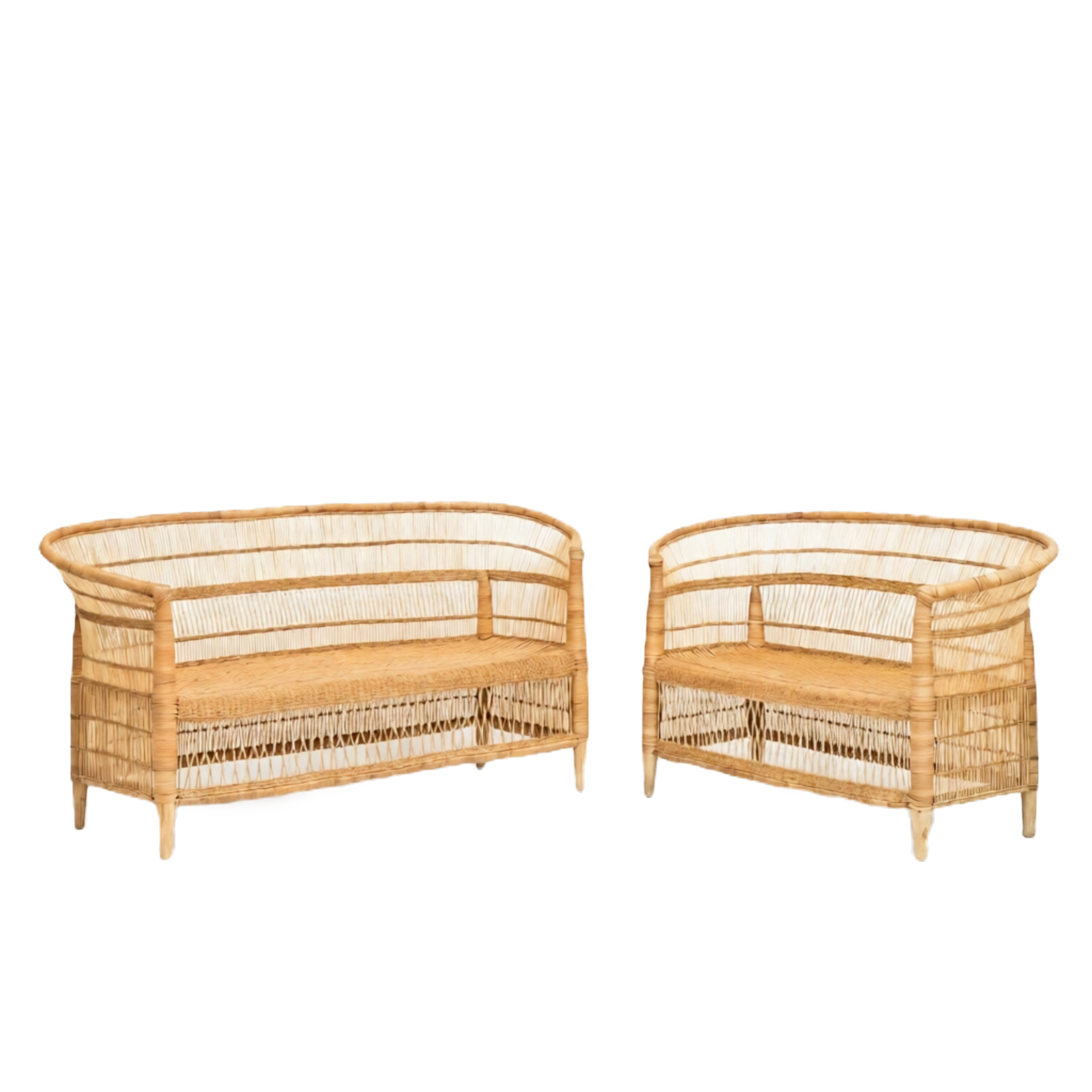 Handcrafted items — slight size variations are normal due to natural materials and artisan weaving techniques. - 2-Piece Handwoven Seating Set: Includes one Malawi Rattan Loveseat and one Malawi Rattan 3-Seater for flexible, spacious seating arrangements.
