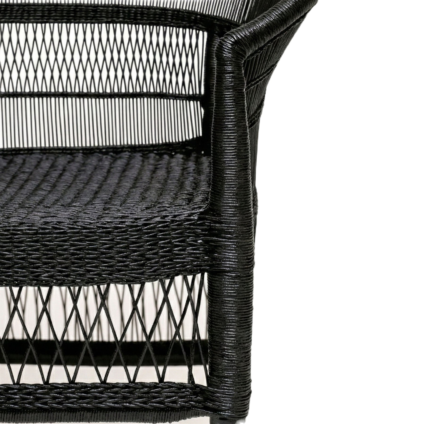 Sold as a handcrafted rattan frame only; cushion not included. The seat base measures approximately 20" wide × 17" deep and fits most seat cushions 18"–20" wide × 17"–18" deep.