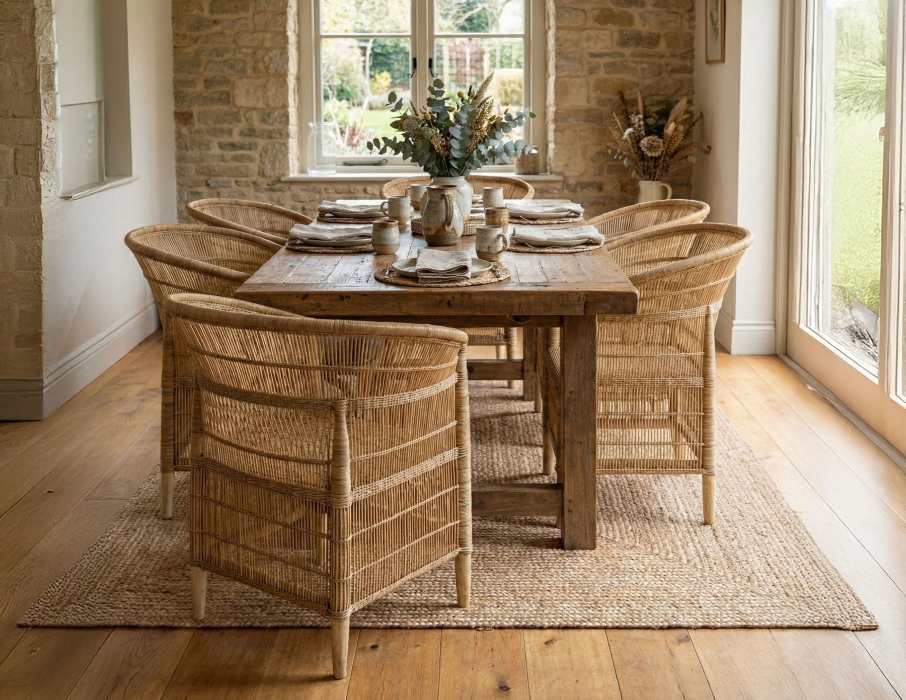 A true symbol of Malawian heritage, the timeless Malawi Rattan Chair is handwoven from natural rattan by skilled artisans. Each piece is crafted from natural rattan, palm leaves, and sustainably sourced Bluegum hardwood, creating seating that is lightweight, durable, and eco-friendly.