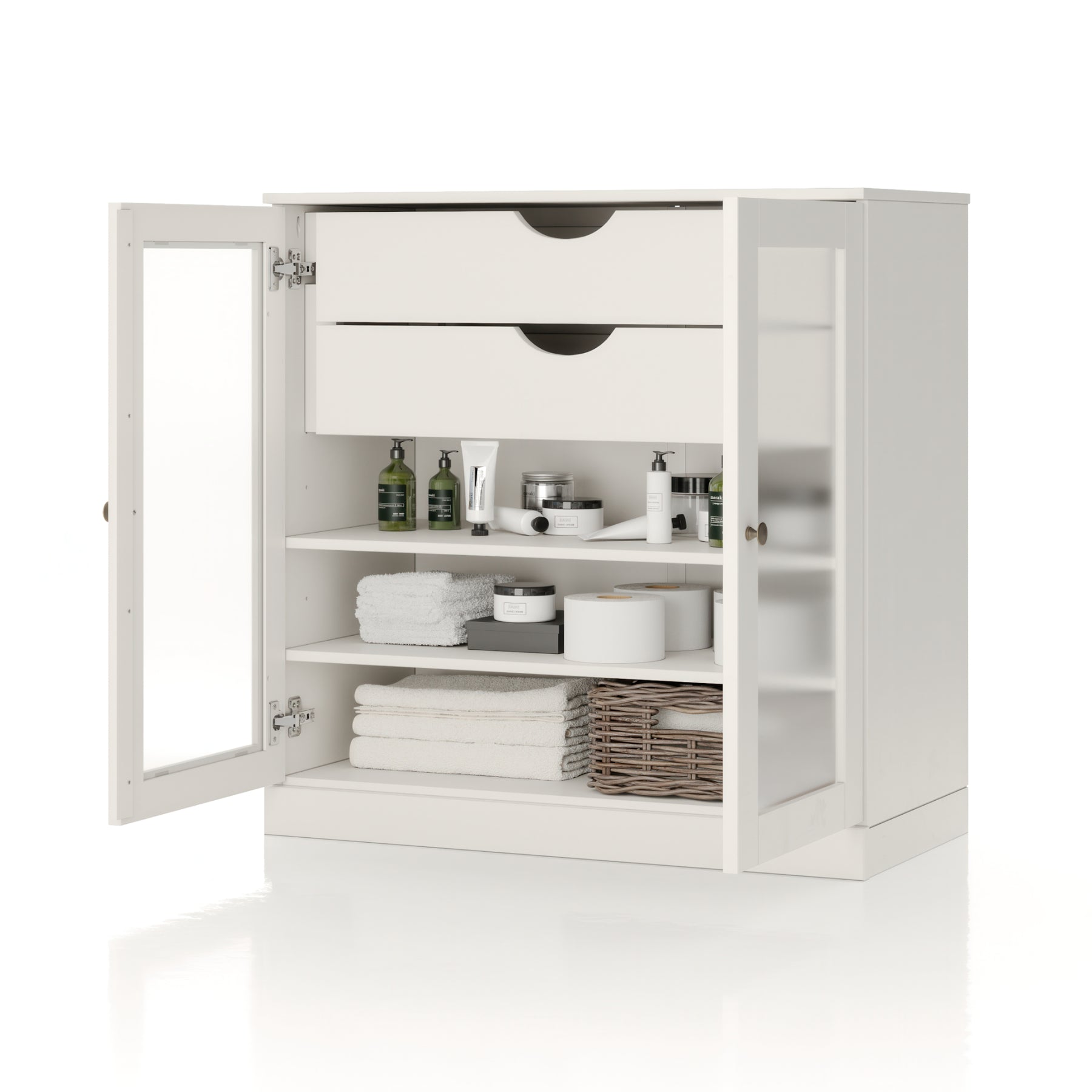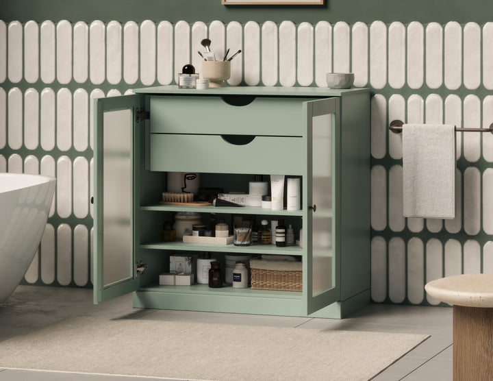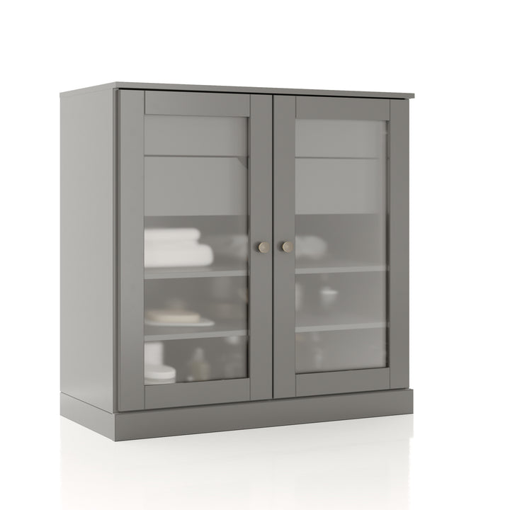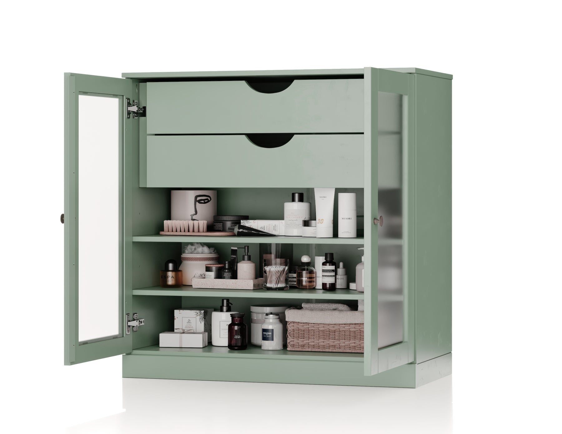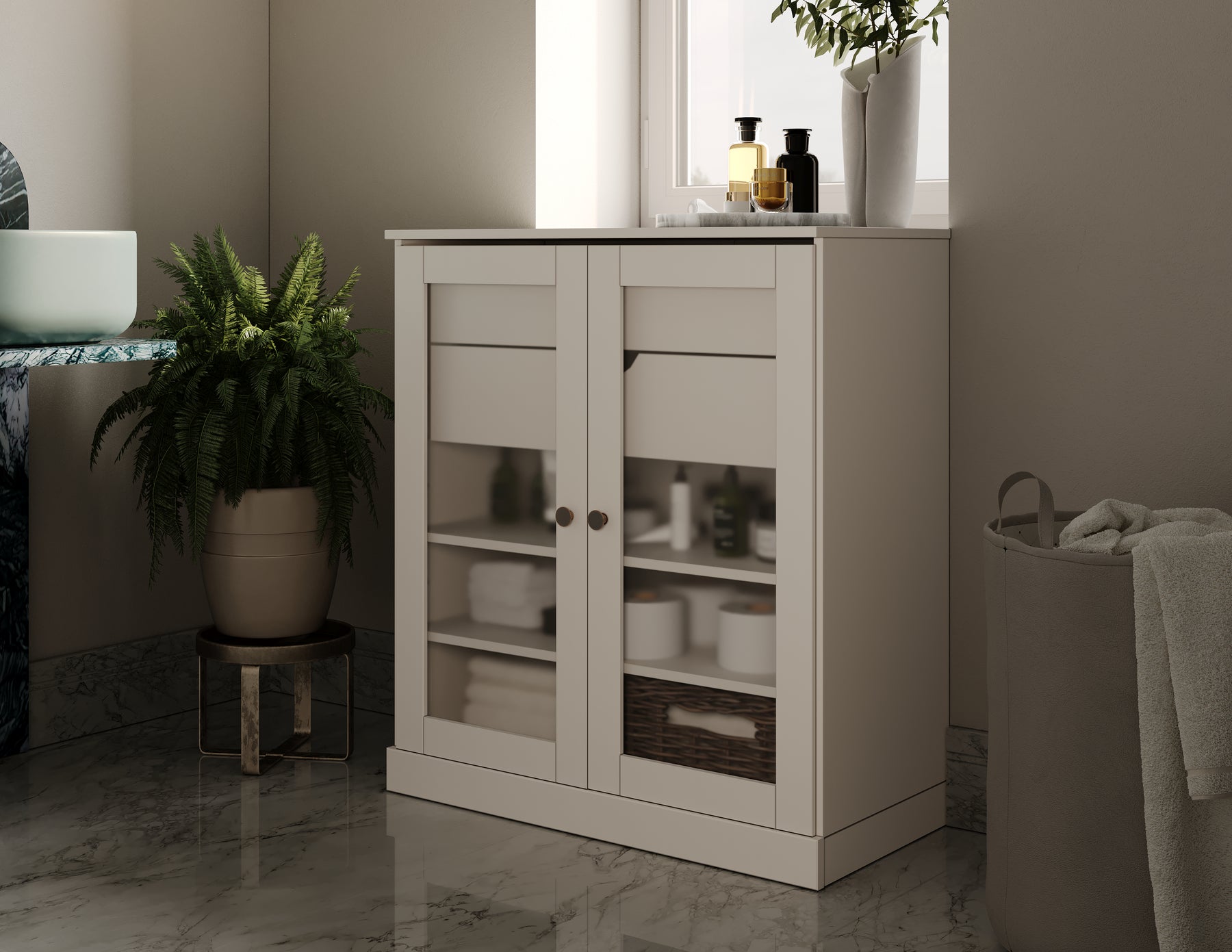 Enhance your bathroom with our 32" wide cabinet, expertly crafted from 100% solid wood in Brazil. This versatile cabinet offers adjustable shelves, providing ample space for items of varying sizes while allowing you to personalize your storage. The frosted glass doors lend a sophisticated touch, making this cabinet ideal for use in the bathroom, as a bookcase, storage cabinet, display unit, or even a shoe rack. For a more personalized look, interchangeable doors are available separately in frosted glass, clear glass, or solid wood—perfect for keeping your belongings discreetly tucked away. With its perfect balance of elegance and durability, this cabinet is designed to elevate both the style and functionality of your space.