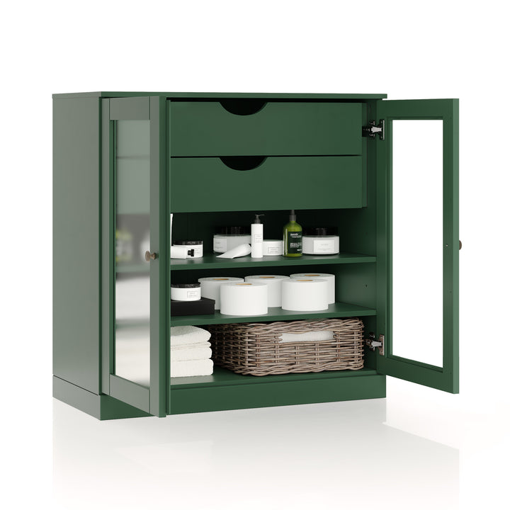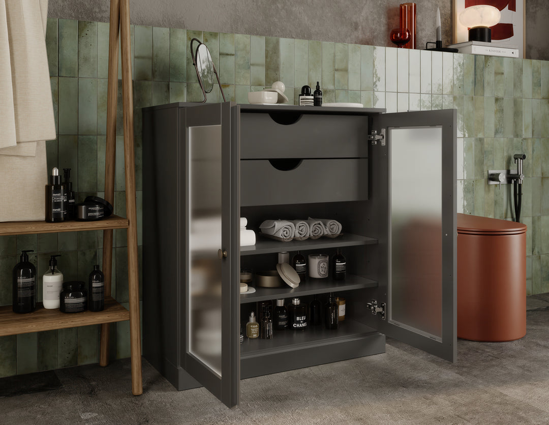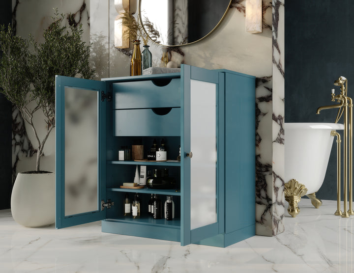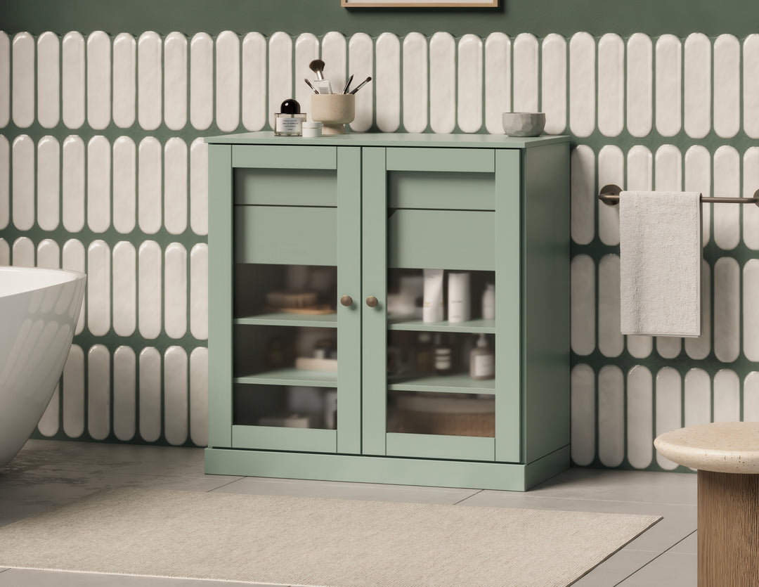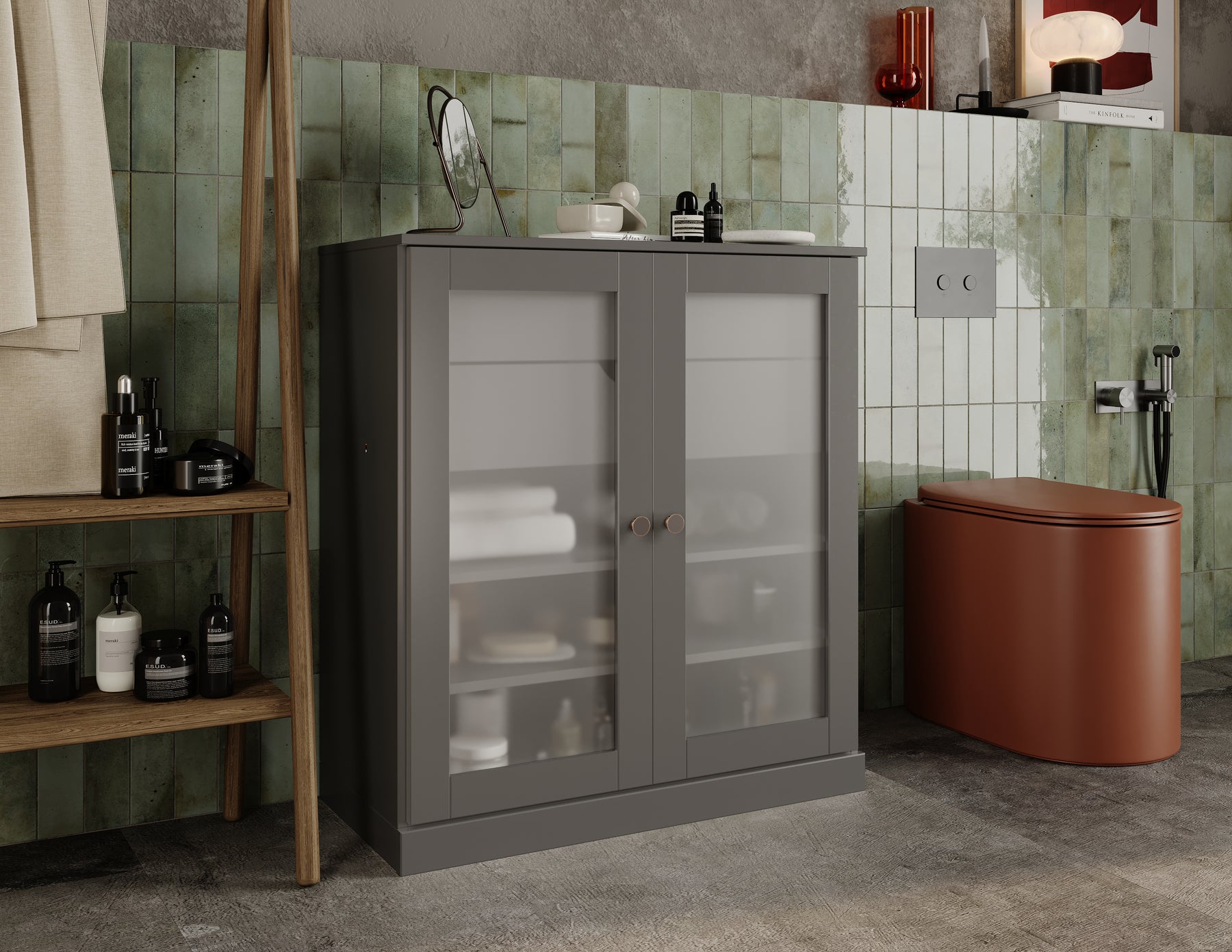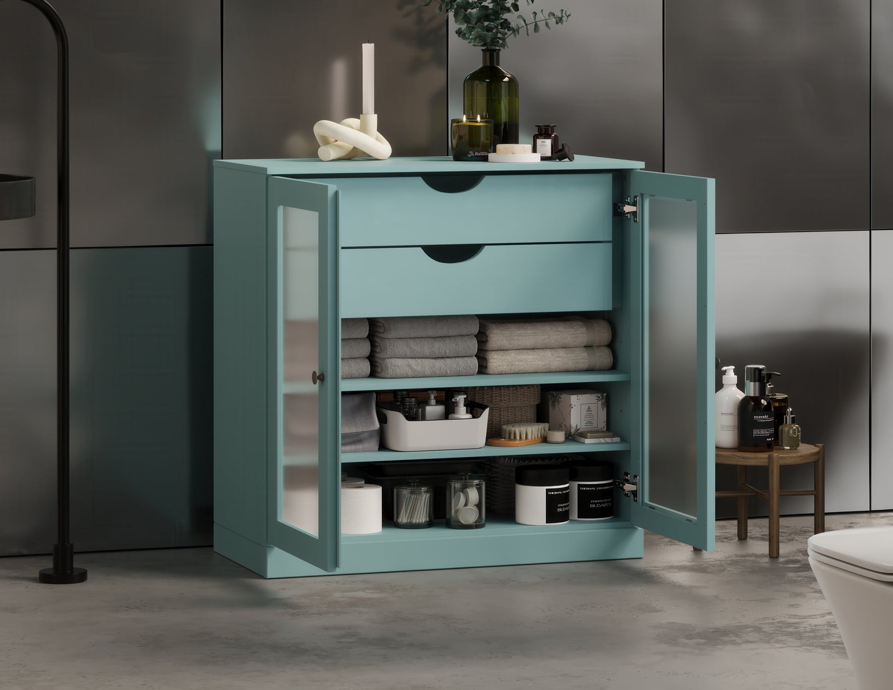Enhance your bathroom with our 32" wide cabinet, expertly crafted from 100% solid wood in Brazil. This versatile cabinet offers adjustable shelves, providing ample space for items of varying sizes while allowing you to personalize your storage. The frosted glass doors lend a sophisticated touch, making this cabinet ideal for use in the bathroom, as a bookcase, storage cabinet, display unit, or even a shoe rack. For a more personalized look, interchangeable doors are available separately in frosted glass, clear glass, or solid wood—perfect for keeping your belongings discreetly tucked away. With its perfect balance of elegance and durability, this cabinet is designed to elevate both the style and functionality of your space.