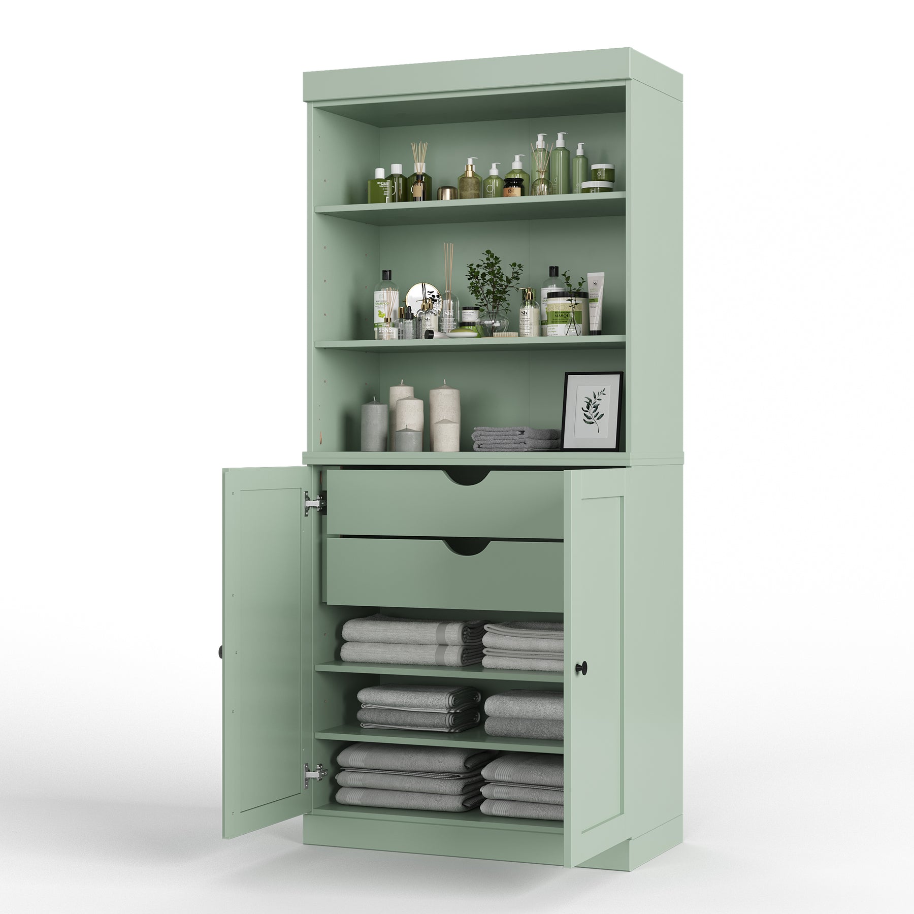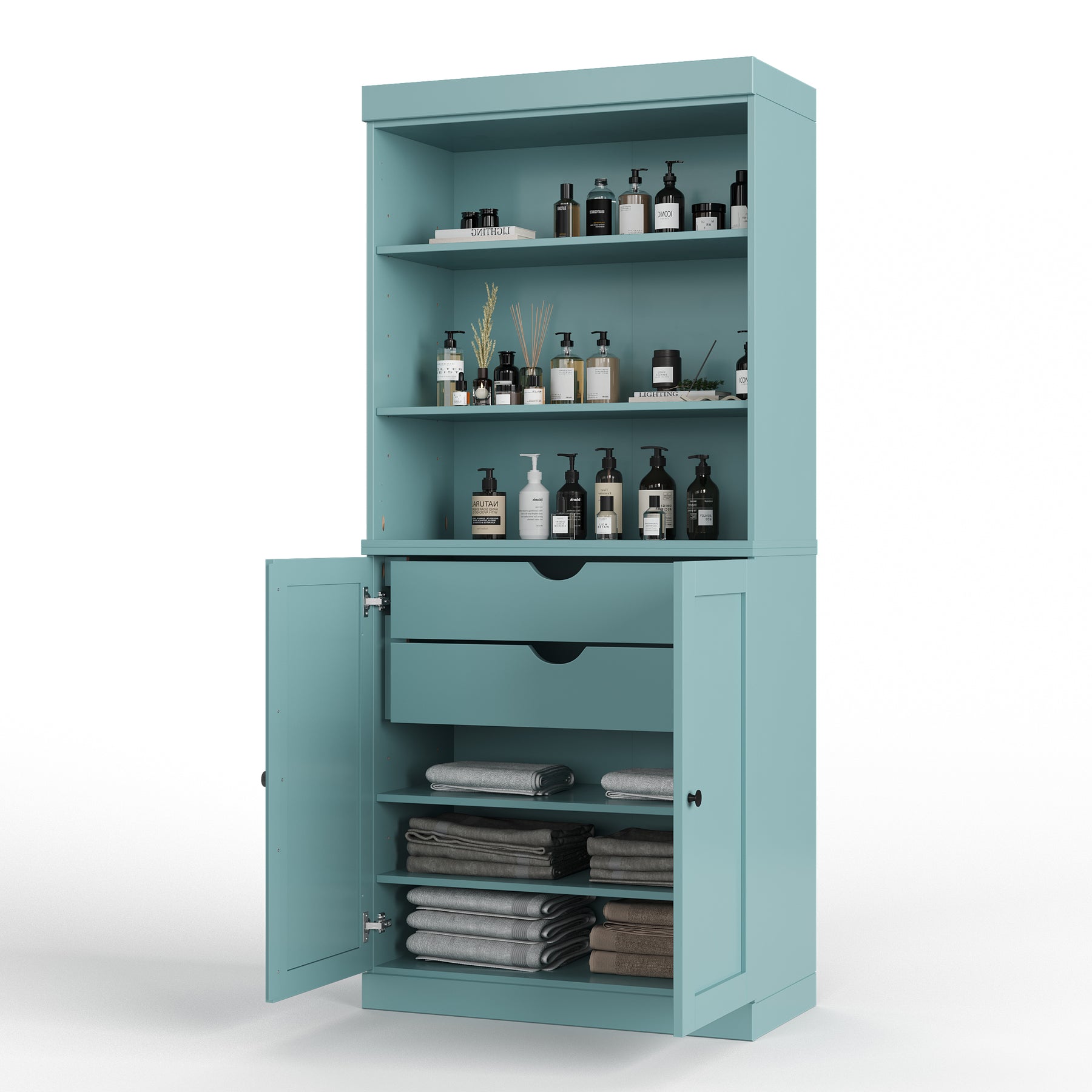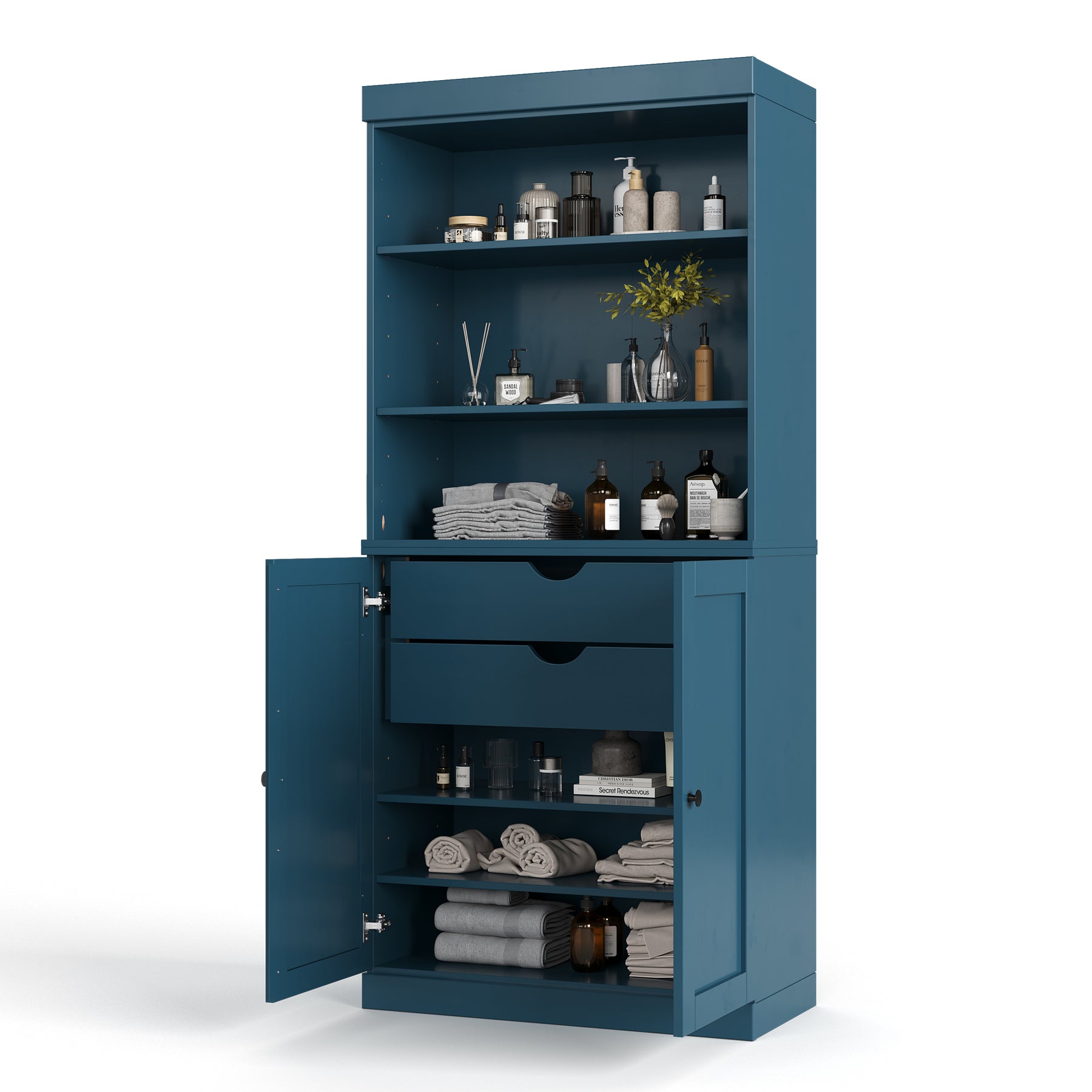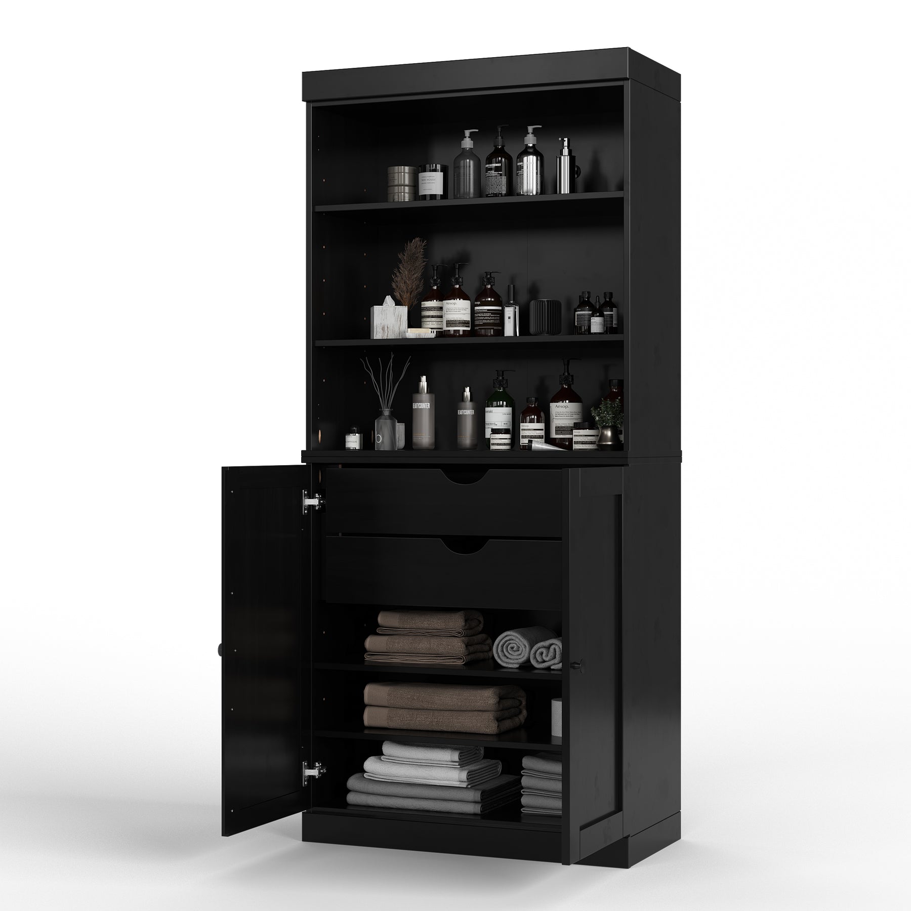 100% Solid Wood 32" Bathroom Cabinet with Shelves, Shaker Wood Doors, 2-Drawers