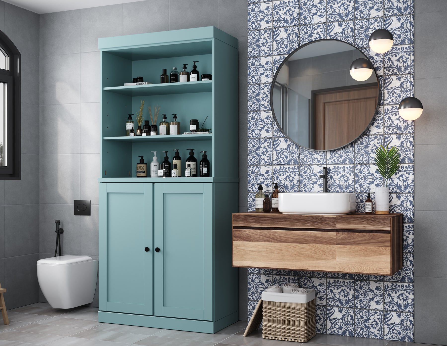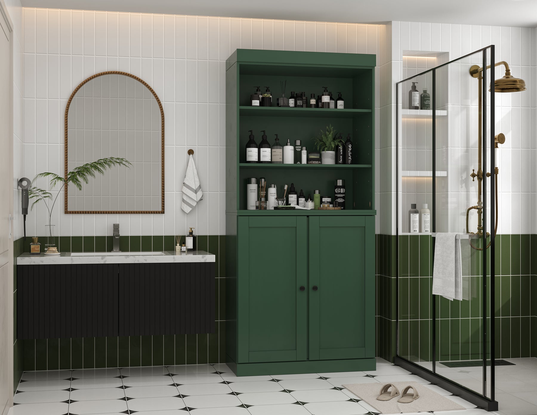 Elevate your bathroom with our 32" wide cabinet, meticulously crafted from 100% solid wood in Brazil. This elegant and practical piece features adjustable shelves, allowing you to organize items of varying sizes and tailor the display to your needs. For smaller, loose items, a 2-drawer organizer is included, and additional optional organizers can be installed within the same unit for added versatility. The solid wood doors provide a sleek solution to keep your essentials neatly tucked away, with additional interchangeable door options sold separately. Opt for clear glass doors to showcase your collection, frosted glass for a contemporary flair, or solid wood for a timeless appeal. Combining sophistication and durability, this cabinet is designed to enhance both the style and functionality of your space.