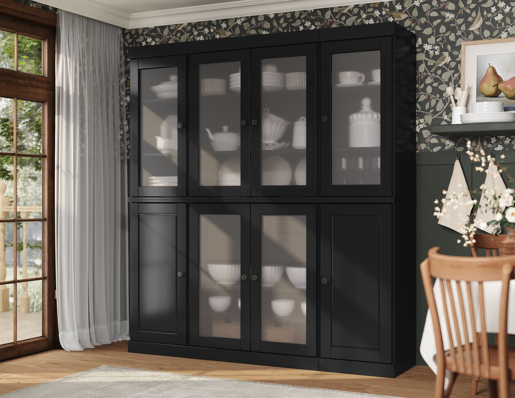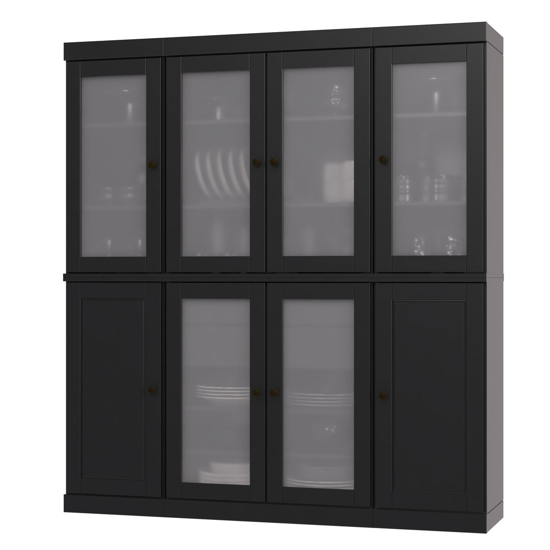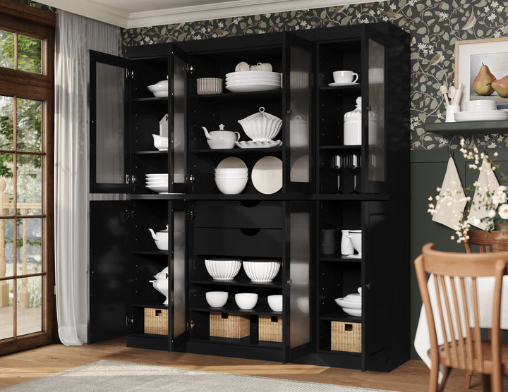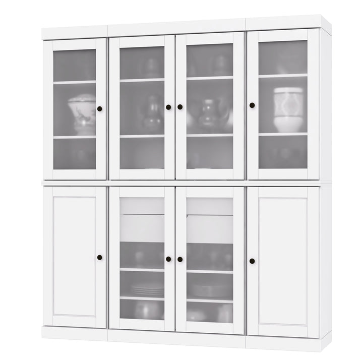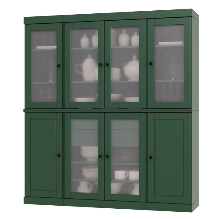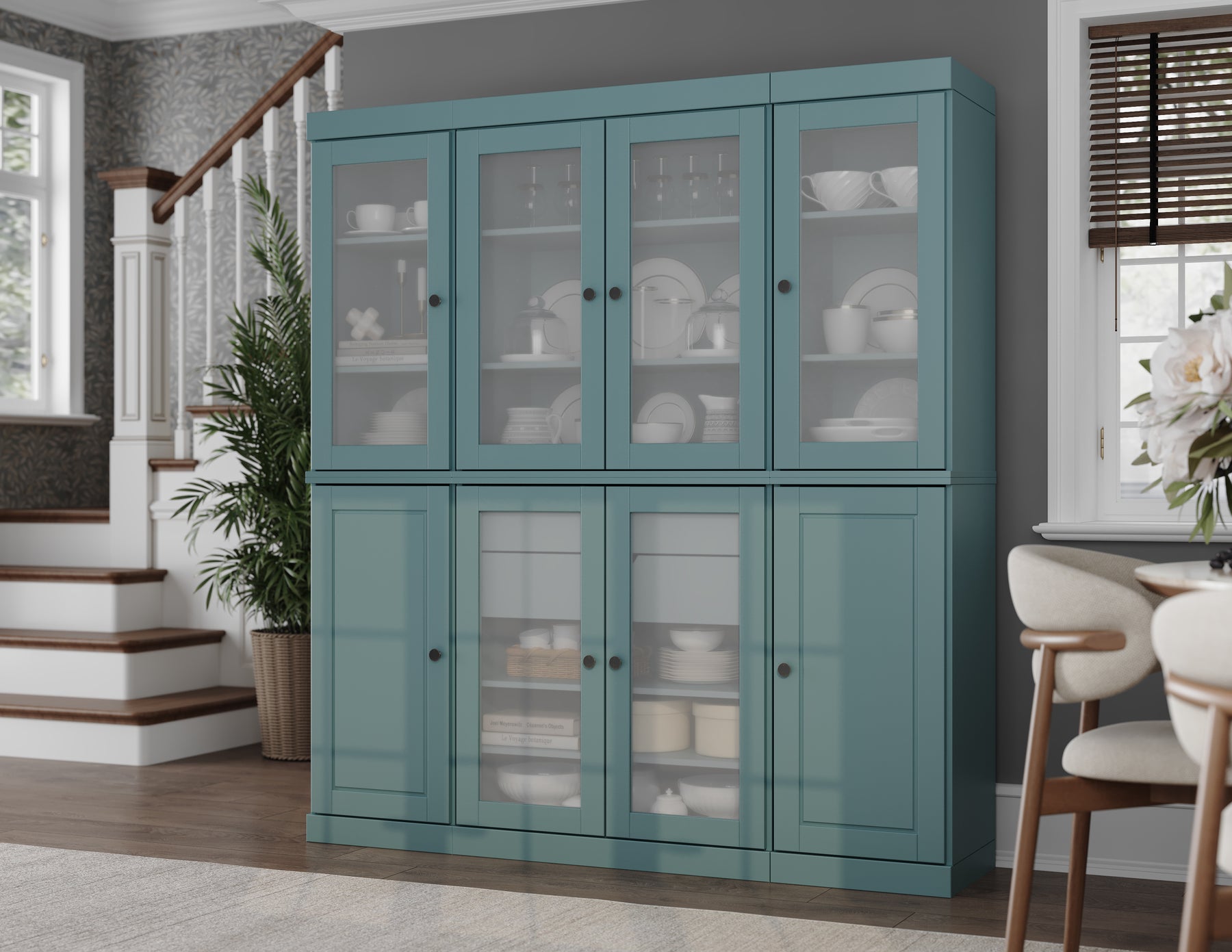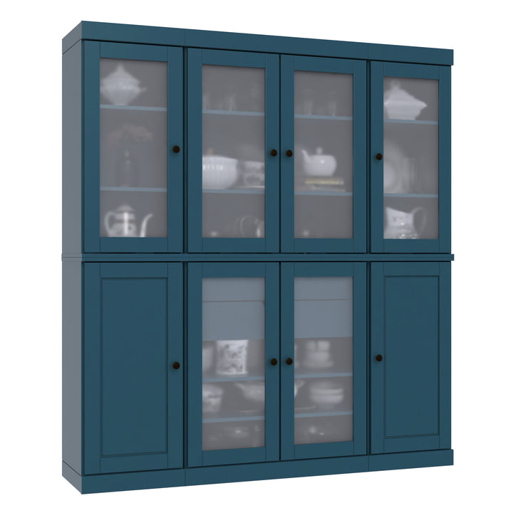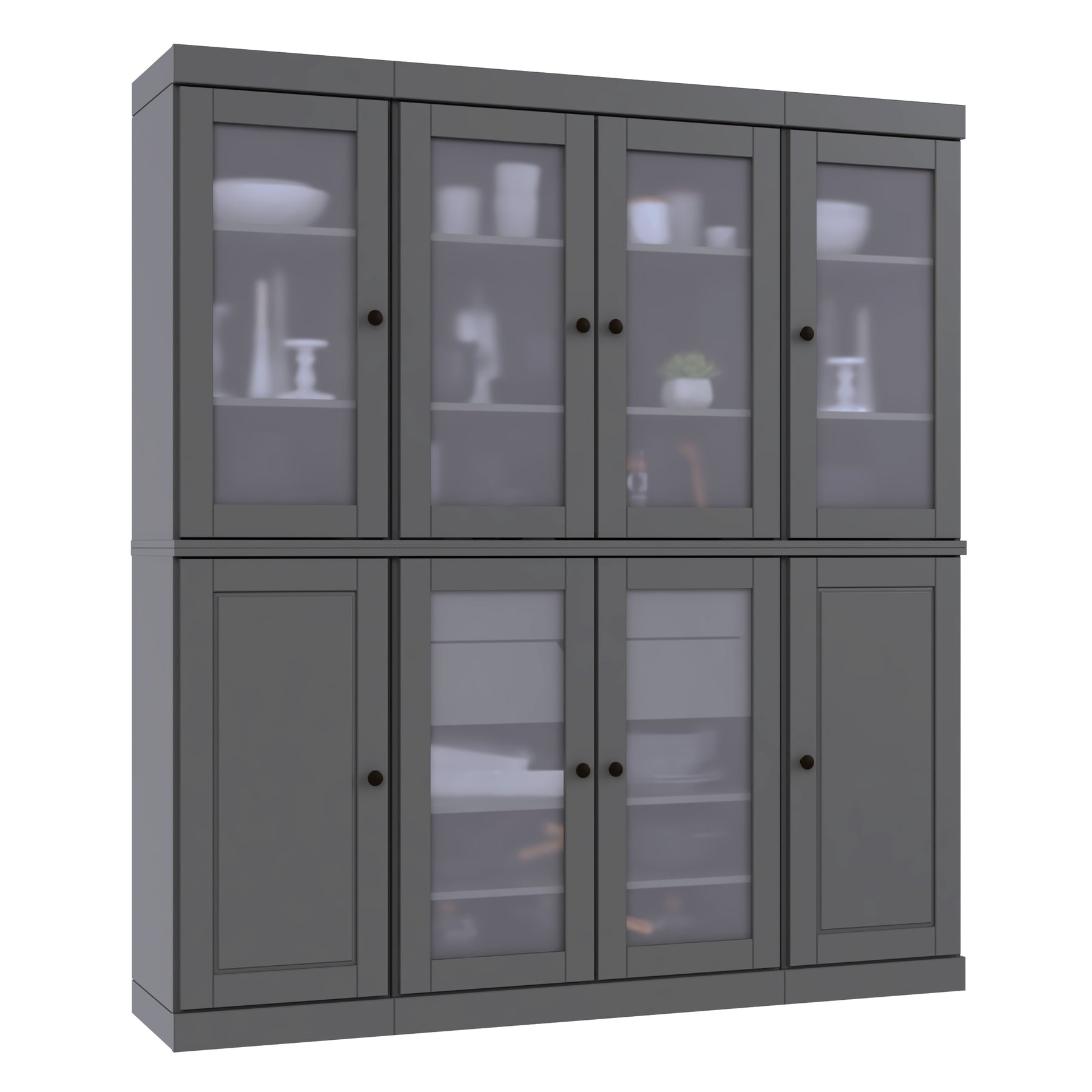 This 100% solid wood 65"‐wide pantry is a perfect solution to your kitchen storage needs! Within easy reach and with 4 large and 8 small adjustable shelves it will allow you to store multiple items regardless of their size. Frosted glass doors will showcase your wares while the raised panel solid wood doors will make your pantry look stately no matter an occasional clutter. A 2-drawer organizer is included and is perfect for the smaller loose items. More than one kit can be installed in the same unit. Get this Made in Brazil pantry today to make your kitchen sparkle!