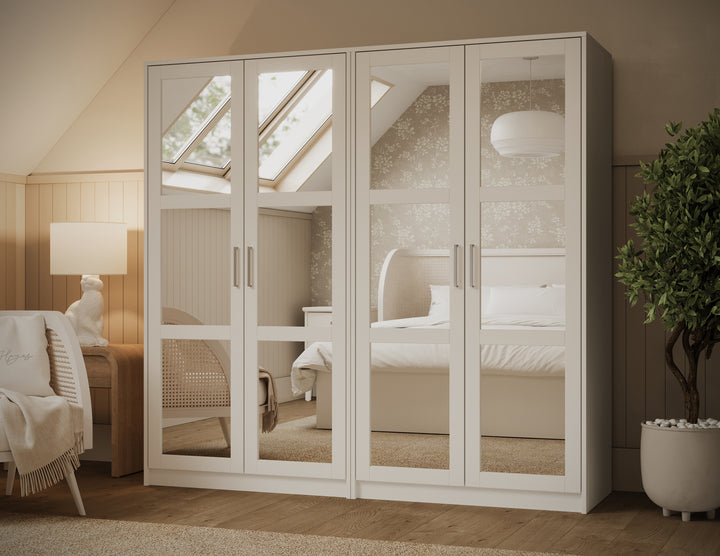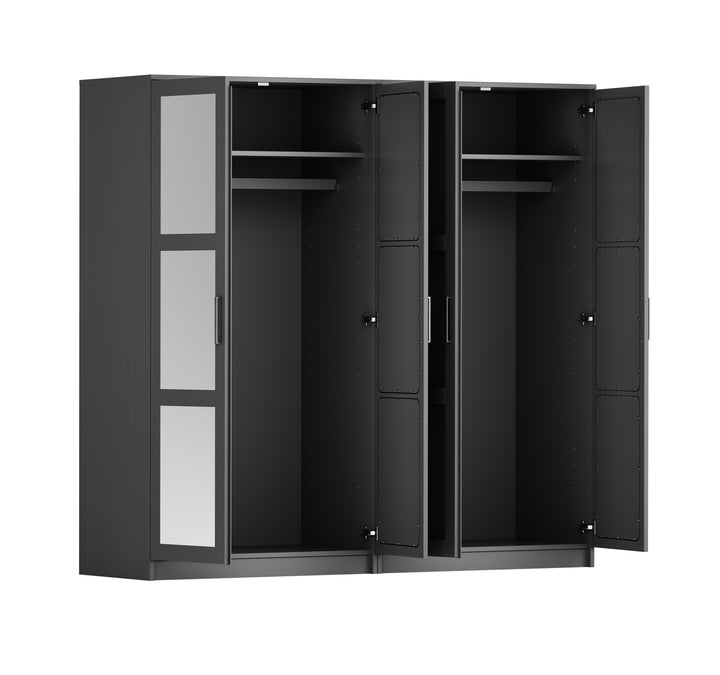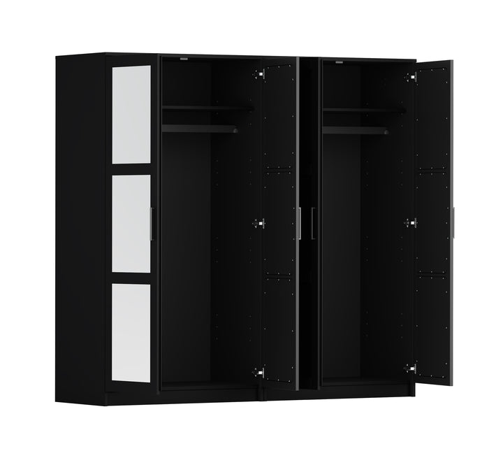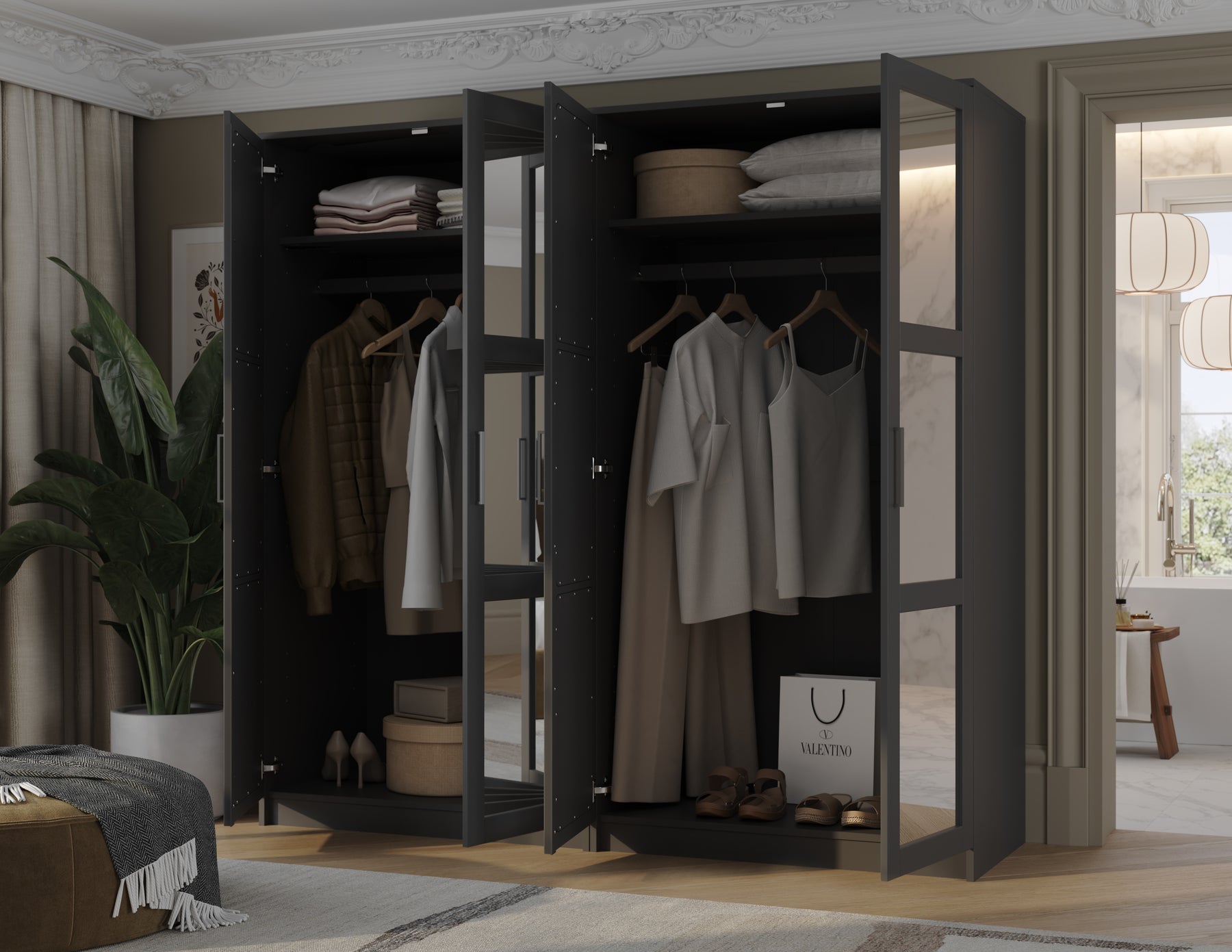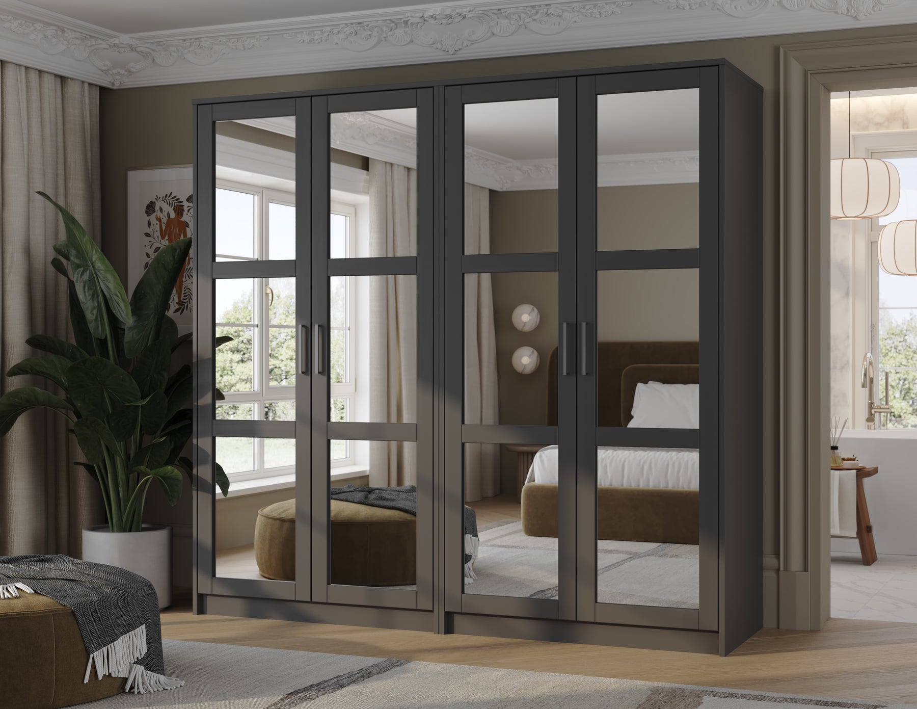 100% Solid Wood Urban 4-Door Wardrobe Armoire, Mirrored Doors
