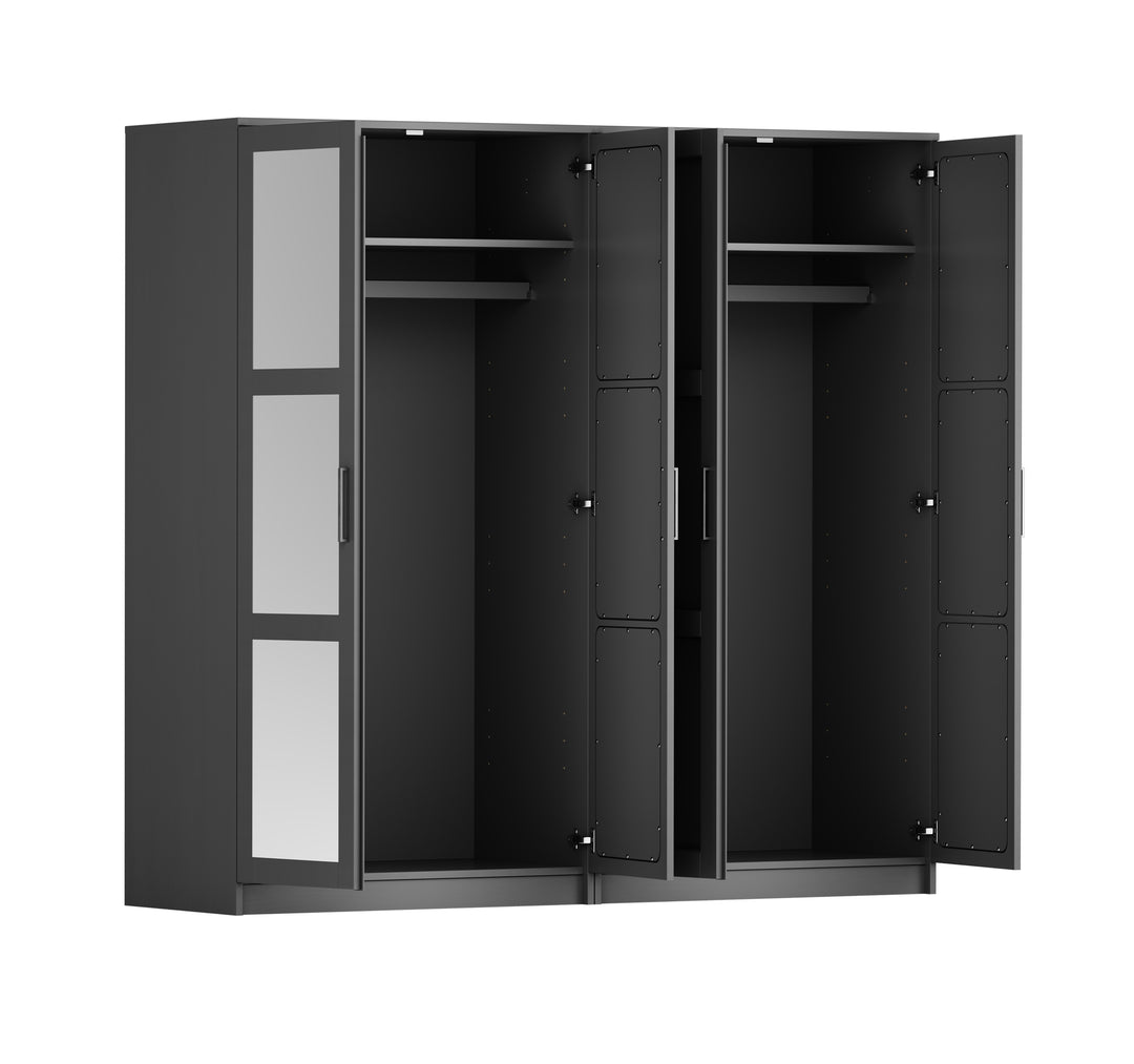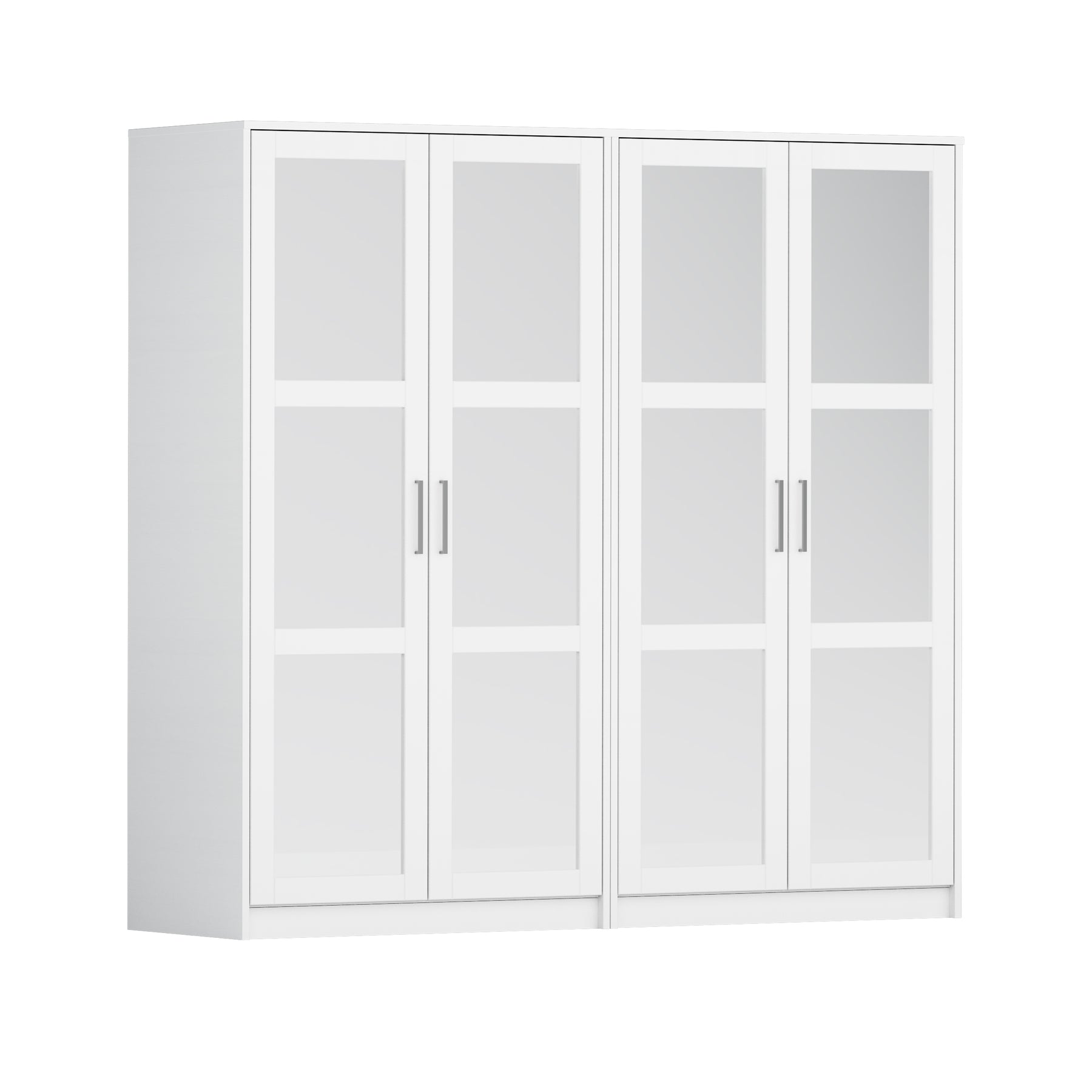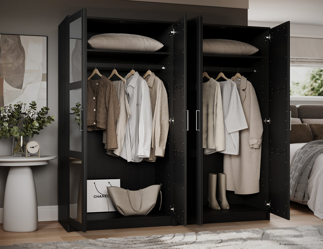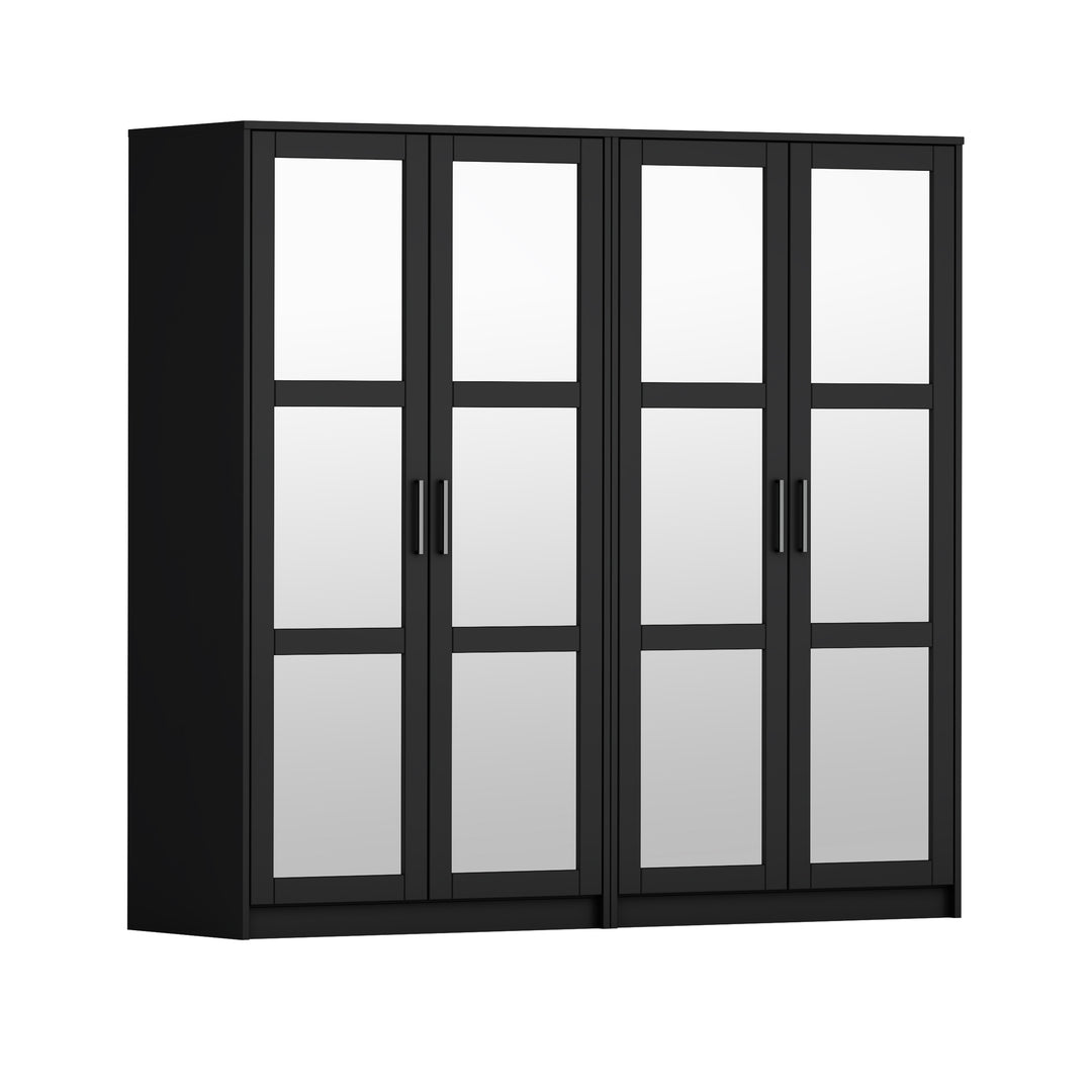 100% Solid Wood Urban 4-Door Wardrobe Armoire, Mirrored Doors