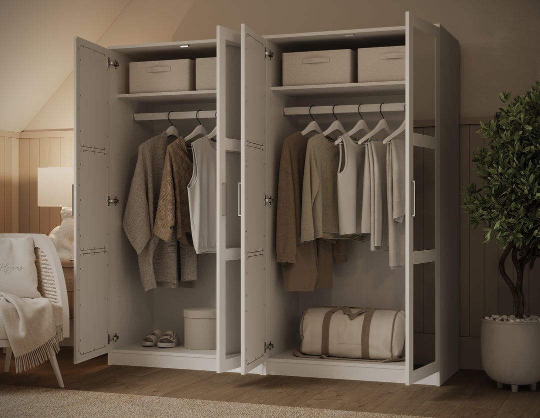 • Modular design allows multiple 2-, 3-, and 4-door Urban wardrobes to be seamlessly combined to create a closet wall system