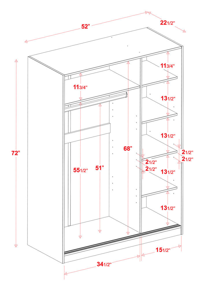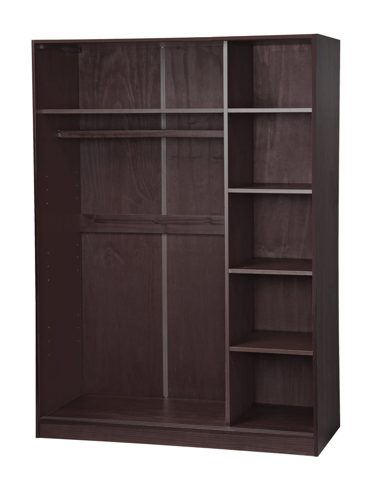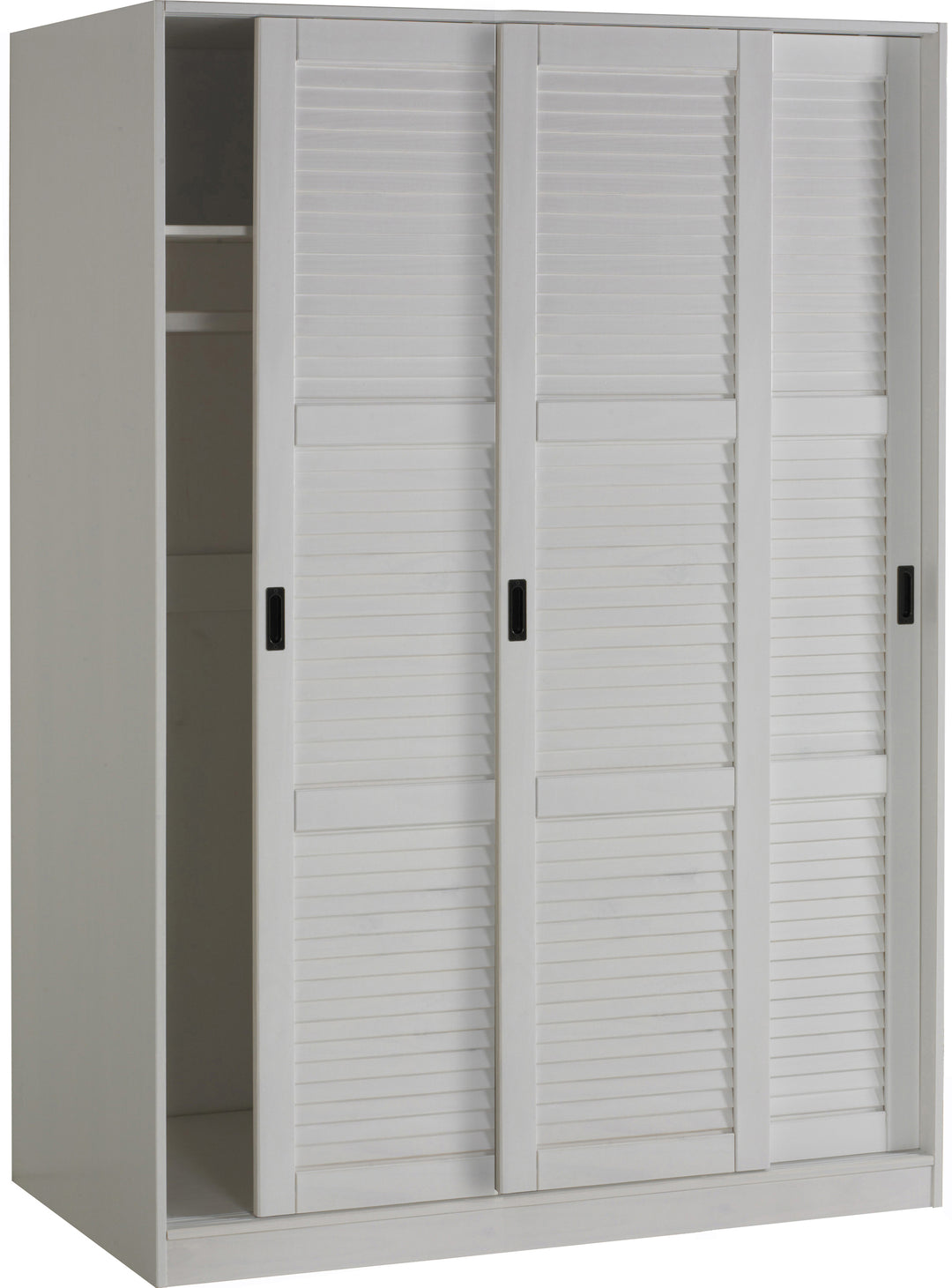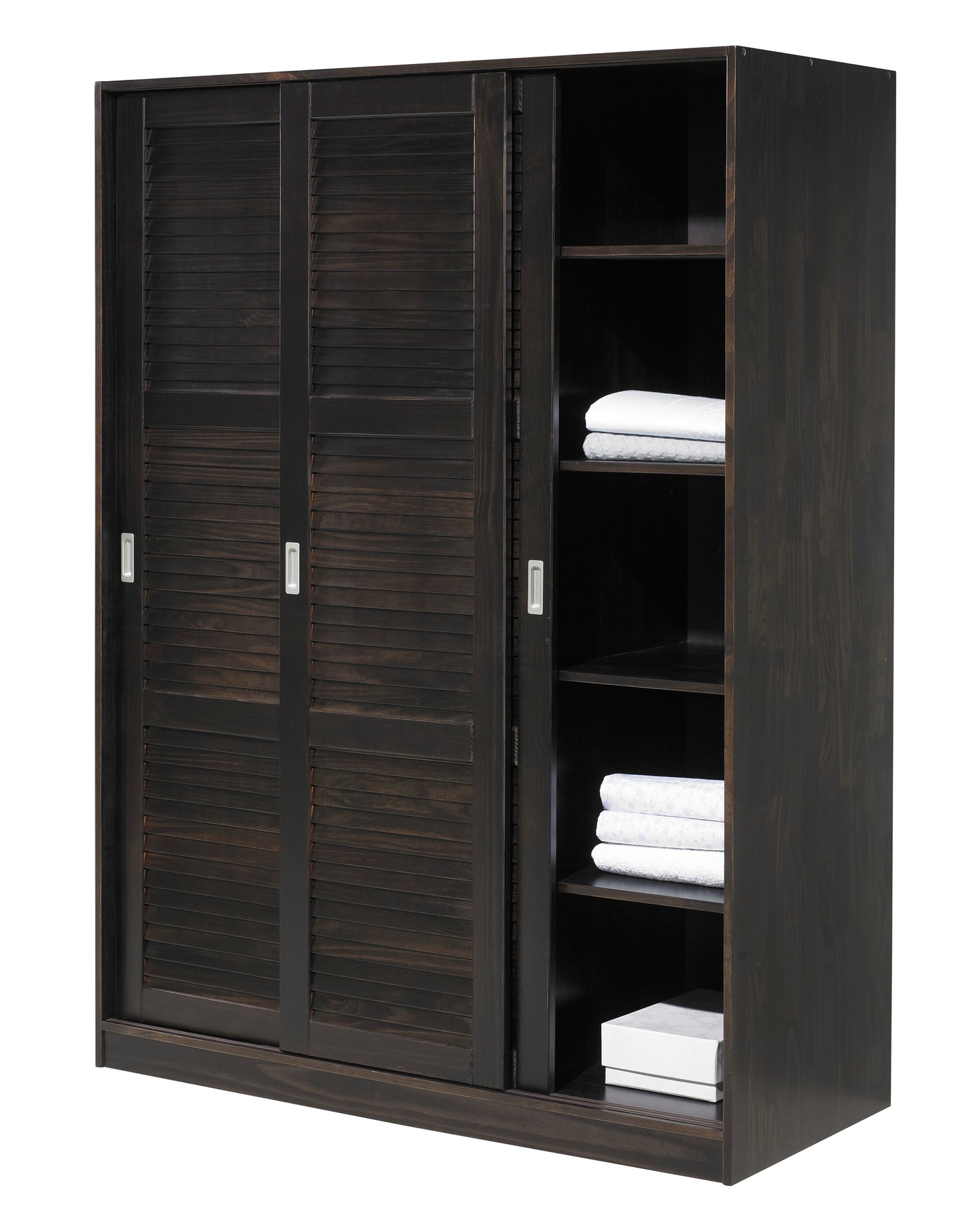Big storage in a small footprint. The 3‐sliding door wardrobe is a beautiful way to tame clutter in a small area. The convenient‚ space saving sliding doors allow you to organize where other wardrobes can't. You can increase the storage capacity and versatility with up to 3 additional shelves (sold separately). The 3‐sliding door wardrobe is cleverly designed with the tops flush with the side panels‚ allowing this solid wood 52" wardrobe to be combined with a matching 36" wardrobe making a continuous wardrobe limited only by your space and imagination.
