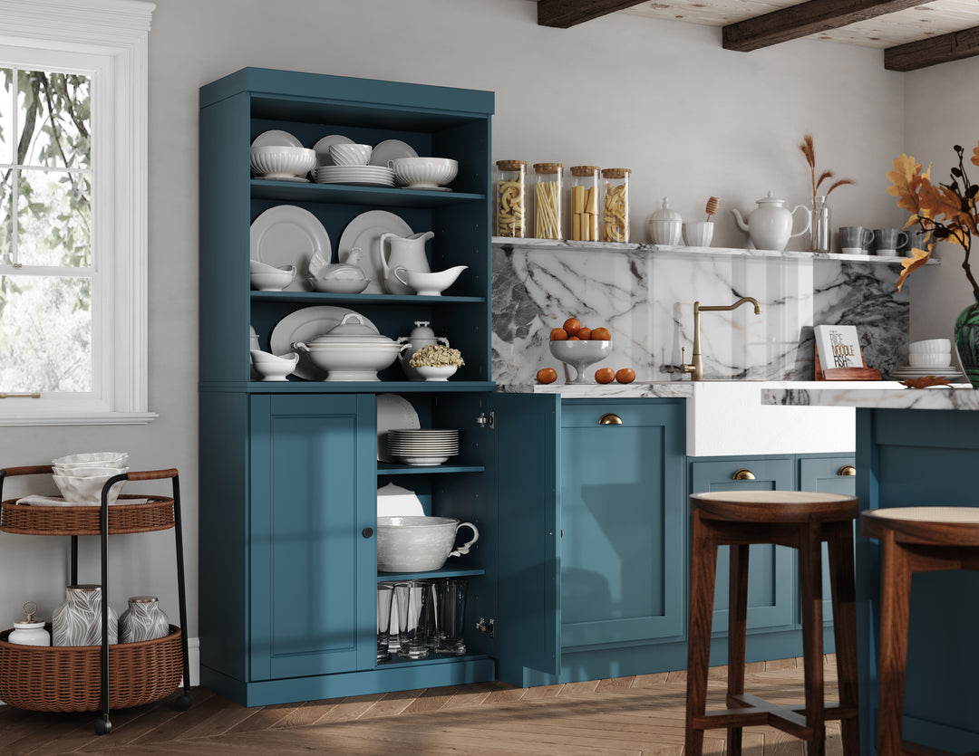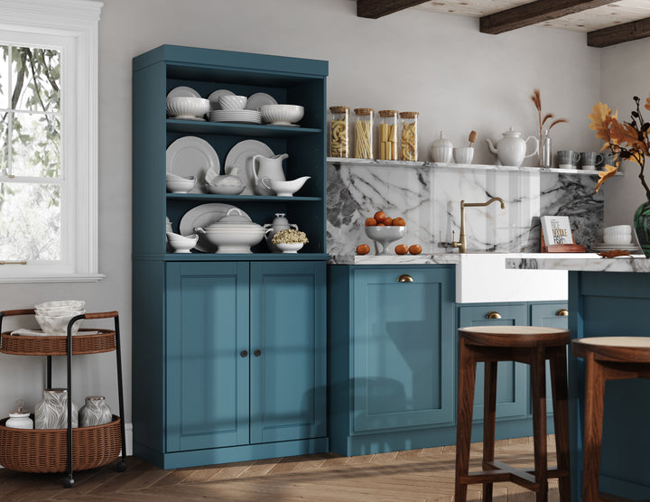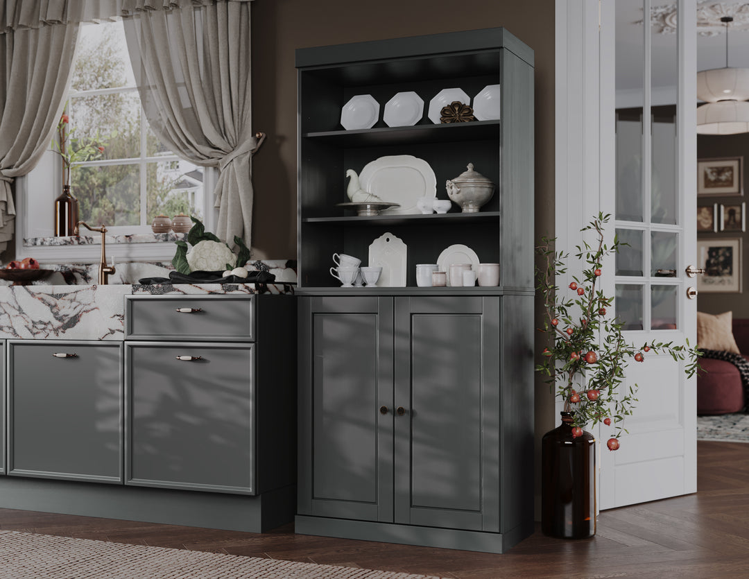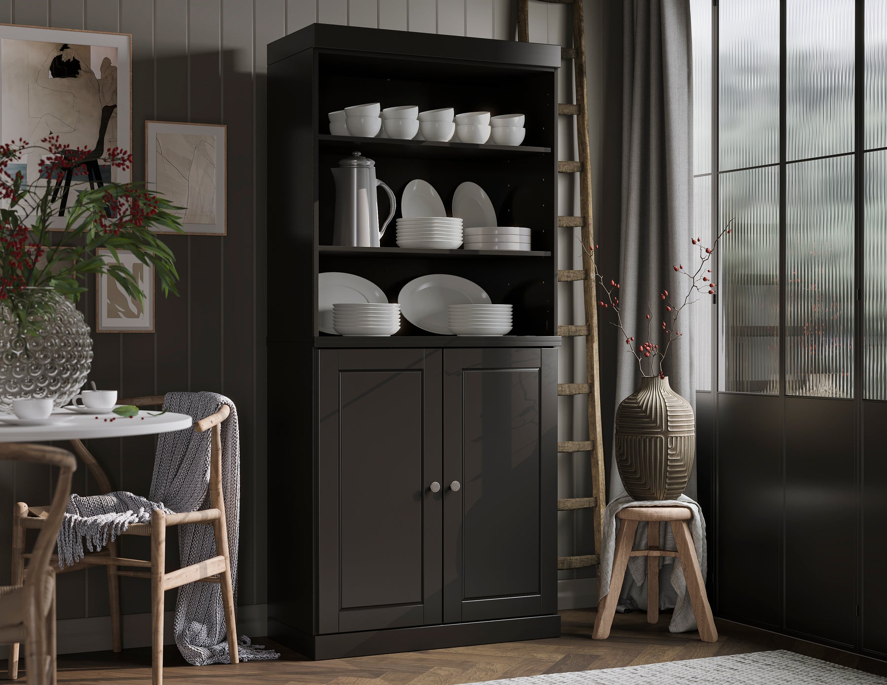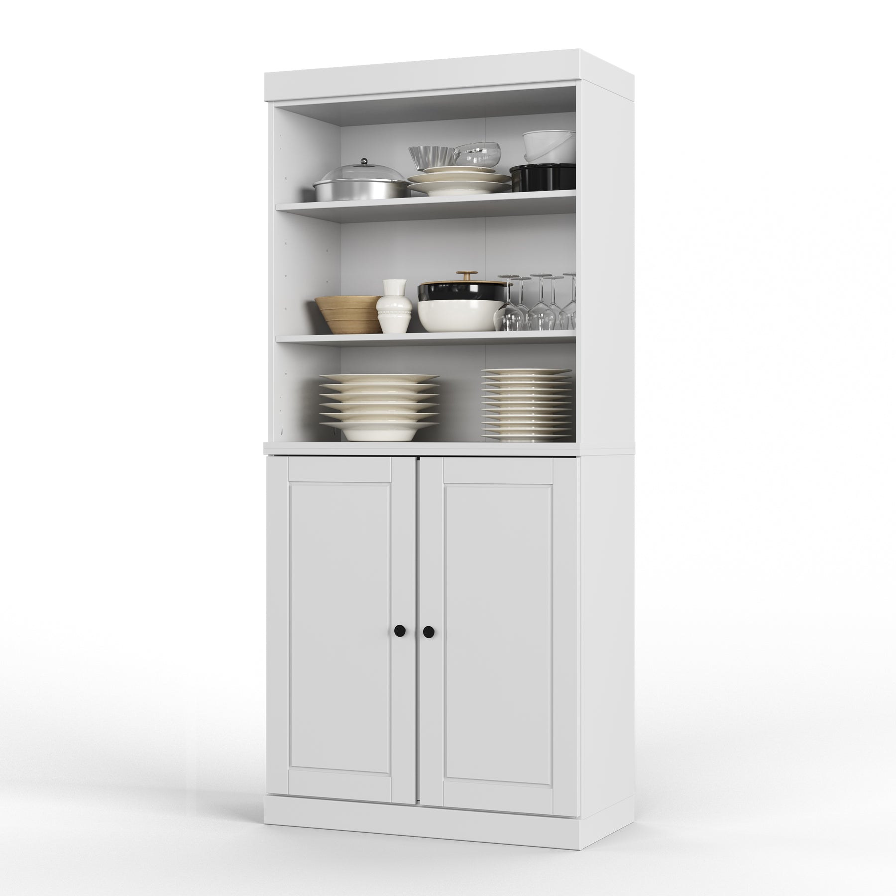 Crafted from premium solid wood, this pantry exudes natural beauty and sturdiness, bringing warmth and charm to your kitchen. Its thoughtful design includes four adjustable shelves, easily tailored to accommodate your storage needs, from pantry staples to taller kitchen essentials. Need even more space? Add extra shelves as your collection grows. Select from clear glass doors for an elegant showcase, frosted glass for subtle sophistication, or raised panel wood doors for a classic, concealed look.