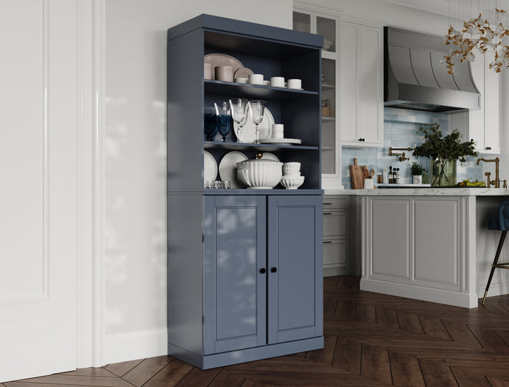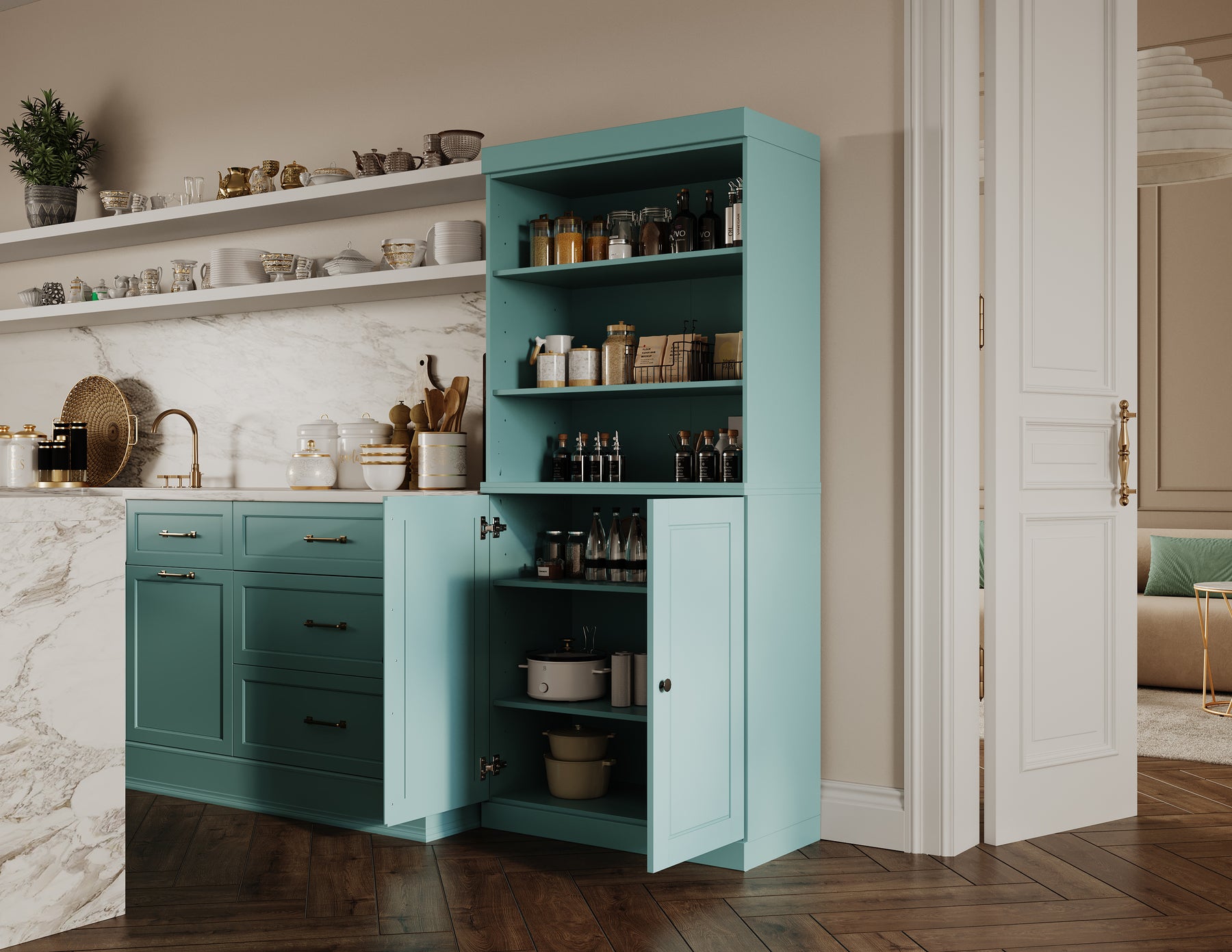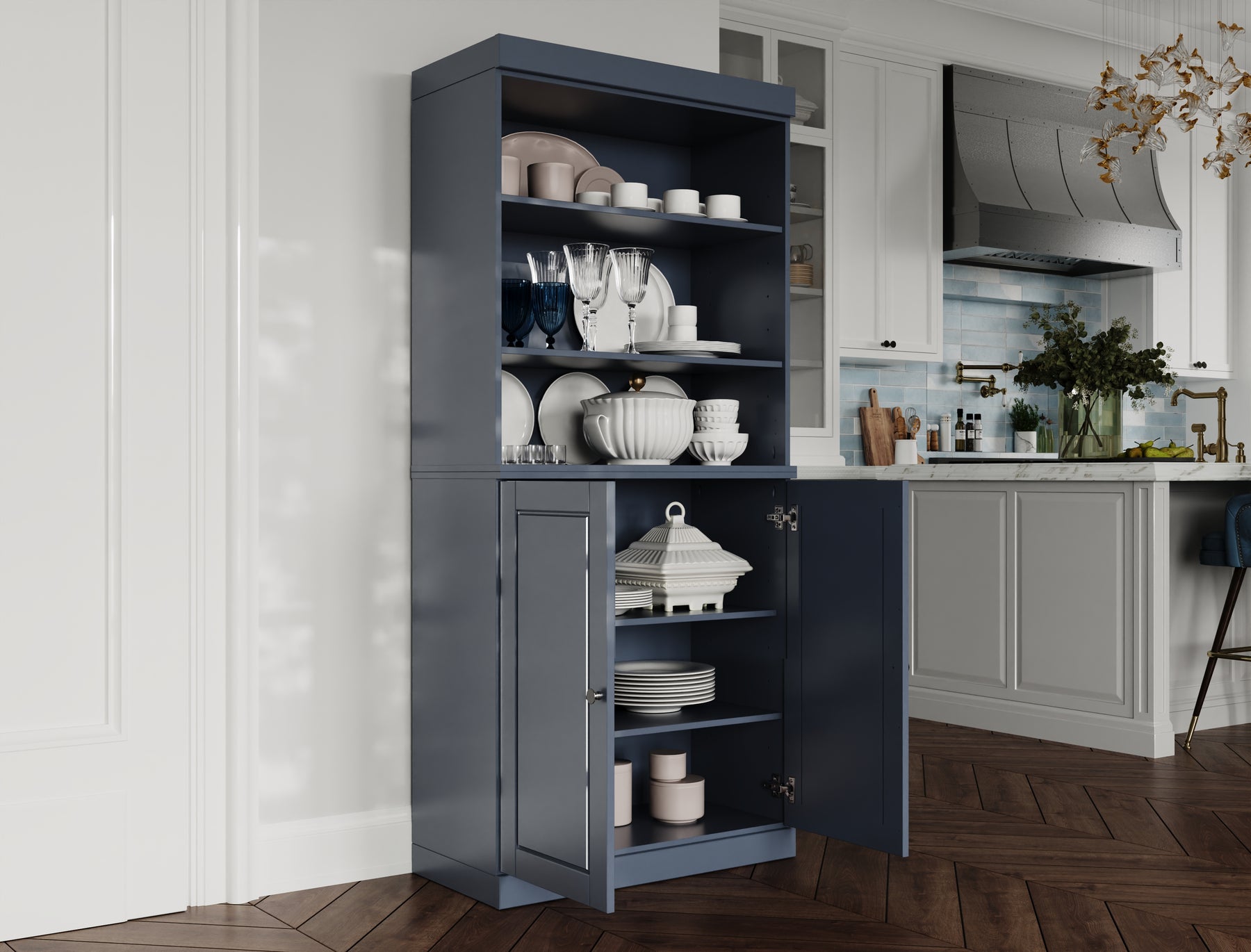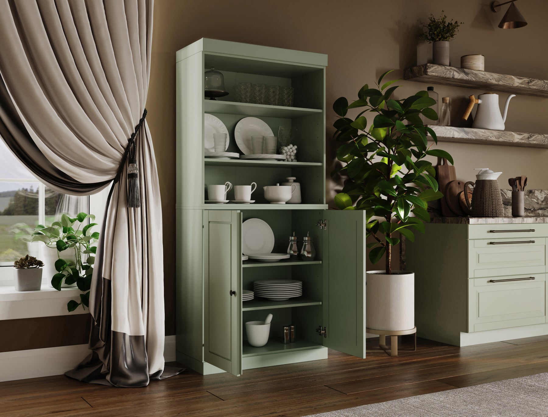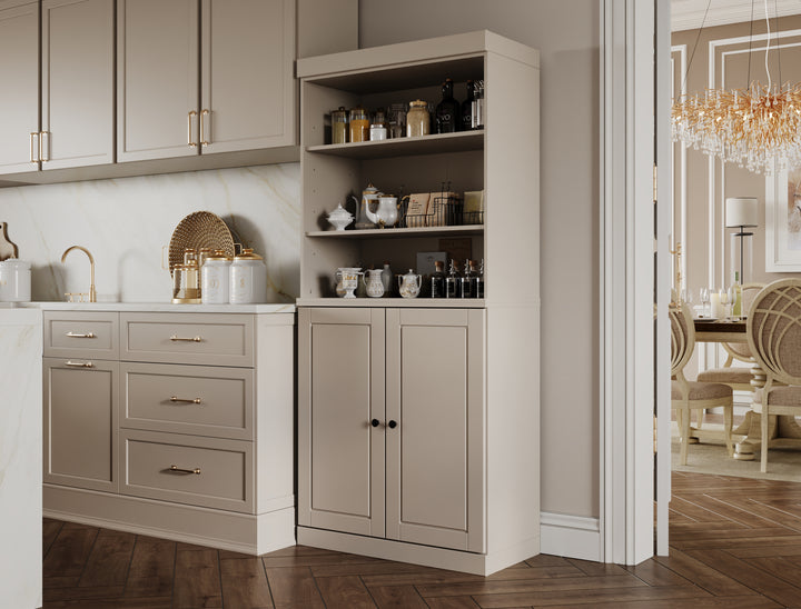 Elevate your kitchen's style and functionality with our 100% solid wood 2-door 32"-wide modular kitchen pantry cabinet—a seamless fusion of timeless design, exceptional durability, and unmatched versatility.