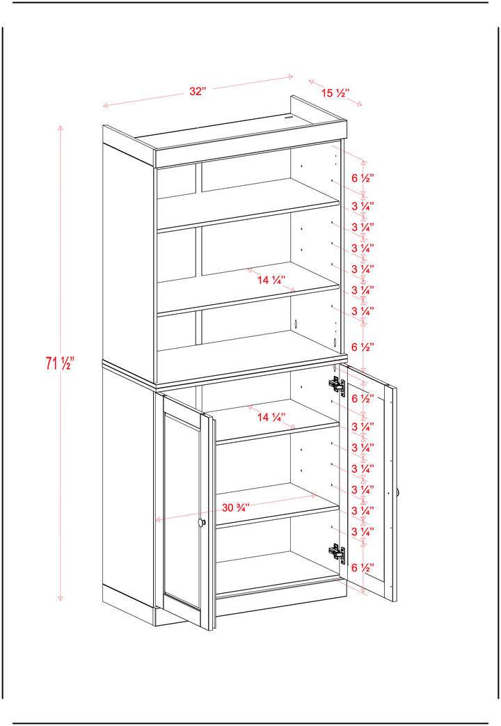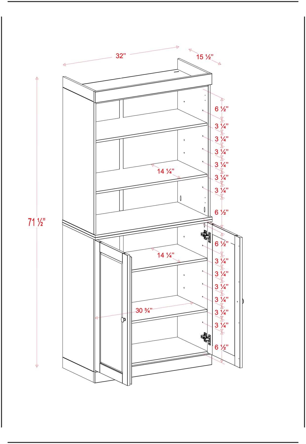 - Overall Dimensions: 32" W x 71.5" H x 15.5" D.