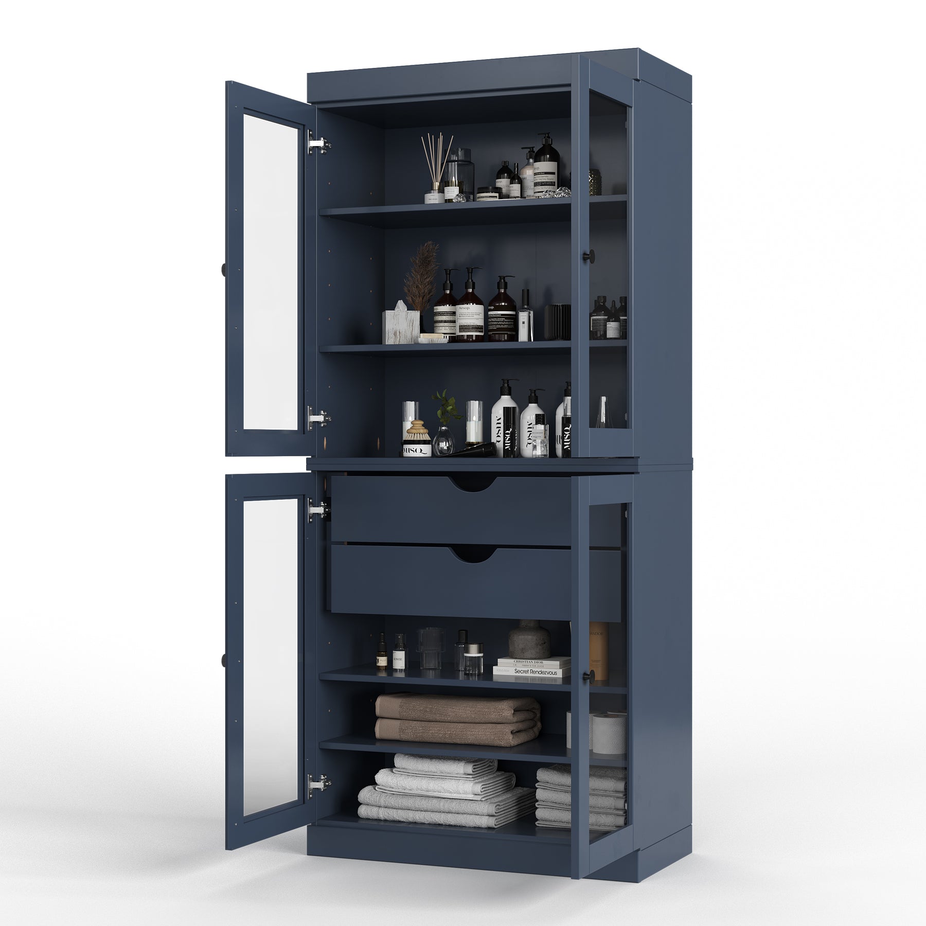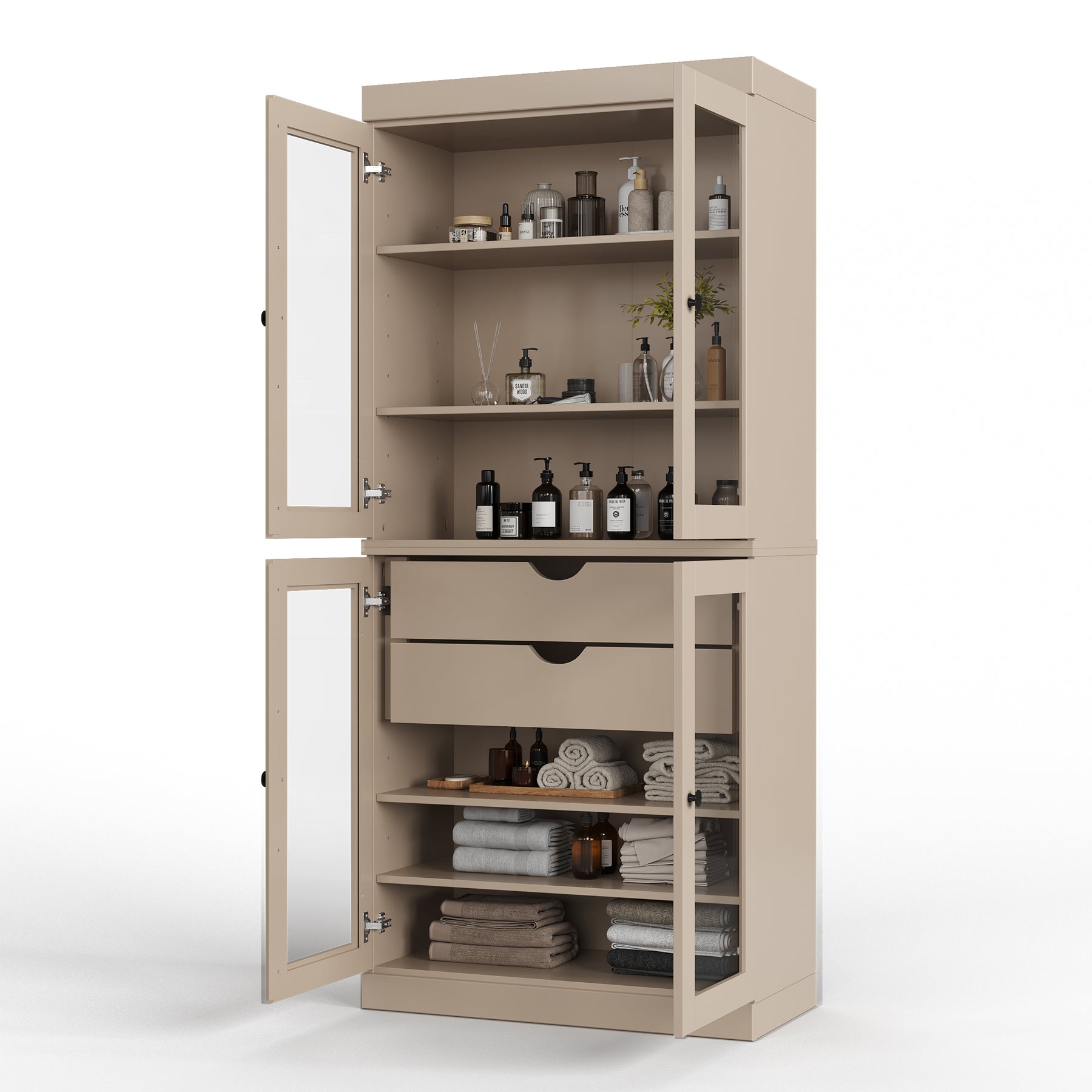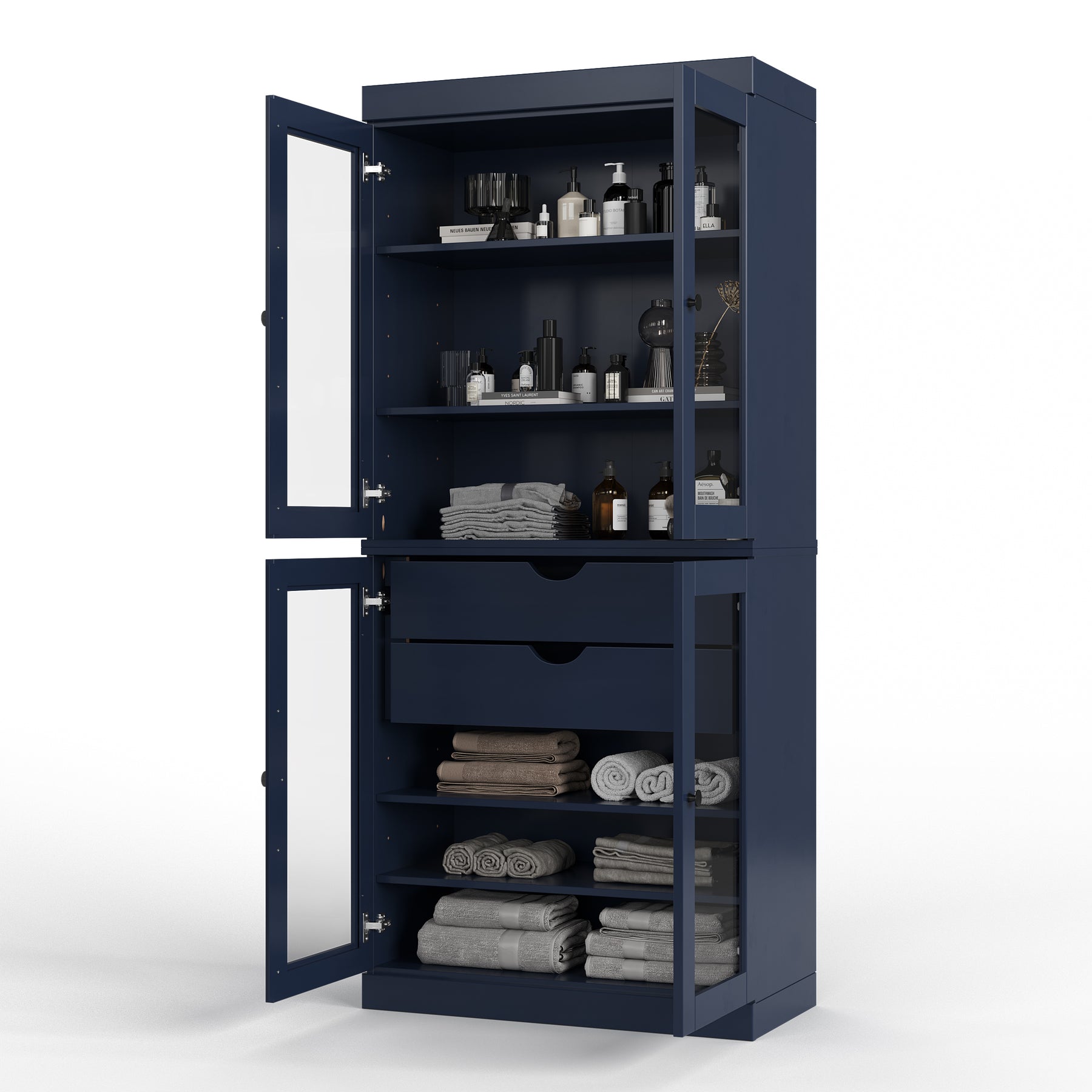 Elevate your bathroom with our 32" wide cabinet, meticulously crafted from 100% solid wood in Brazil. This versatile piece features adjustable shelves, allowing you to personalize storage and keep your space organized. The cabinet comes with clear glass doors to elegantly display your items, with additional door options available separately. Choose from frosted glass for a modern touch or solid wood doors for sleek, concealed storage. A 2-drawer organizer kit is included, ideal for small essentials, with the option to add more kits (sold separately) for enhanced organization. Combining timeless style with lasting durability, this cabinet is designed to bring both elegance and functionality to your bathroom.