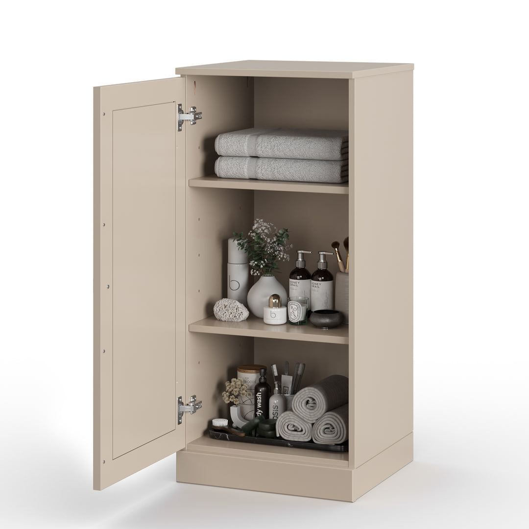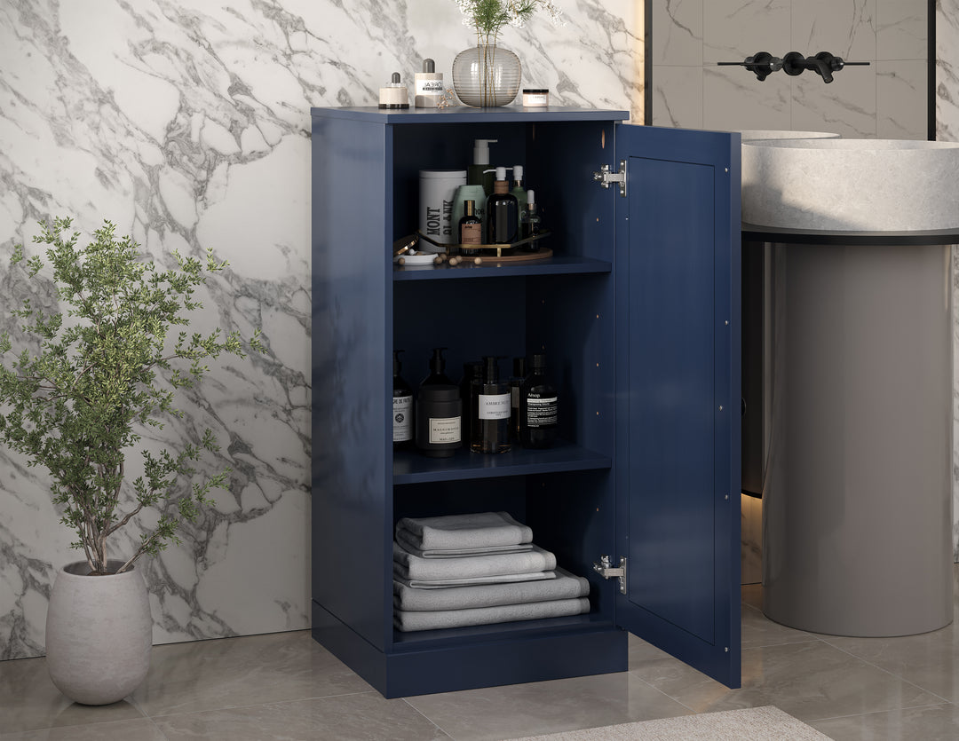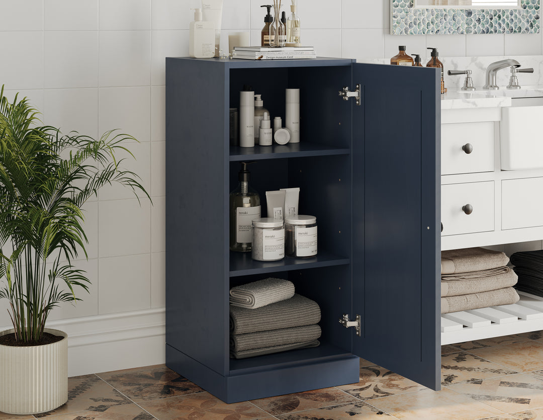 Elevate your bathroom with our 16.5" wide cabinet, meticulously crafted from 100% solid wood in Brazil. This versatile piece features adjustable shelves, offering generous storage for items of various sizes, allowing you to tailor your organization. The solid raised panel doors provide concealed storage, allowing you to use it as a bookcase, storage cabinet, display unit, or even a shoe rack. For a more personalized look, interchangeable doors are available separately in frosted glass, clear glass, or solid wood—perfect for keeping your belongings discreetly tucked away. Combining elegance and durability, this cabinet is designed to enhance both the aesthetic and functionality of any space.