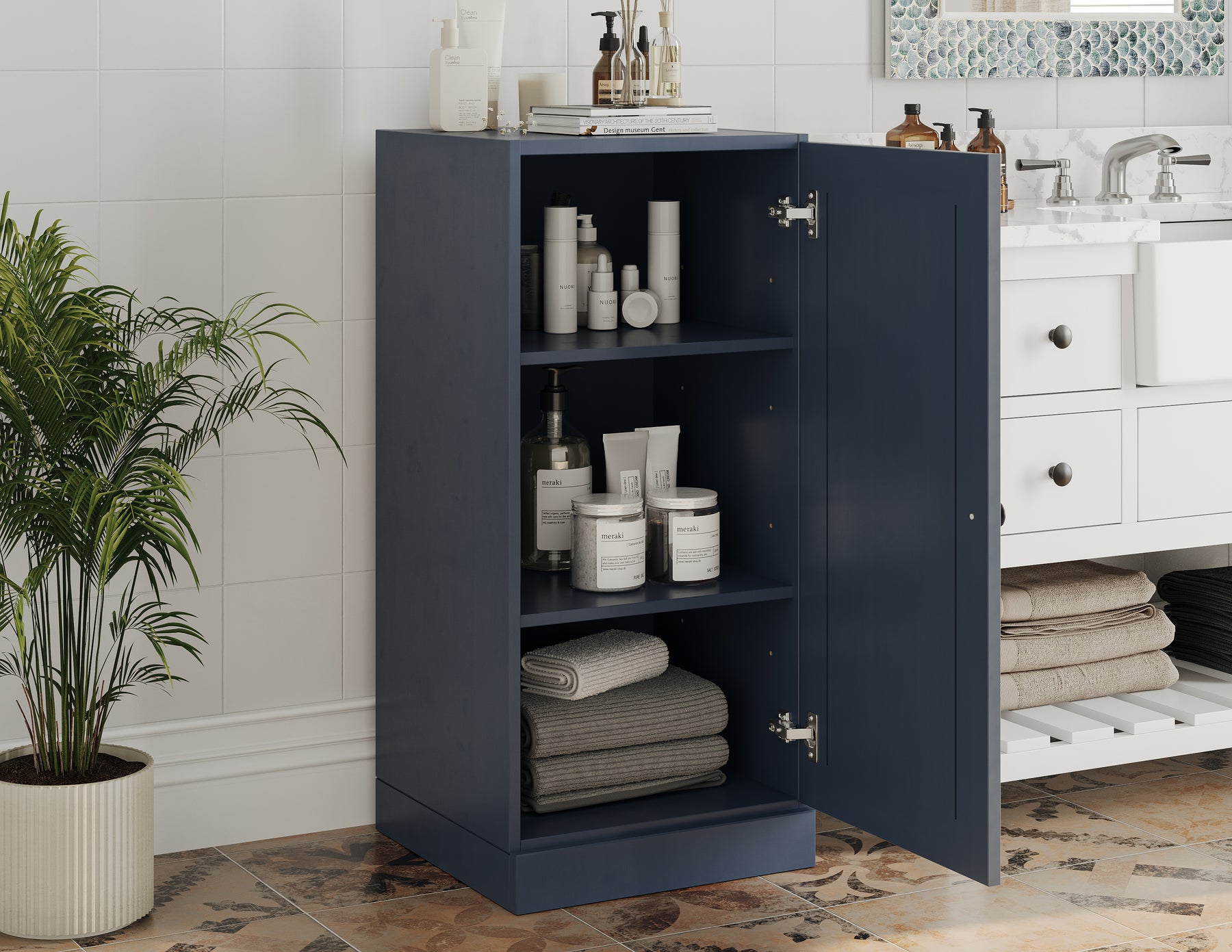 - Can be used as a bathroom cabinet, bookcase, kitchen pantry or shoe rack