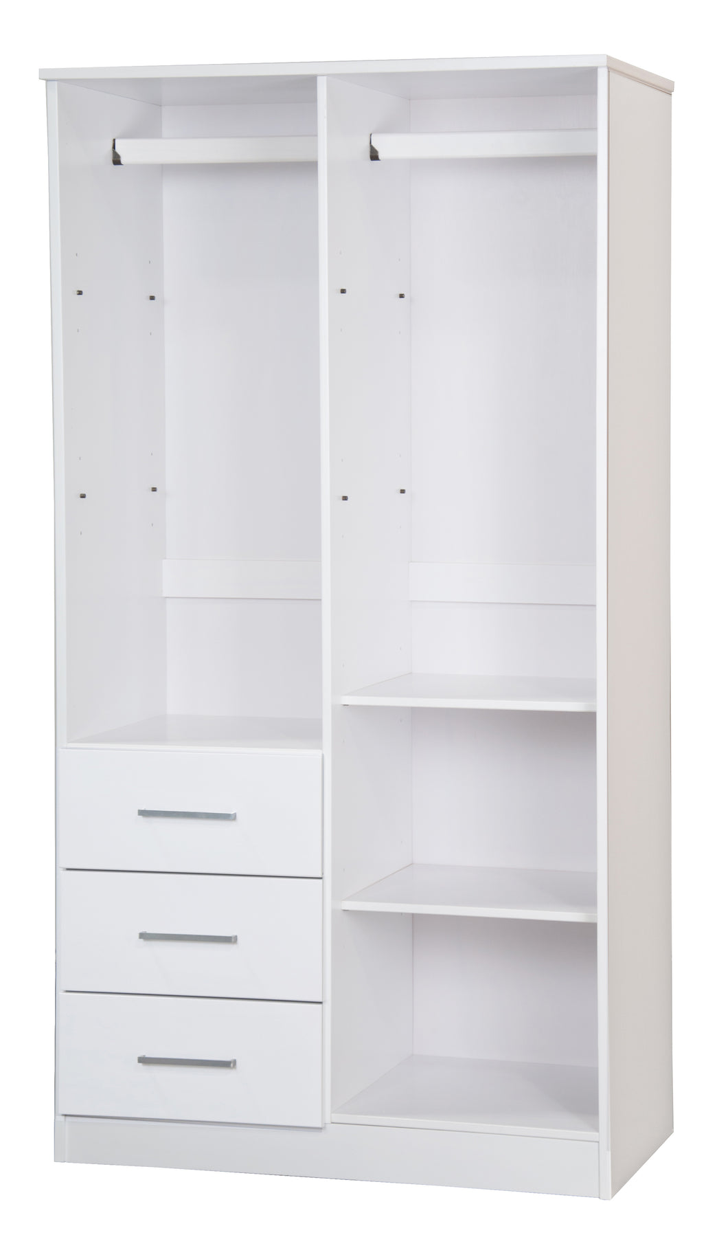 - 2 clothing rods with metal supports included